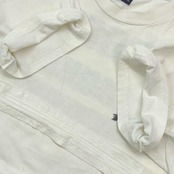 左脇部分破れ有り。前身頃右部分、左肩部分、汚れ有り。タグイタミ有り。