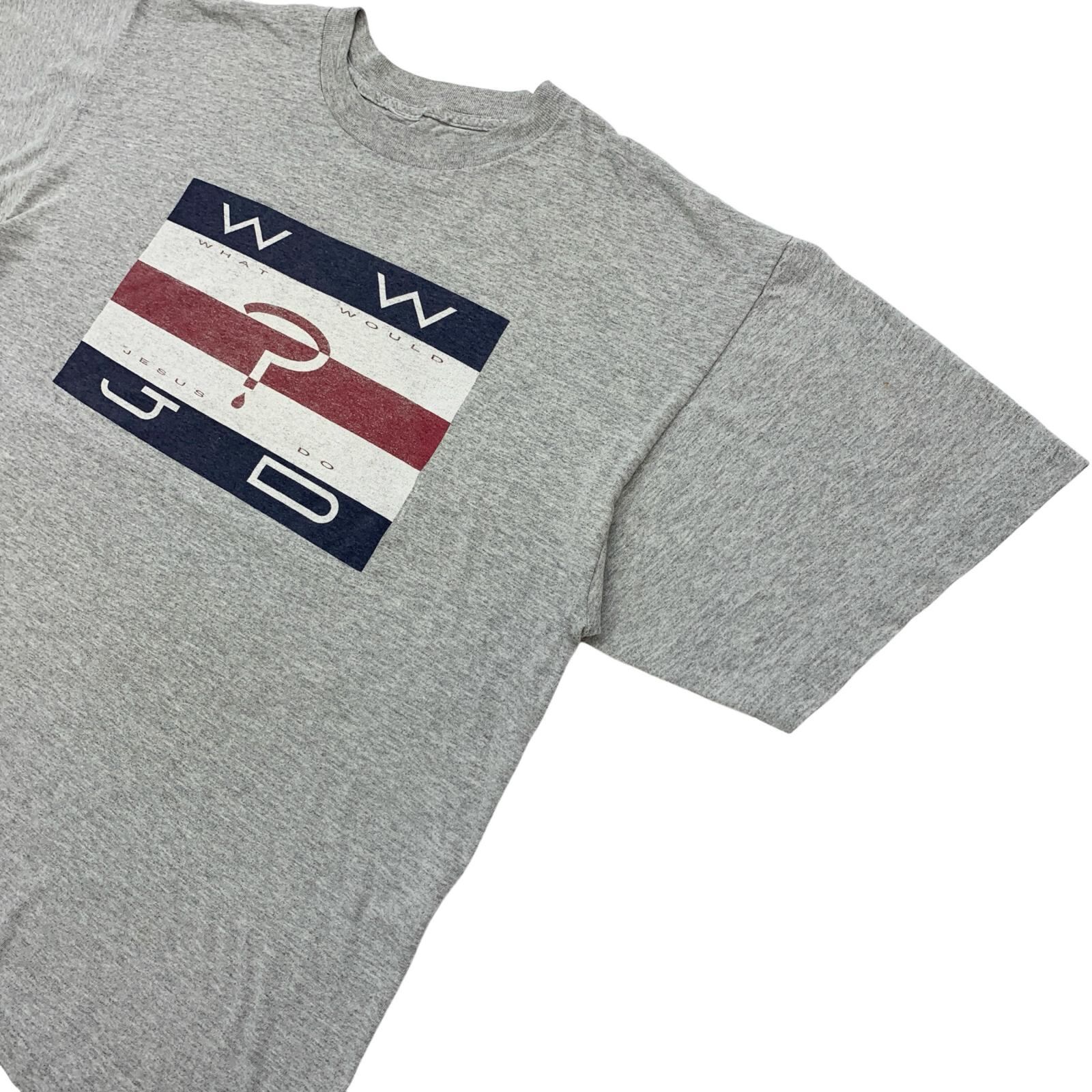 00年代 WWJD WHAT WOULD JESUS DO 半袖Tシャツ グレー サイズ:XL