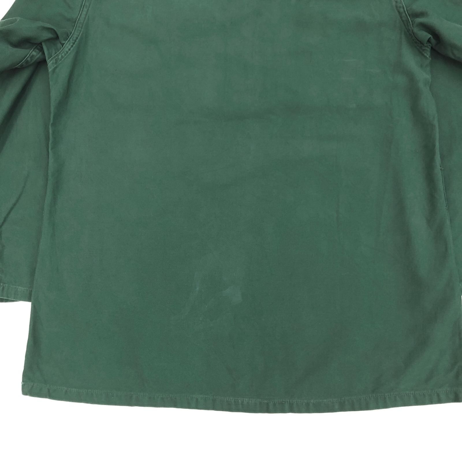 タグにほつれ、記名あります 右ポケットボタン欠損 肩、前身頃にひっかけキズあります 左肩に点汚れ、背中にうっすら白い付着物があります