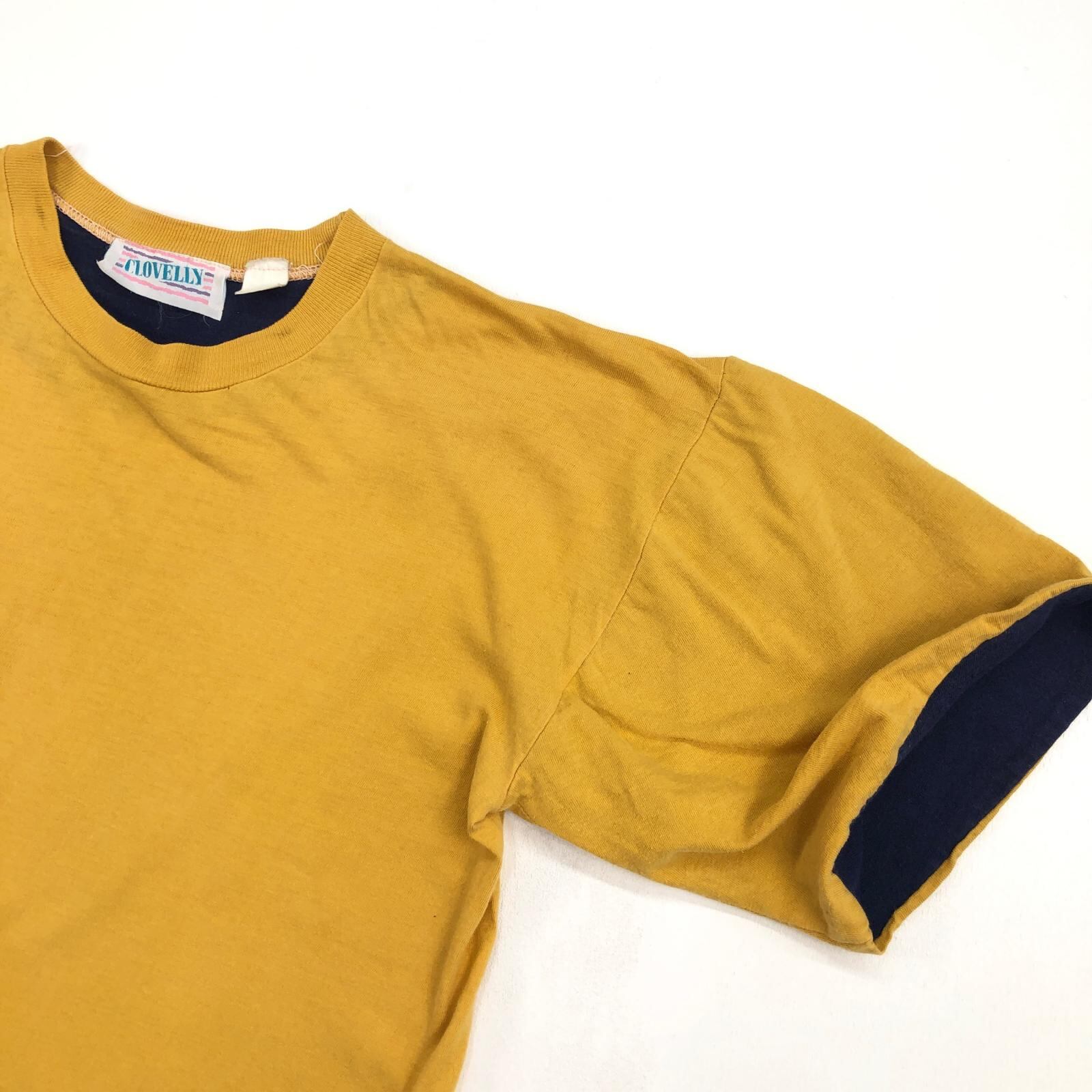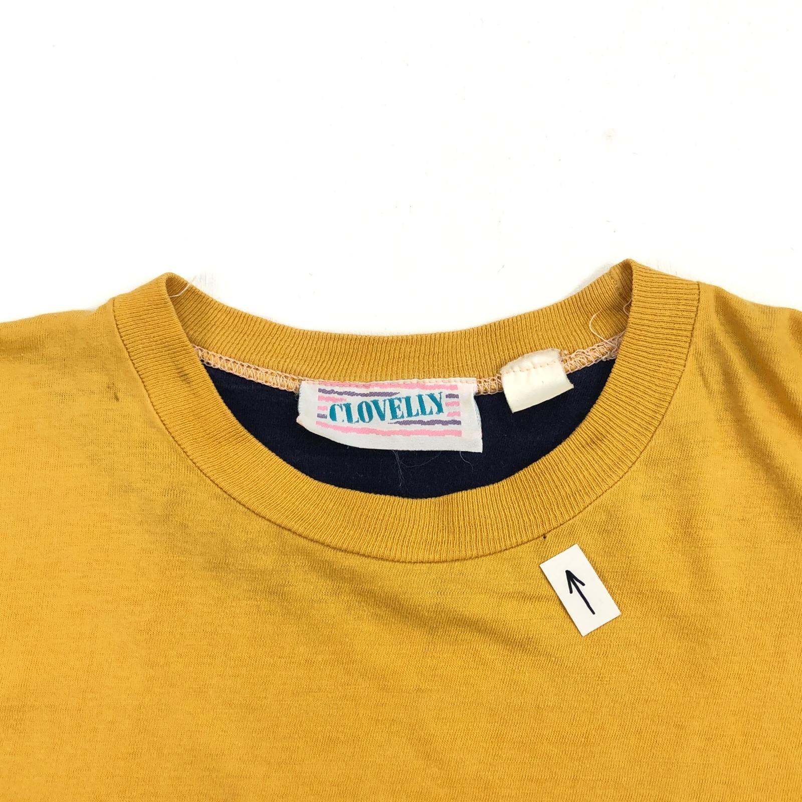 80-90年代 CLOVELLY フェイクレイヤード 半袖Tシャツ イエロー
