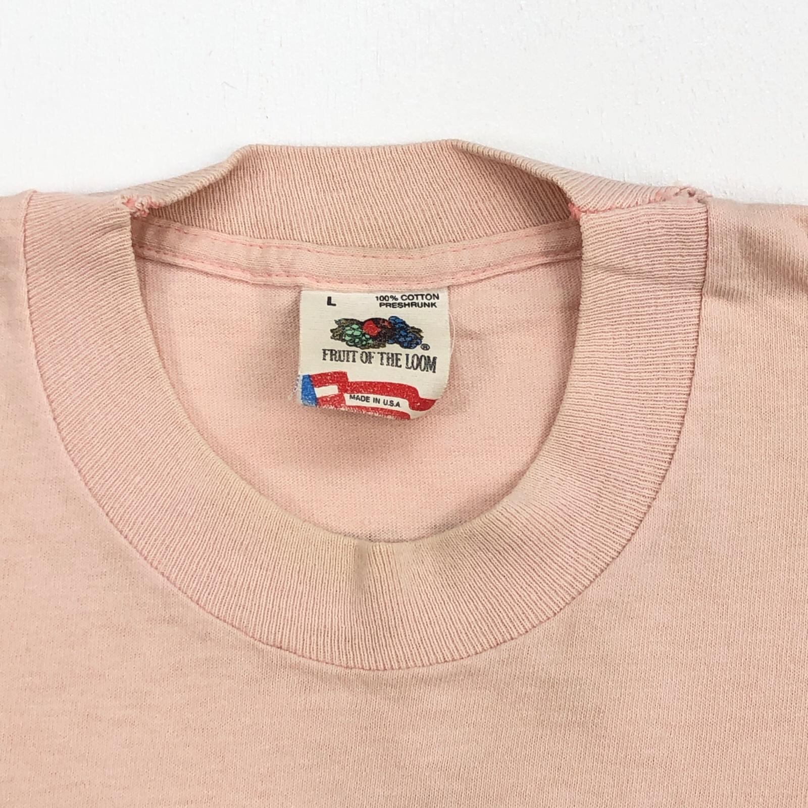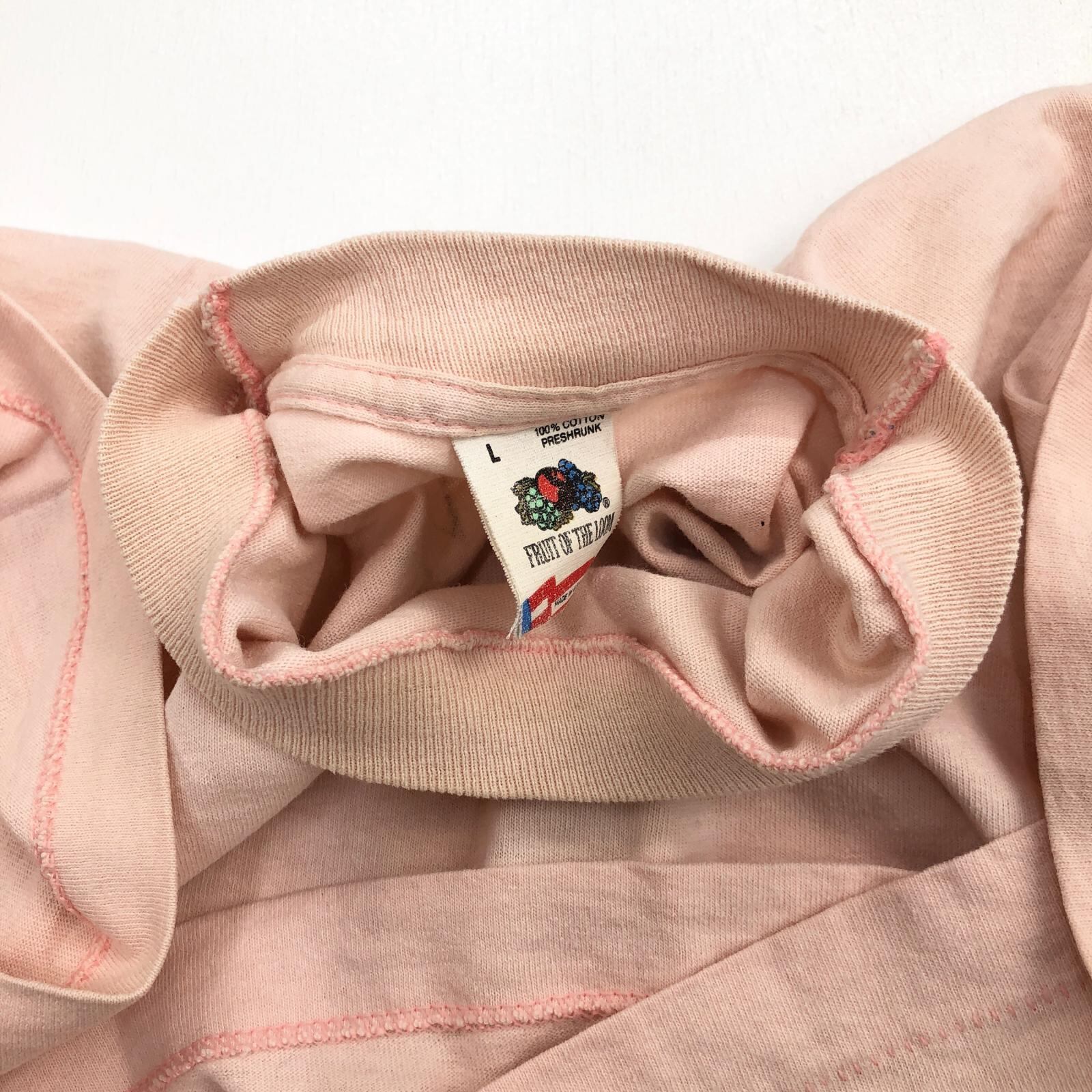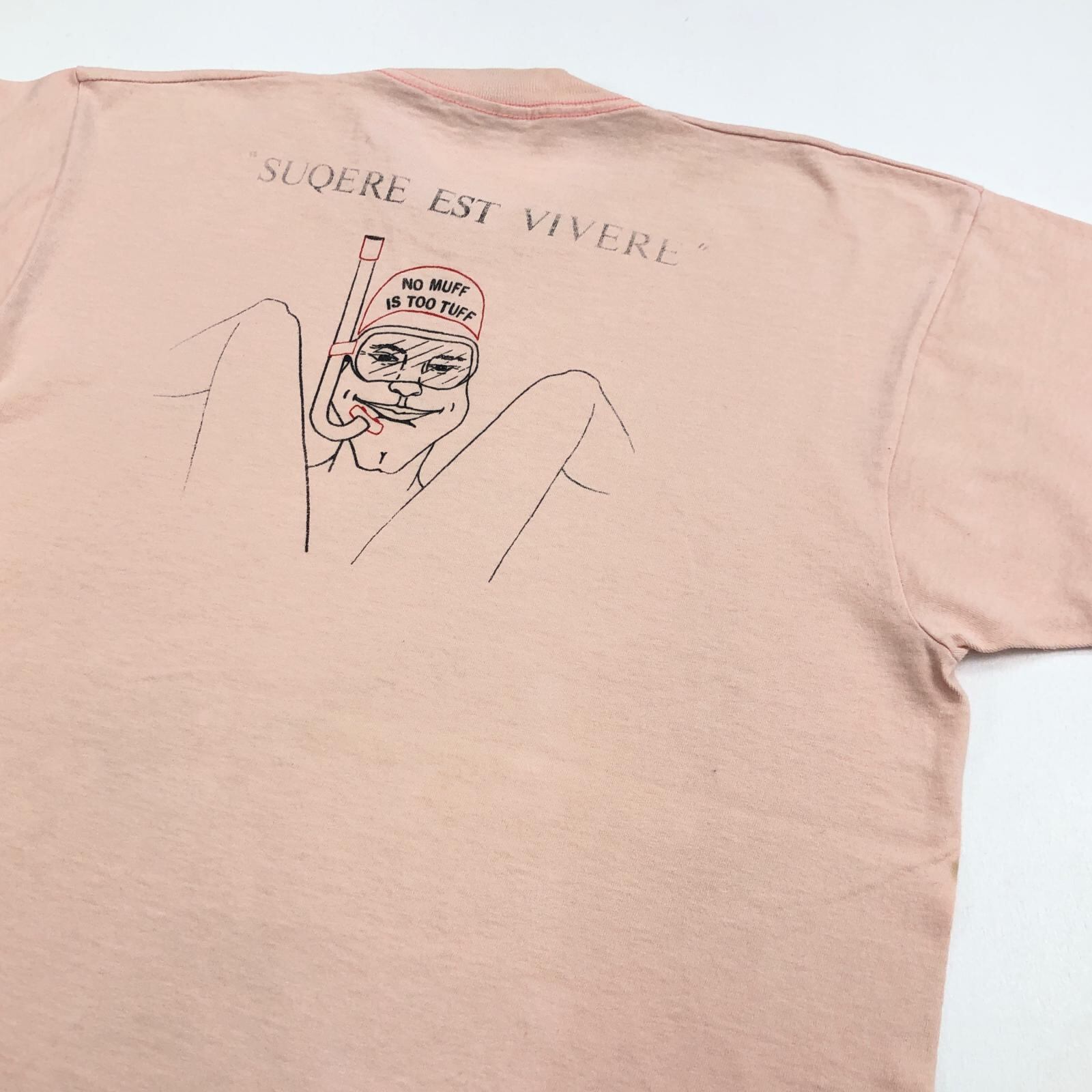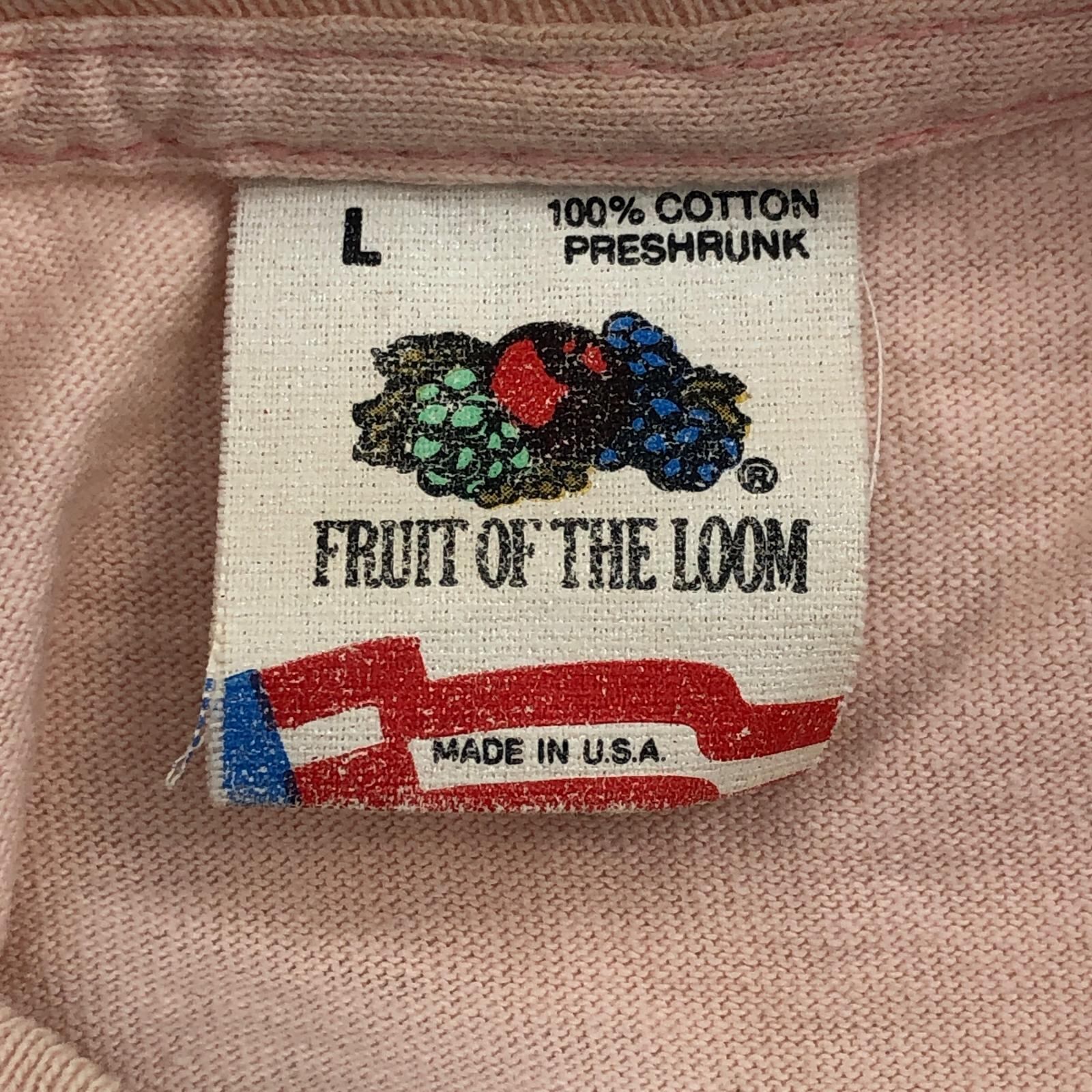 FRUIT OF THE LOOM | フルーツオブザルーム 半袖Tシャツ 90年代 SUQERE EST VIVERE NO MUFF IS TOO TUFF 落書き風 ピンク サイズ:L