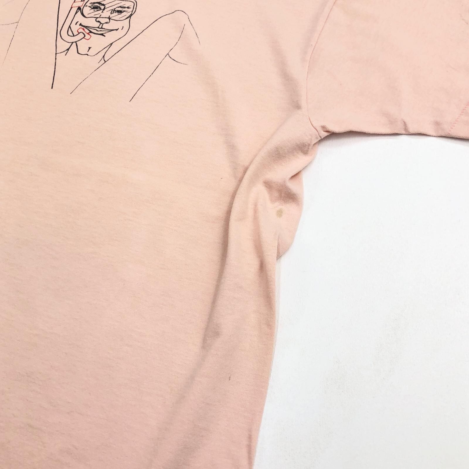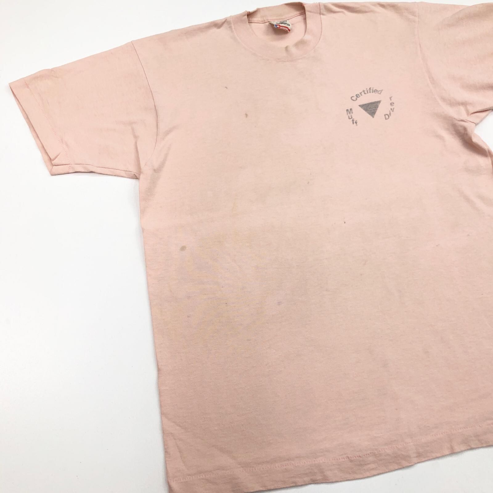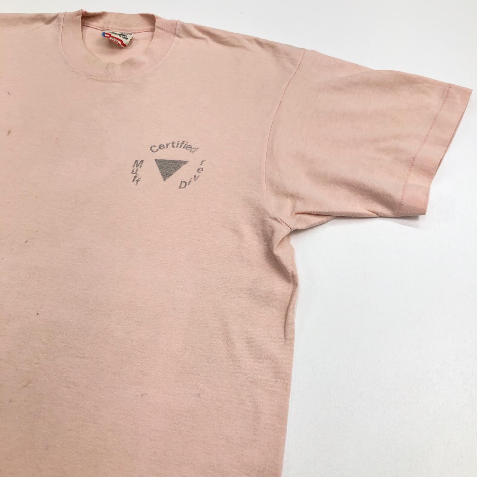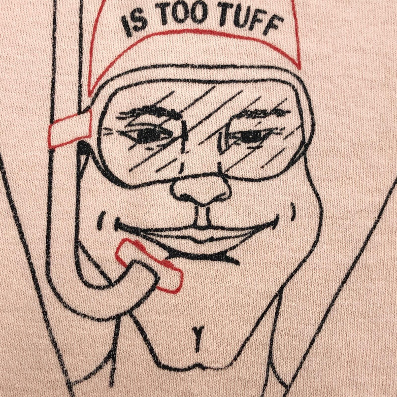 FRUIT OF THE LOOM | フルーツオブザルーム 半袖Tシャツ 90年代 SUQERE EST VIVERE NO MUFF IS TOO TUFF 落書き風 ピンク サイズ:L