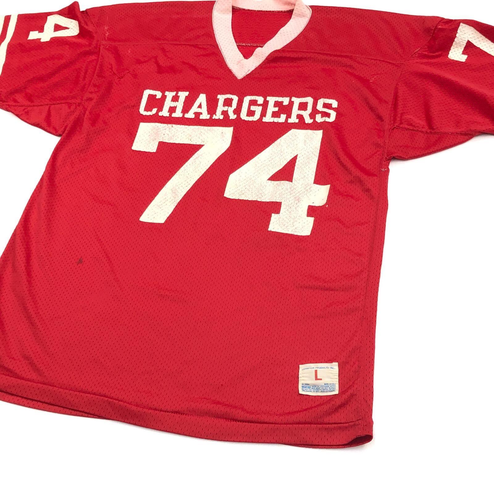 Champion | チャンピオン 半袖Tシャツ 70年代 CHARGERS フットボールT プロダクツタグ メッシュ レッド サイズ:L
