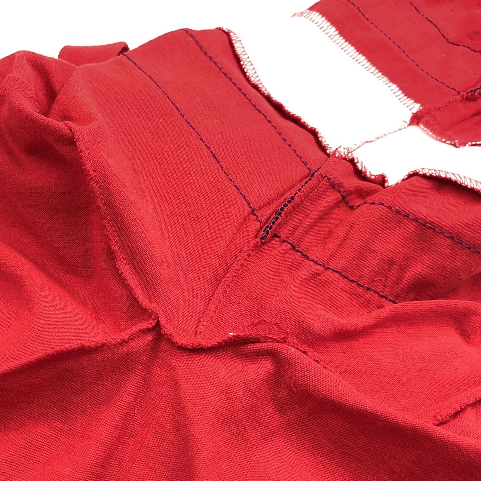 右脇につまみ縫いがあります 裏から見ますときれいにロックがかかっています 生地の使用感が非常に少なく未使用に近い風合いがあります 袖の色味画像が2種類ありますが 白いラインと少し紫がかった紺色ラインの色味と状態がわかるように調整したものです