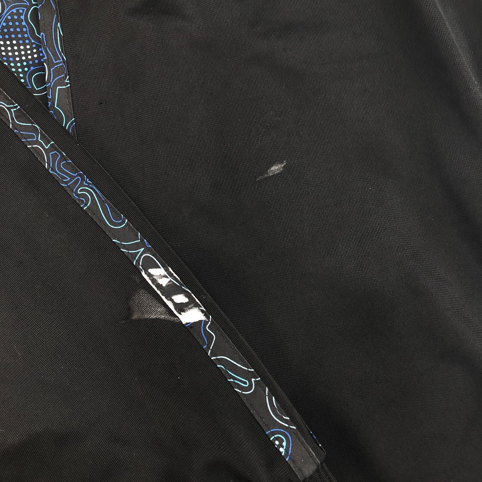 袖先にライン柄生地剥げ、前立て下の方ファスナー左右に少し擦れ、前下左右に小さな擦り傷が数か所あります 背中にプリントが剥がれ、貼り付けが剥がれているところがあります 画像はありませんが 表地、裏地メッシュに画像に写らないようなごくごく小さな目立たない微妙なひっかけキズはございますのでご了承ください