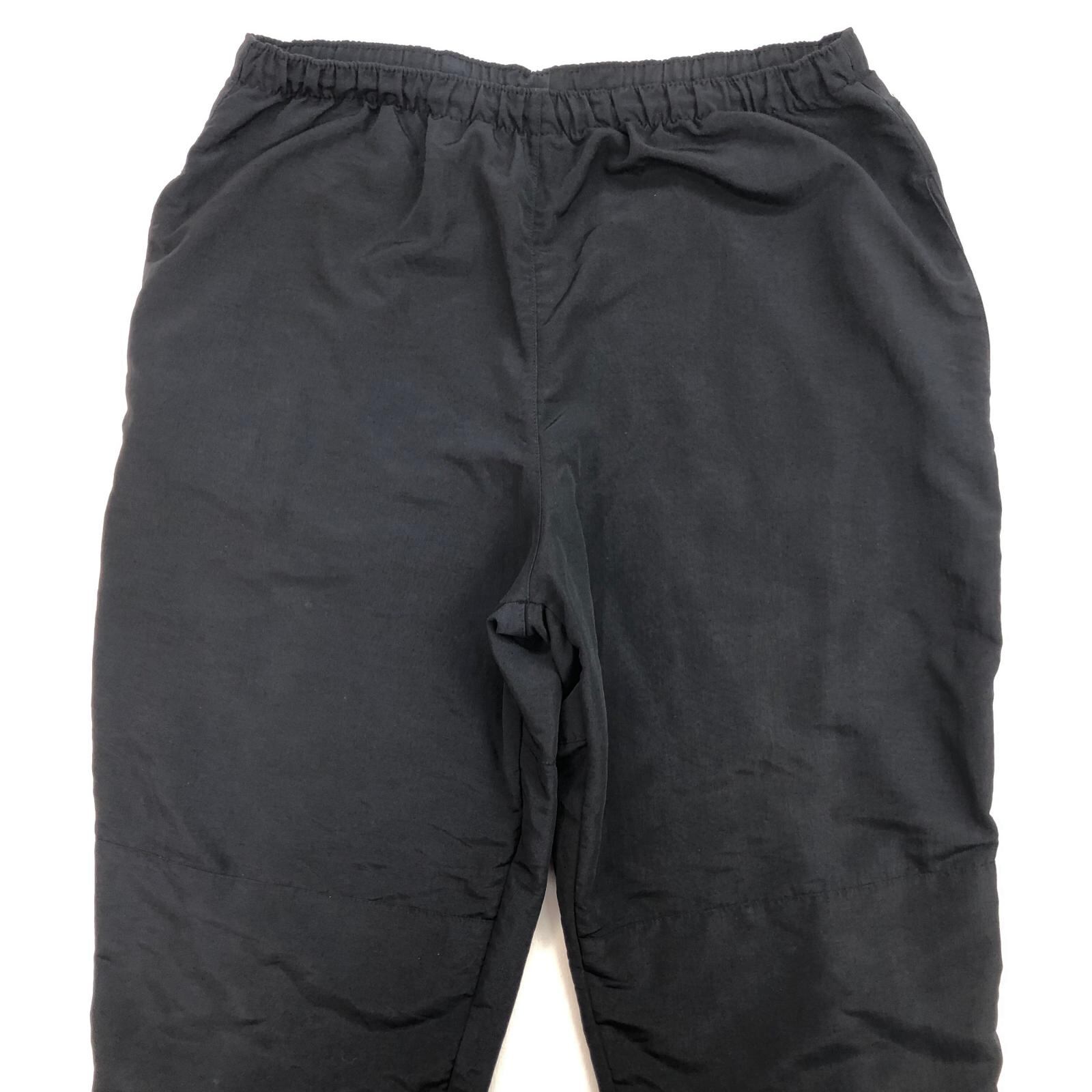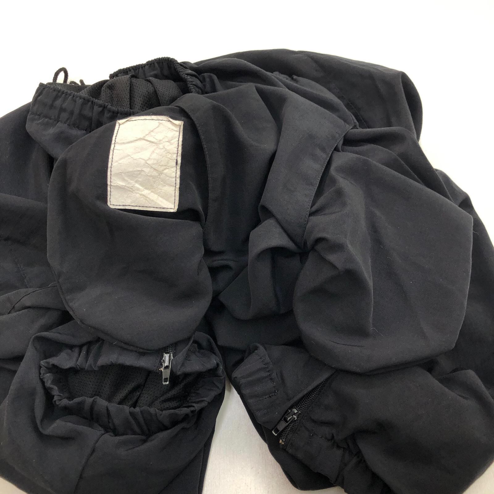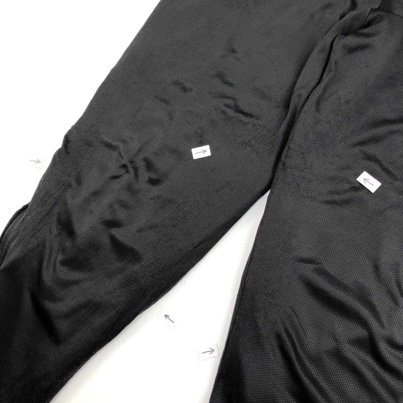 ウエストと裾はゴム入りでウエストはドローコード、ストッパー付きで最大約102㎝ぐらいまでのびます 前右ももあたりその下右ひざあたりにご使用時には目立たないうすい擦れ汚れがございます 裏側メッシュ部、股、両サイド、裾など矢印のあたり生地の擦れ傷み、毛羽立ちがあります 他にも腰あたりにも画像にうつりにくいような小さな点ひっかけはございます 裾先ゴムが伸び気味で緩んでいます 多少の擦れアタリはございます