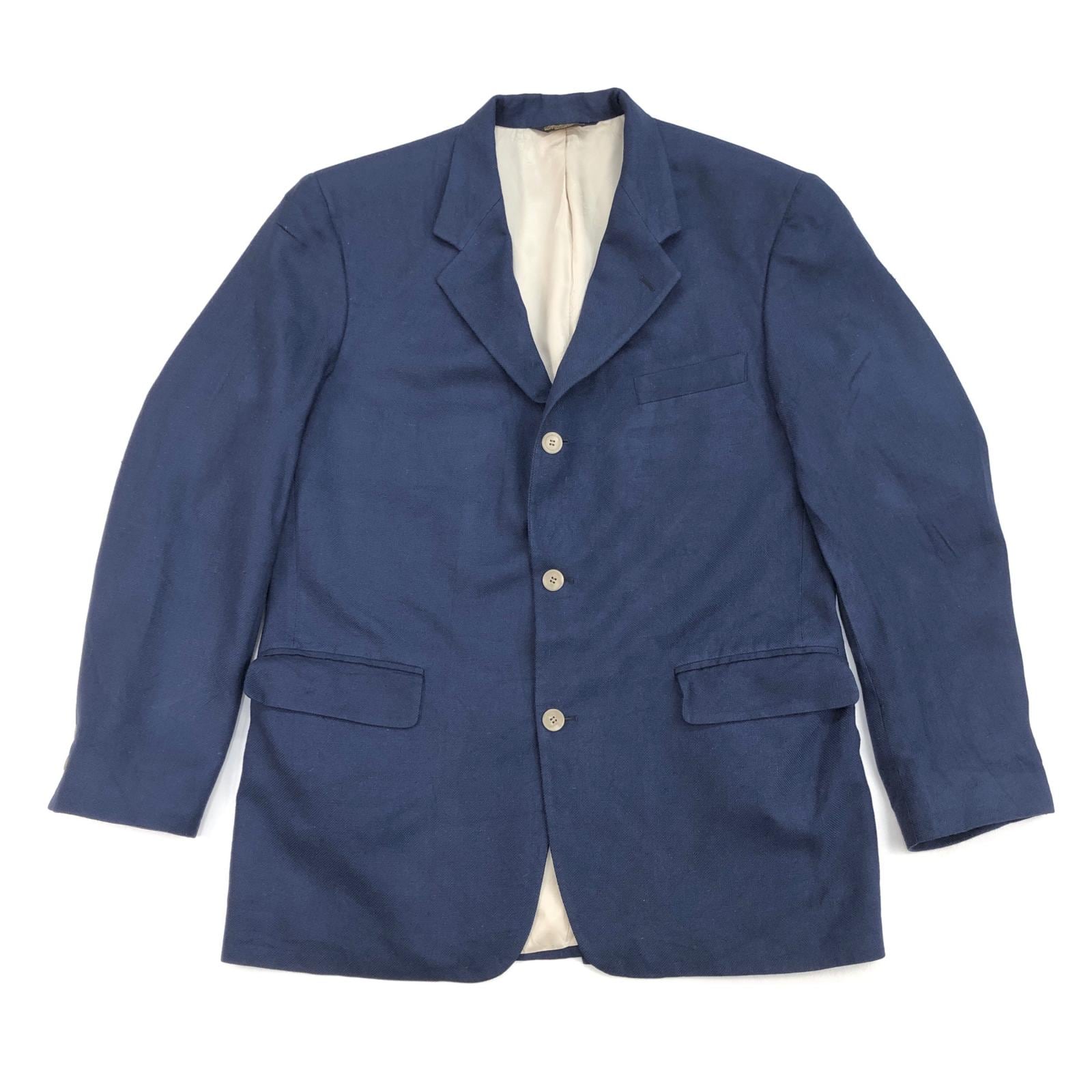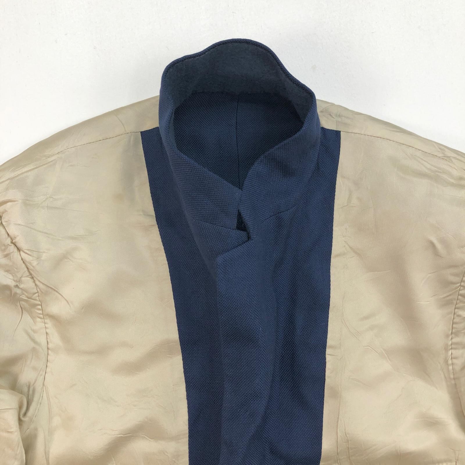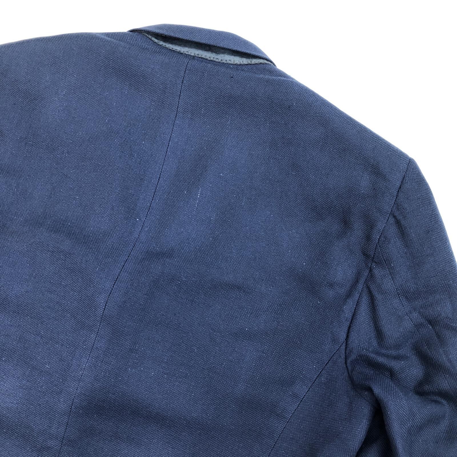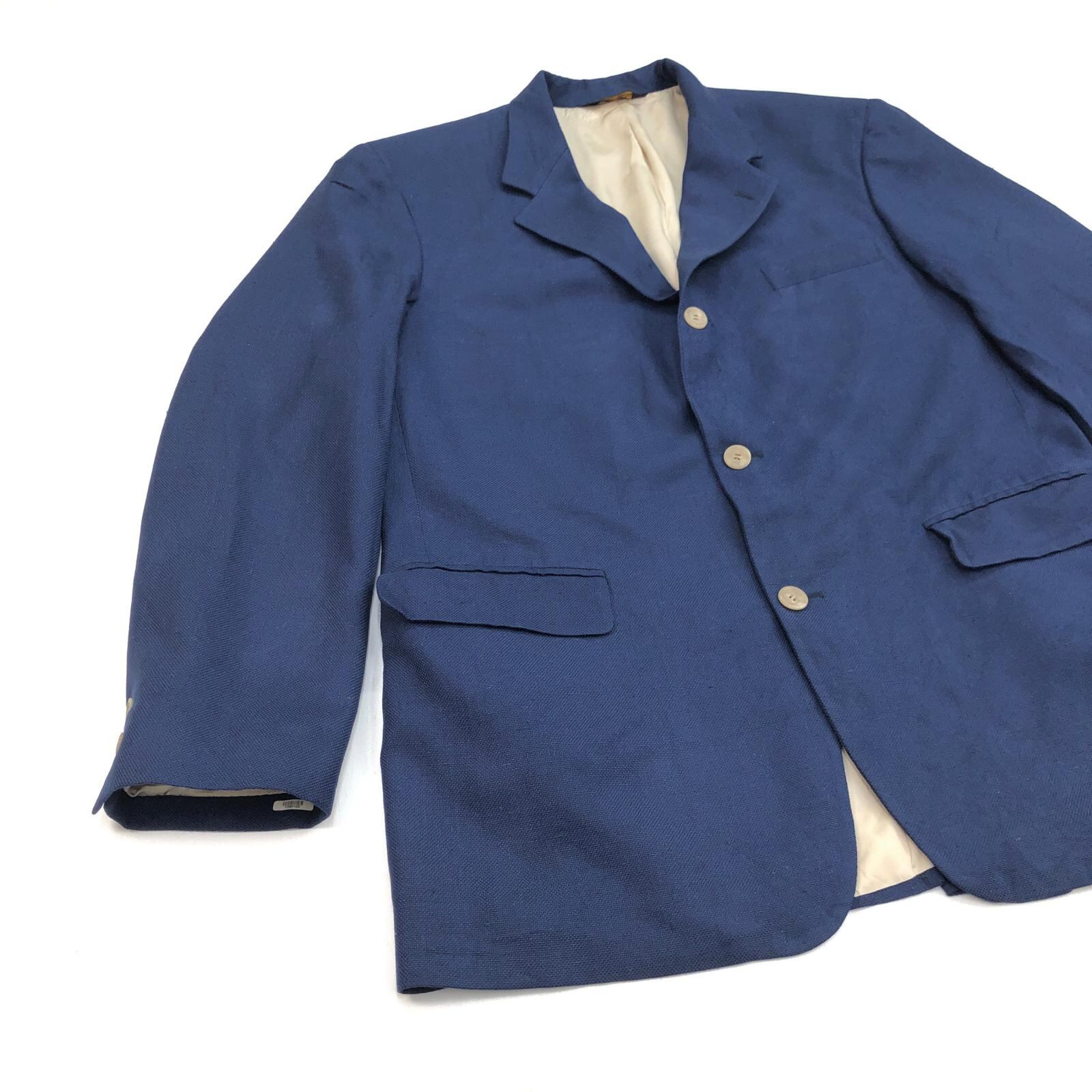 厚めの肩パッドが入っています 後ろ腰裾あたり他 多少の毛羽立ちはございます 裏地にシワ、シワ癖が残っているところがあります 織りキズがあるところがあります 裏地前立て真ん中、下に目立つシミがあります その他左袖など画像に目立たない写らないようなうすしシミがあるところがありますのでご了承くださいませ