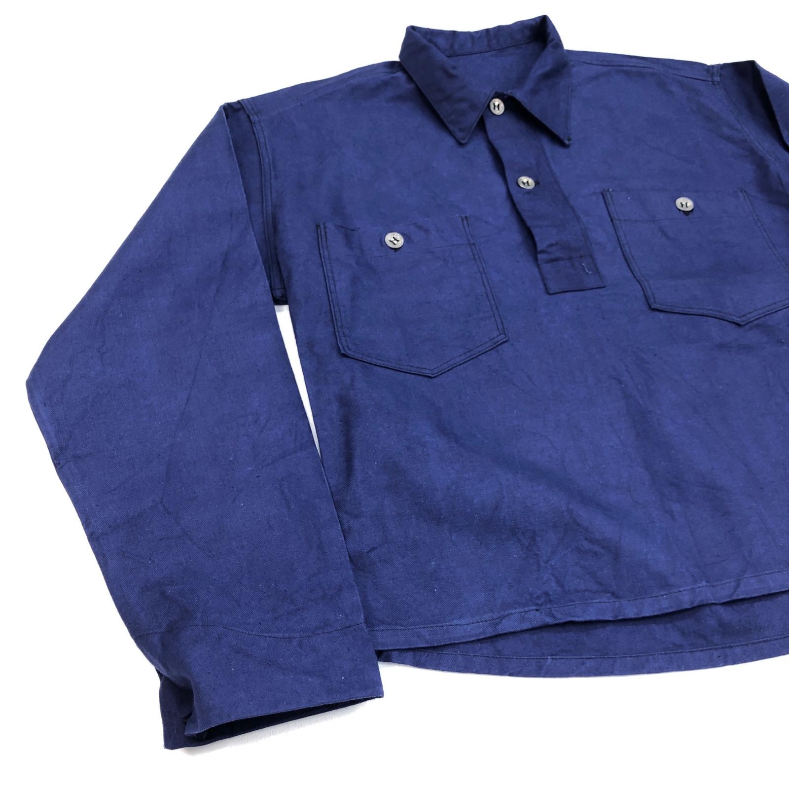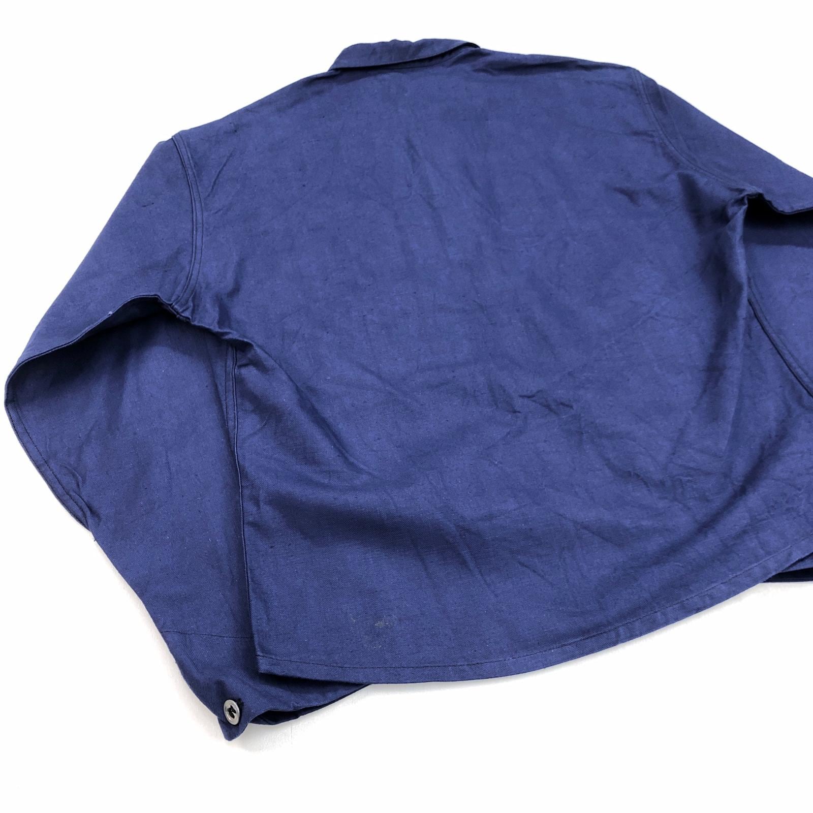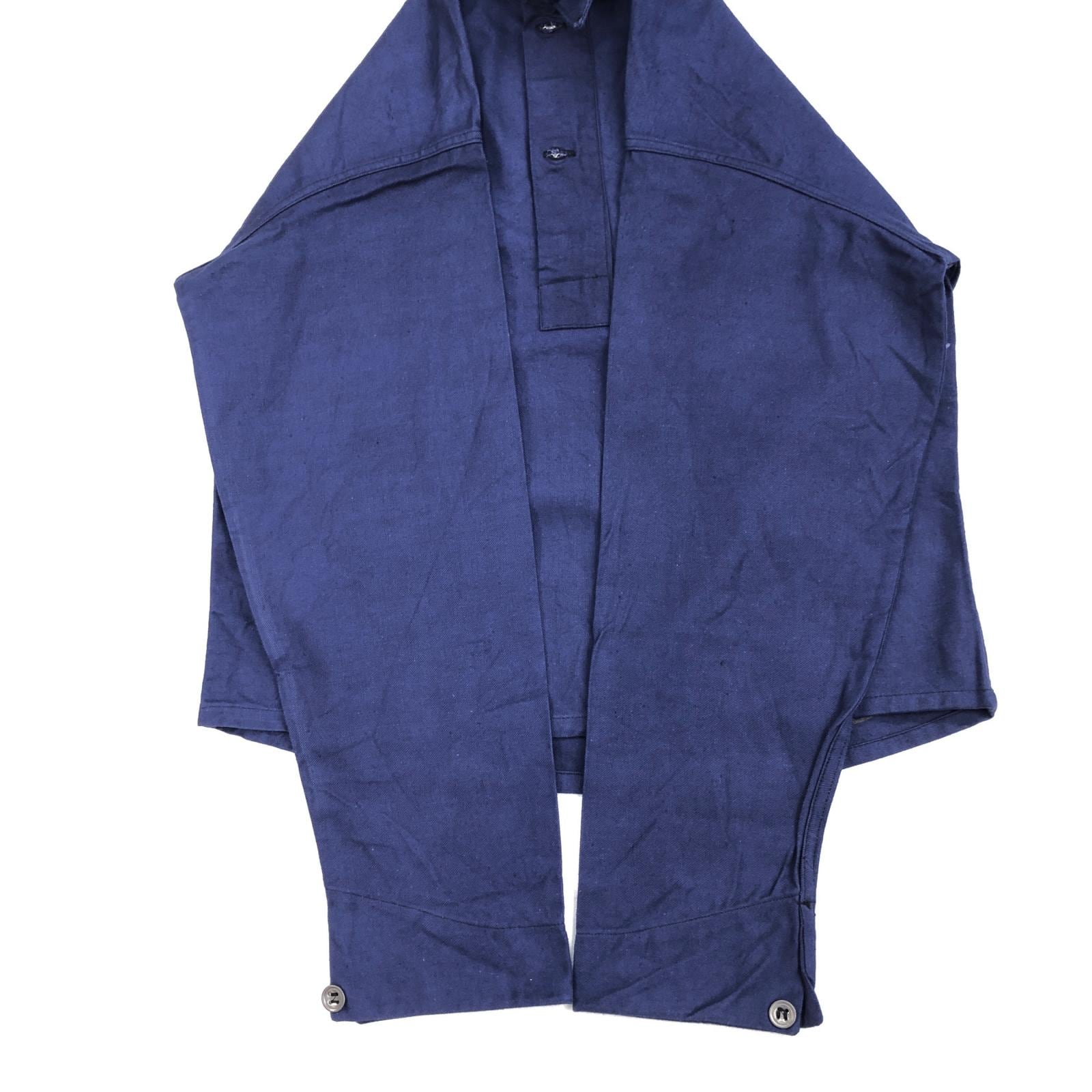 身幅は脇下あたりで細いところは約52㎝です 保管状態によるシワ、シワ癖があるところがあります 生地は張りがあり 糊も残っており 裏側右肩にチョークで番号記載が残っており 本来襟後ろに縫い付けられているタグがポケットから出てきました 発送時に同封いたします