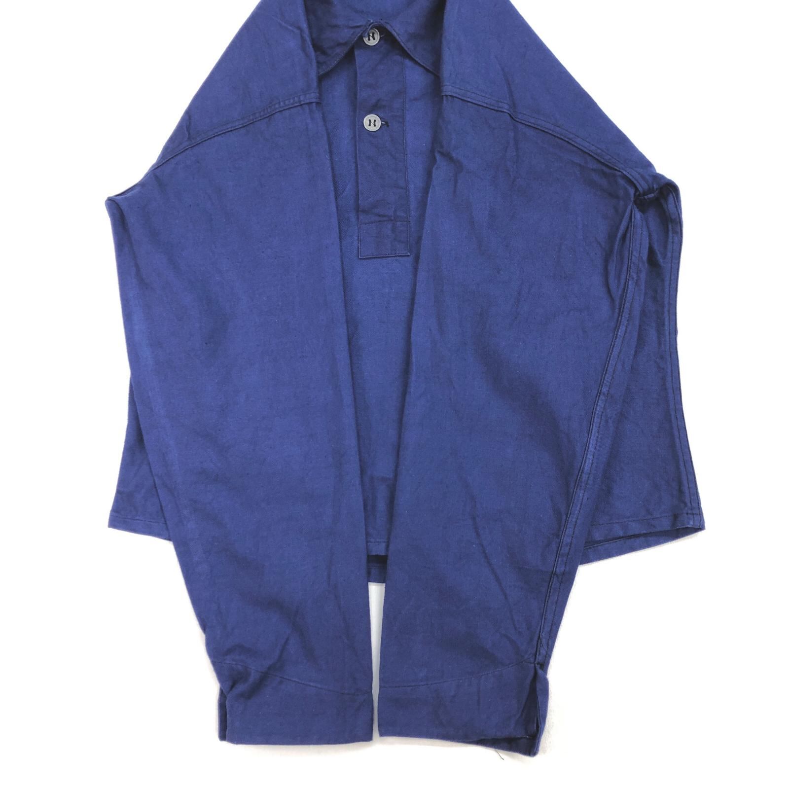 身幅は脇下あたりで細いところは約52㎝です 保管状態によるシワ、シワ癖はがあるところがあります 水通しはあるようですが生地に張りがあり糊も残っており使用感が少な目です ポケットから本来襟裏に付縫い付けられているタグが出てきました 裏側からテープで止められています 発送時に同府いたします