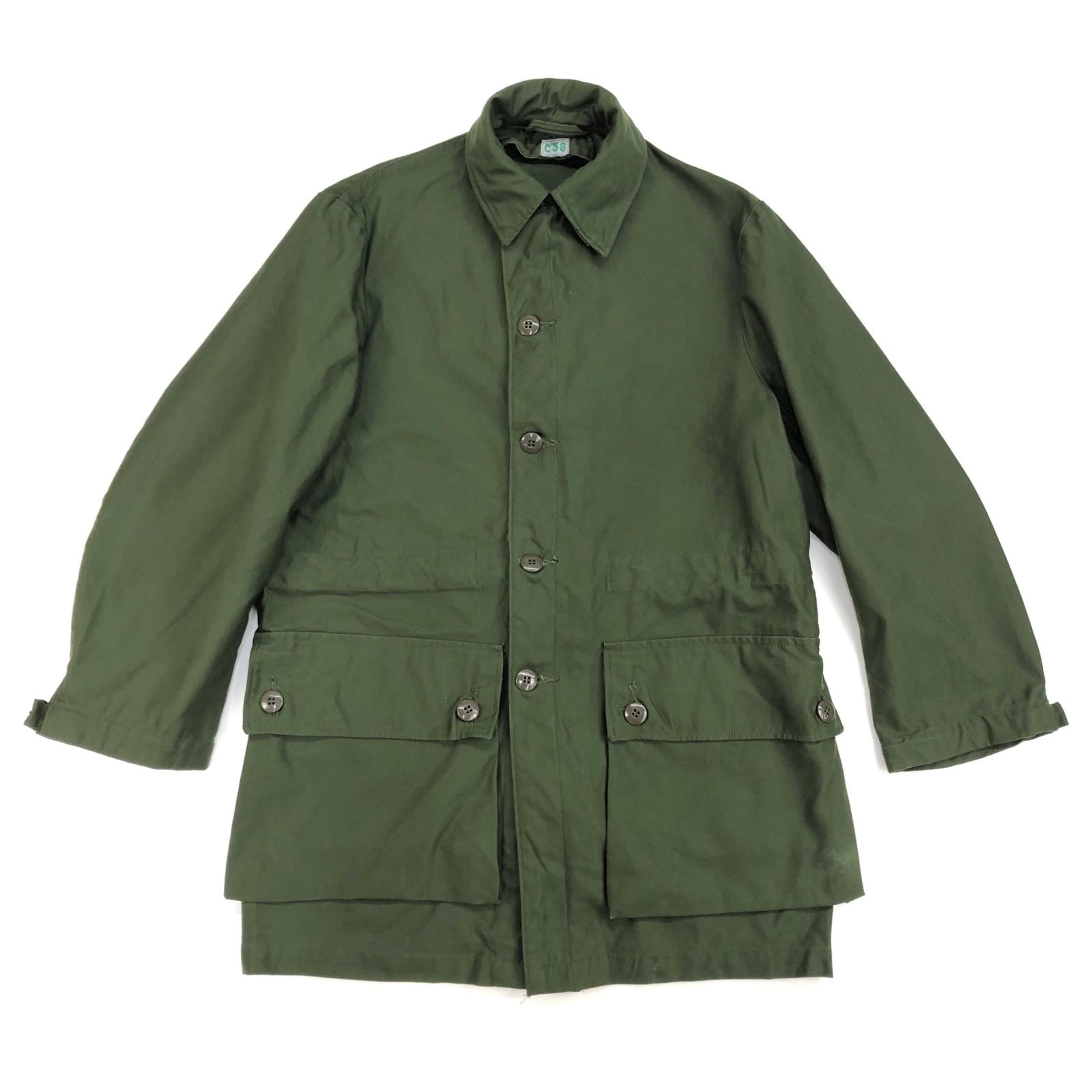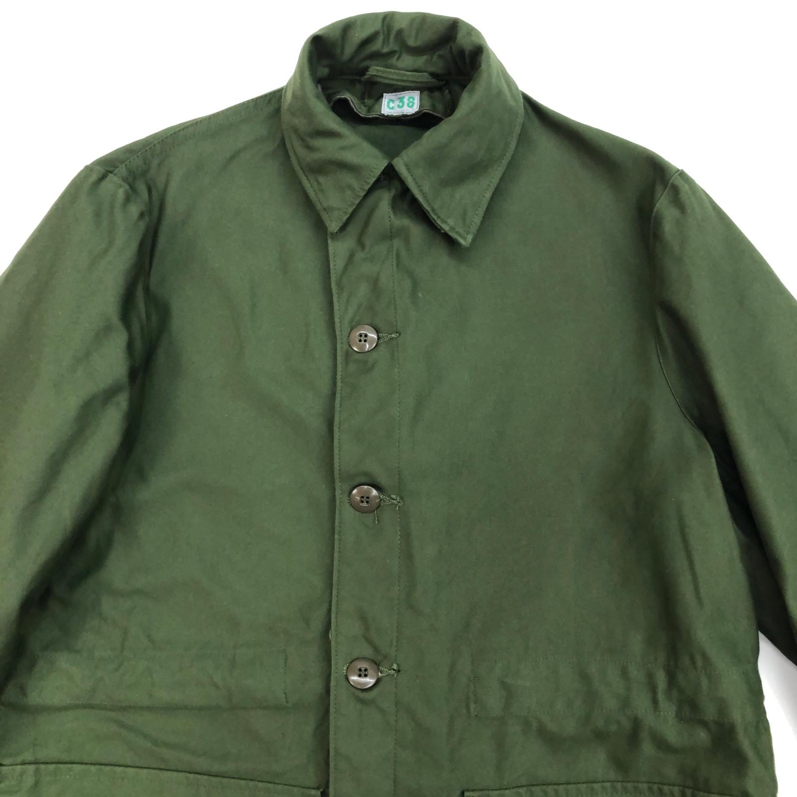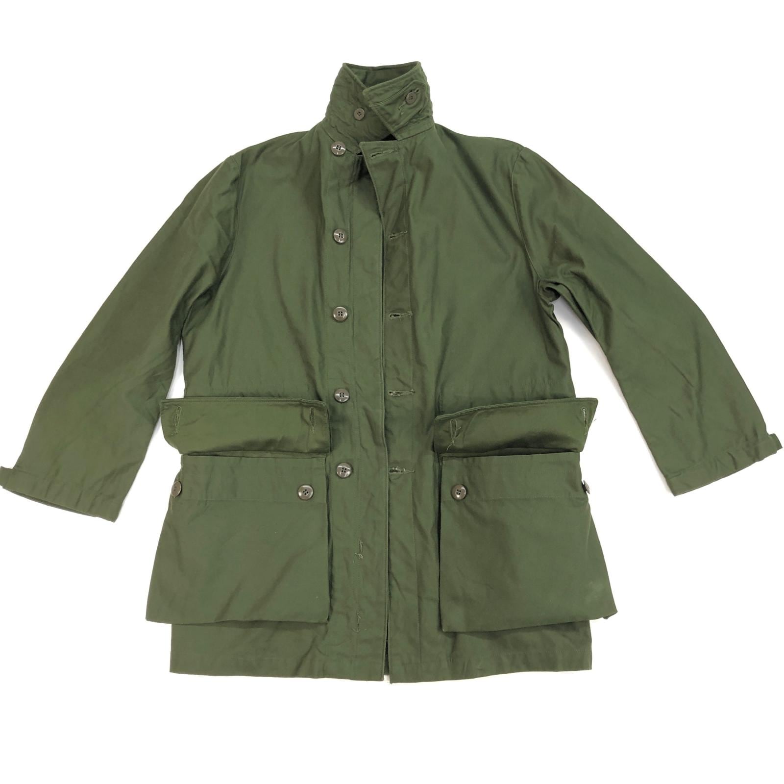 左下ポケット端に擦れ汚れかうっすら白っぽい何かが付いているようなものがあり、右袖内側に保管状態でできた微妙なうっすらスジアタリがあるぐらいで 生地は張りとツヤがあり使用感が感じられないような状態です