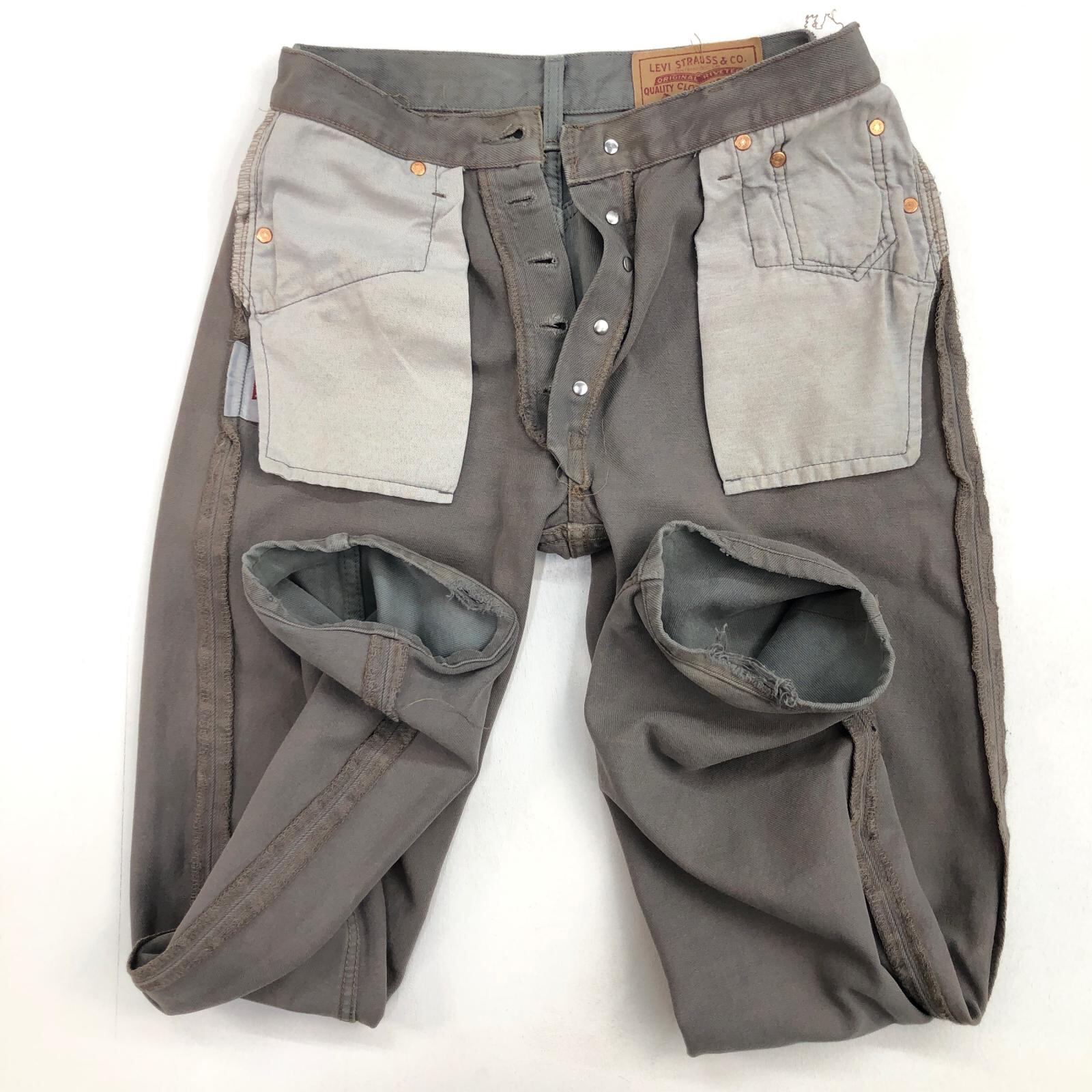 汚れ、うす汚れ、色褪せ色ムラ、変色があります 画像に写りにくいようなレベルの小さな表面キズがあるところがあります 左費ヒップに裏から補強布貼りリペアあります