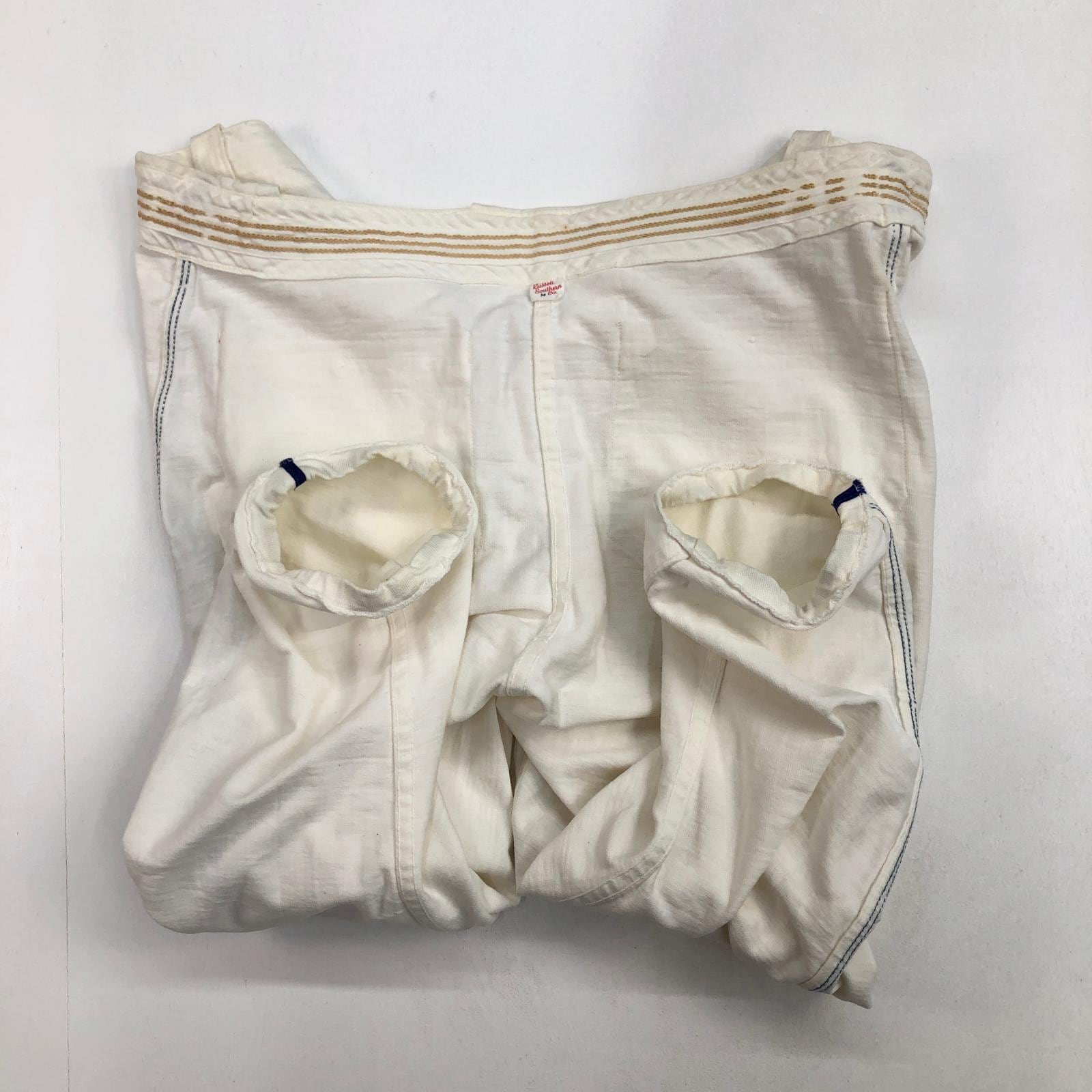 ウエストベルト端に小さな擦り切れ、ベルト下側ステッチの穴が少し広がっているところがあります 右ヒップポケットボタンホール上端に傷みあります 現在ご使用はできますが切れてしまう可能性があります 他にもわかりにくいうす汚れ、点汚れなど ごく小さなステッチ飛びなどが多数あり すべて完全には撮影ができていないところもございます 画像に写っていてもわかりにくいもの また画像に写らないような ごくうすい汚れ、小さなステッチ飛び等 微細なダメージは 何卒ご容赦ください