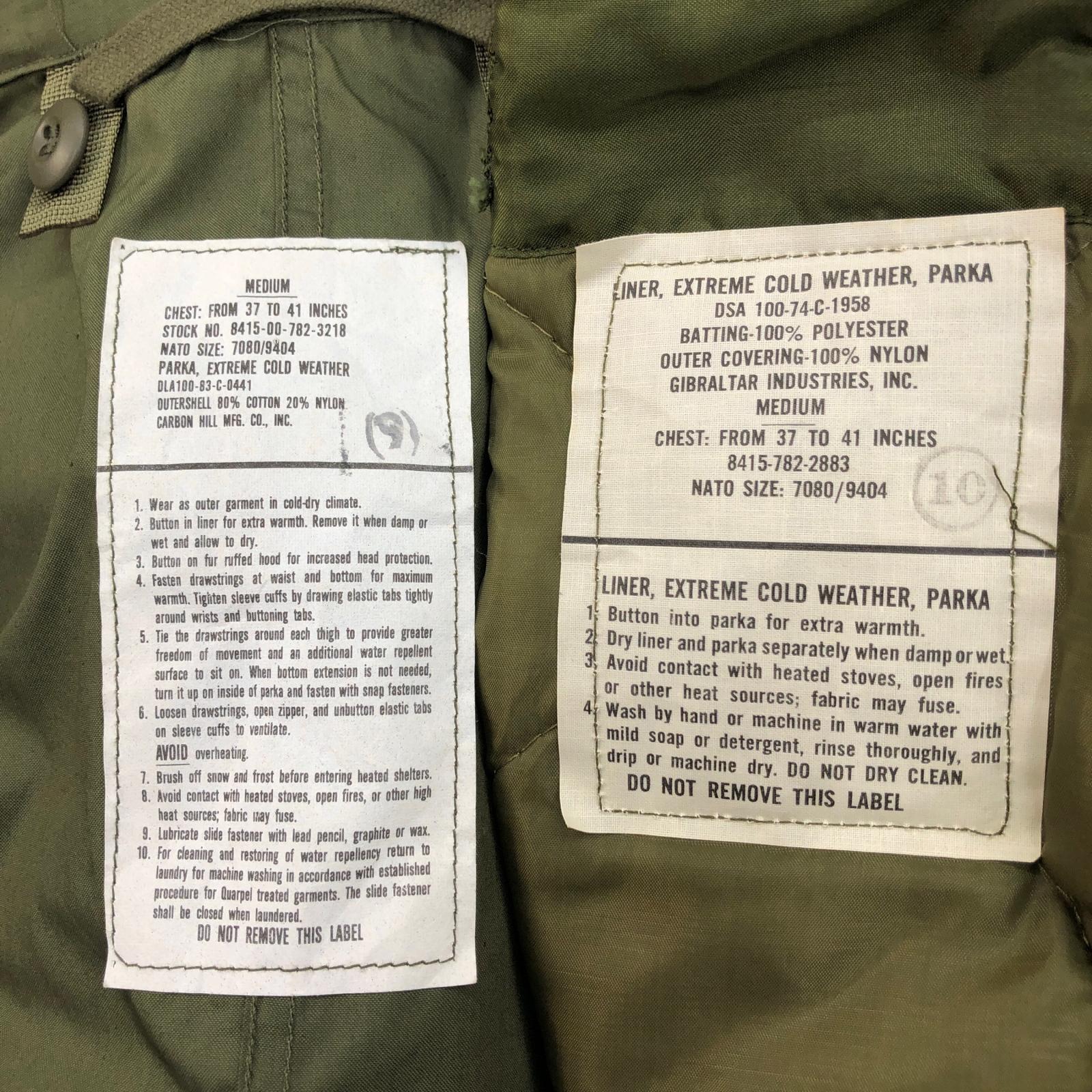 US ARMY M-65 ライナー付 PARKA EXTREME COLD WEATHER コート DLA100-83-C-0441 オリーブ サイズ:M ミリタリー モッズコート
