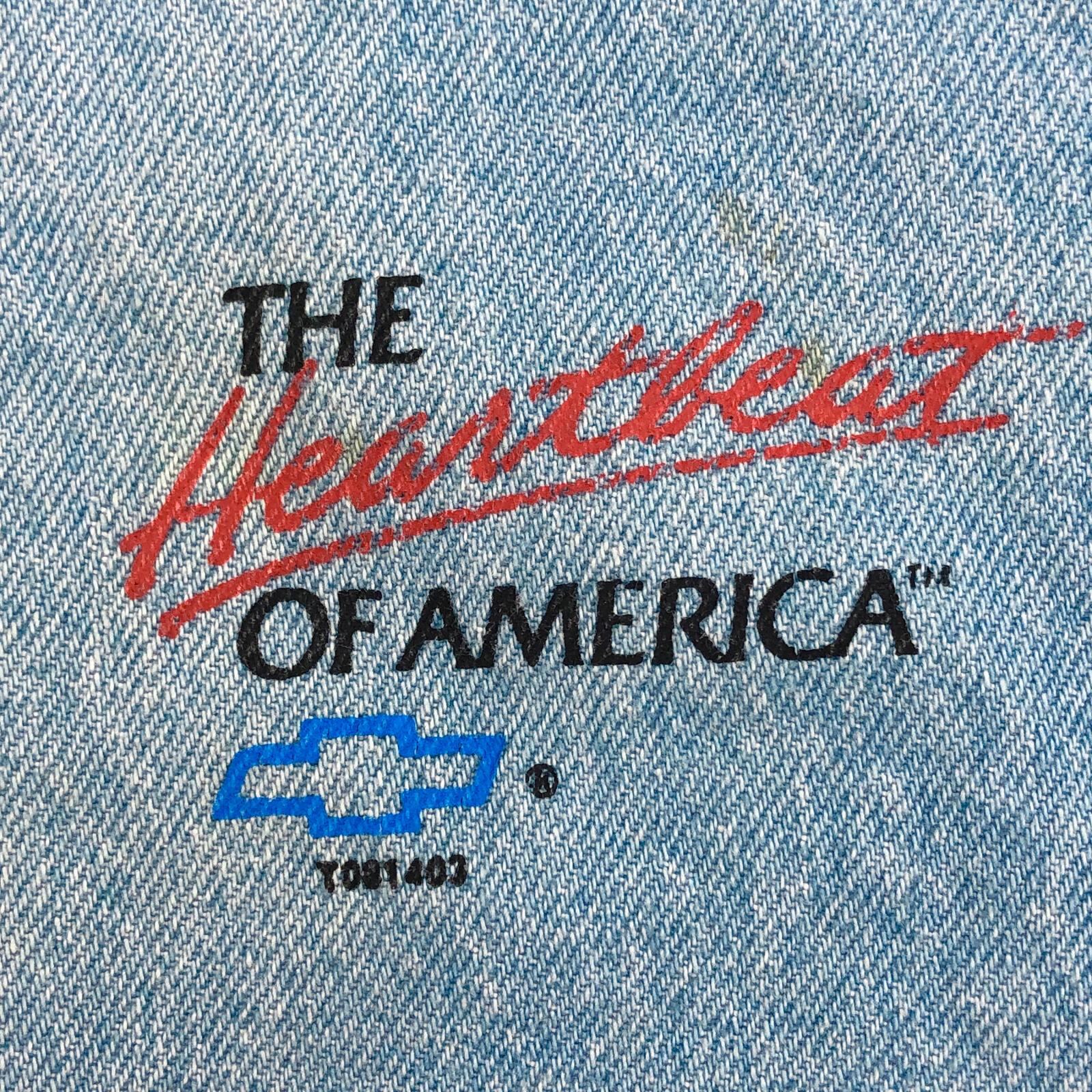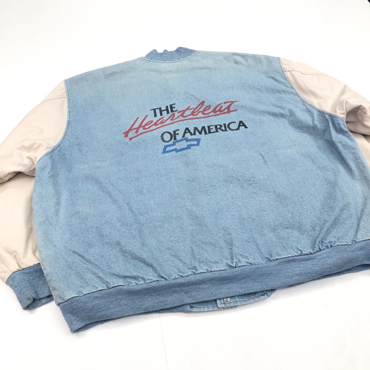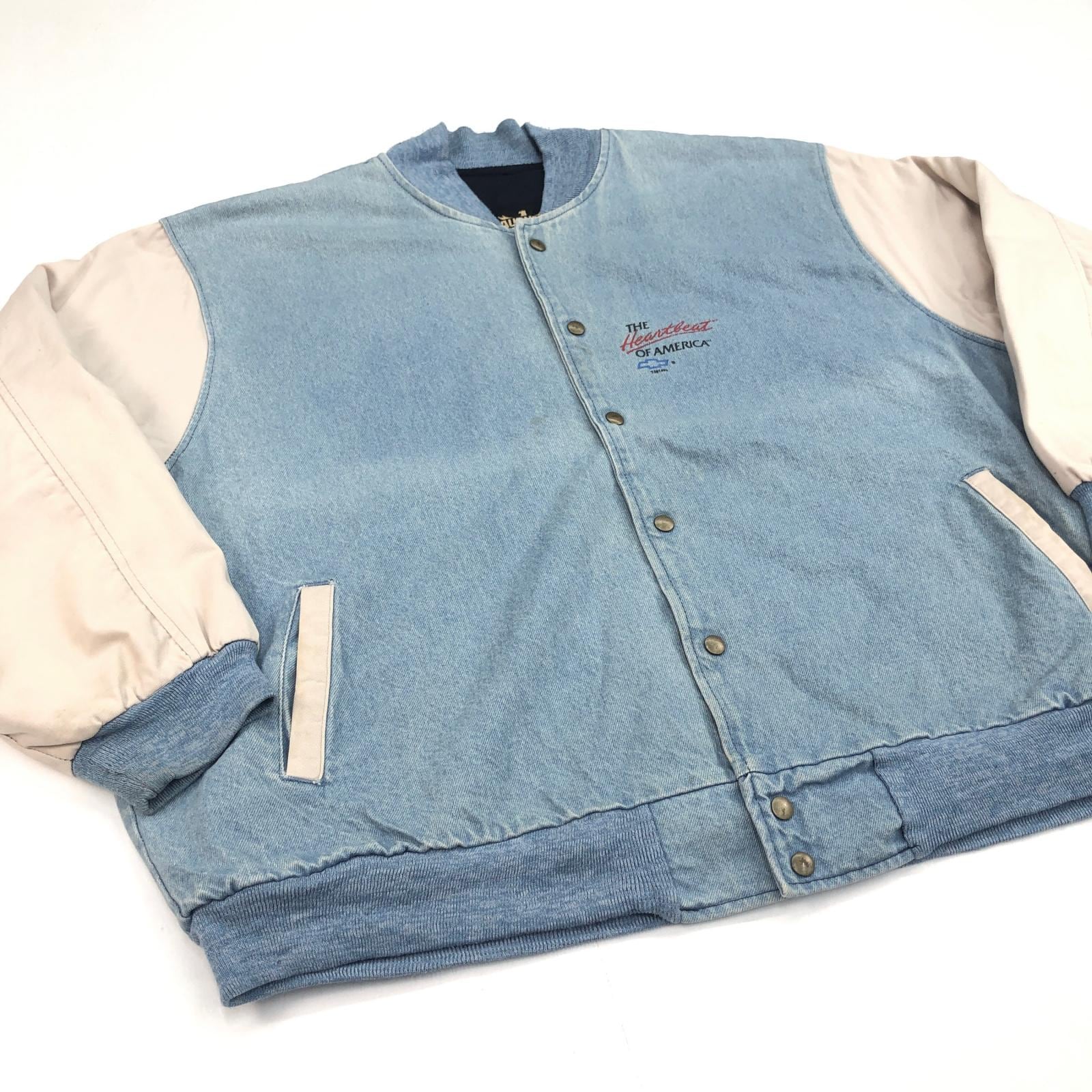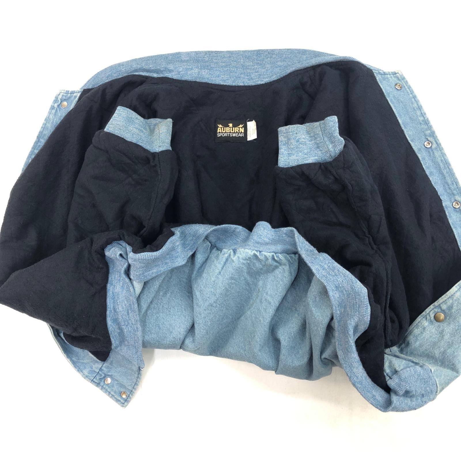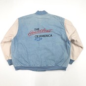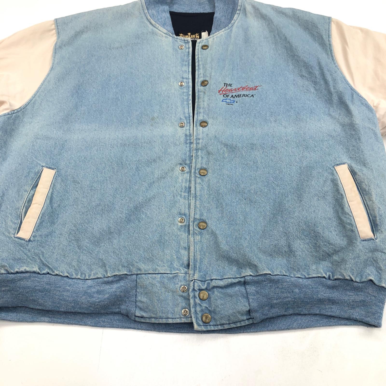 AUBURN SPORTWEAR 90年代 MADE USA製 切り替え デニムスタジャン ベースボールジャケット HEART OF AMERICA 両面プリント XXL 表記 | 古着屋 EAGLEBASE