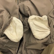 襟周り、肩 袖肘 袖先辺りには少しシミ、擦れ汚れがあります