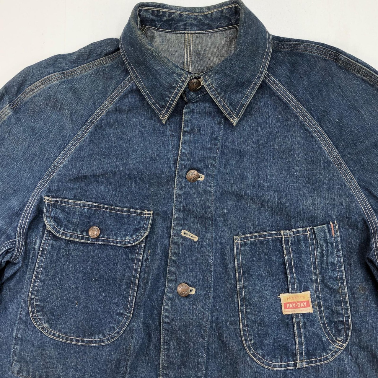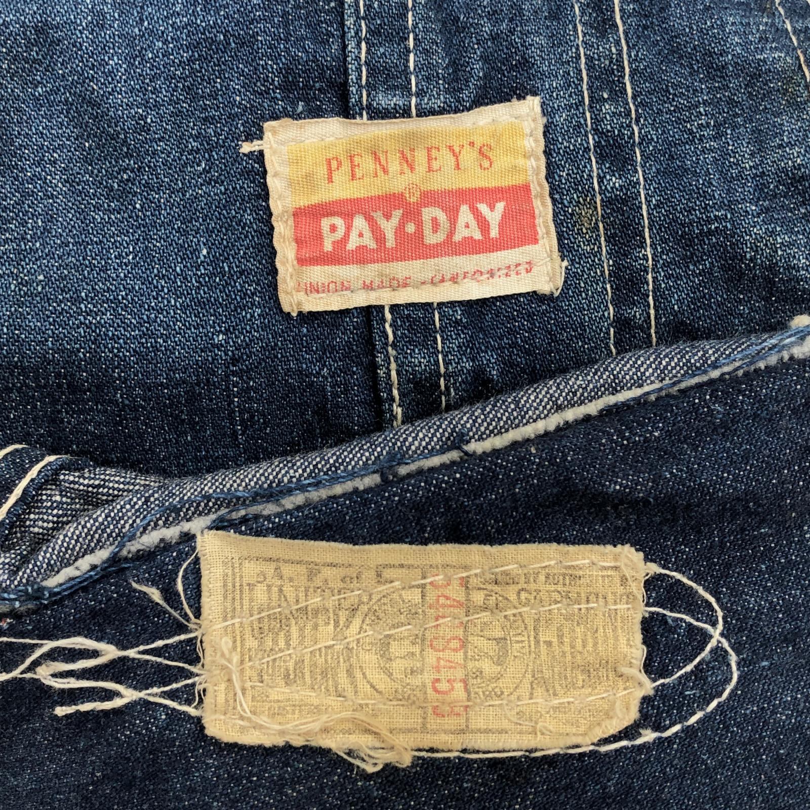 PAY-DAY ペイデイ 50年代 USA製 デニム カバーオール デニムジャケット ワークジャケット チョアジャケット ユニオンチケット付き 色濃い目 メンズ XL 位
