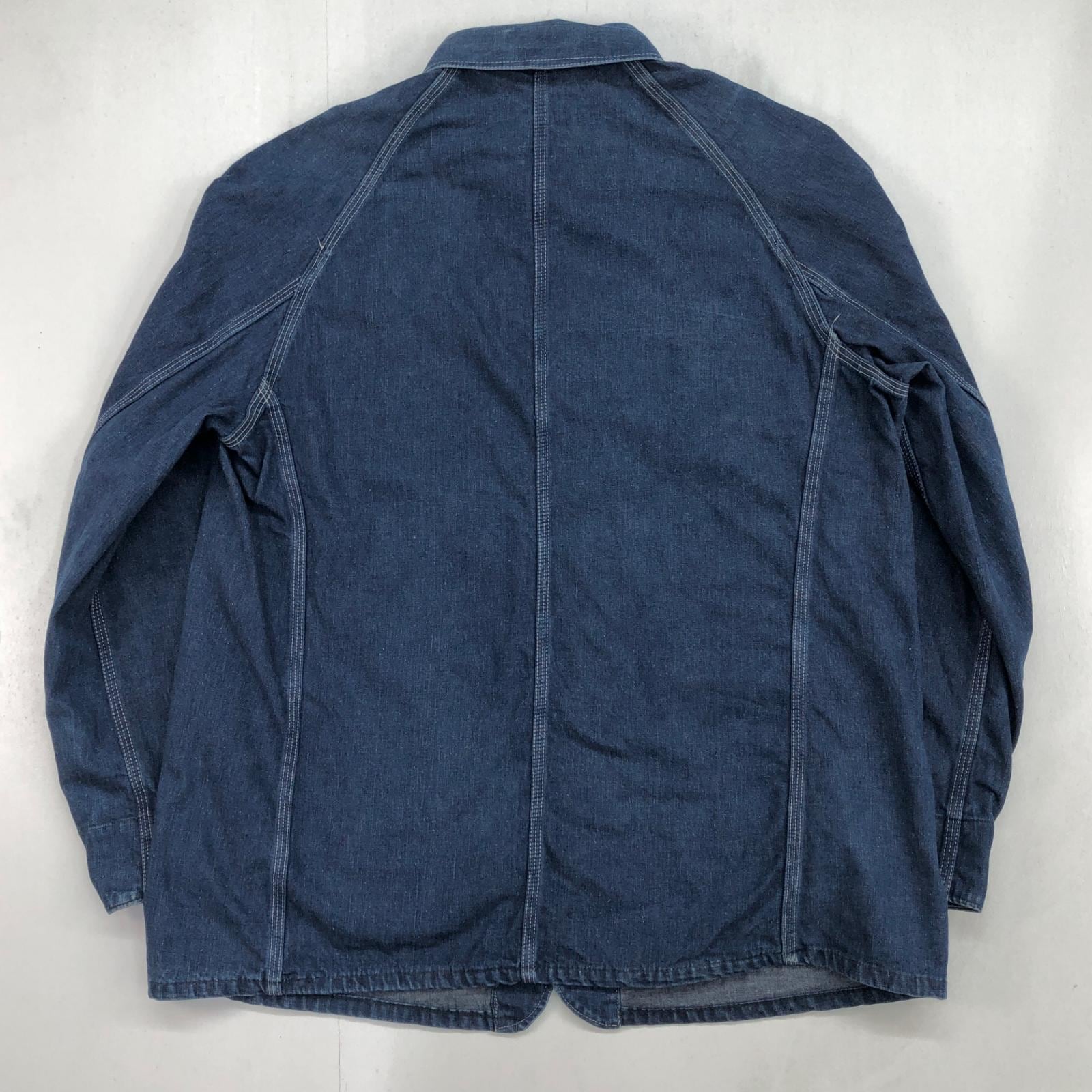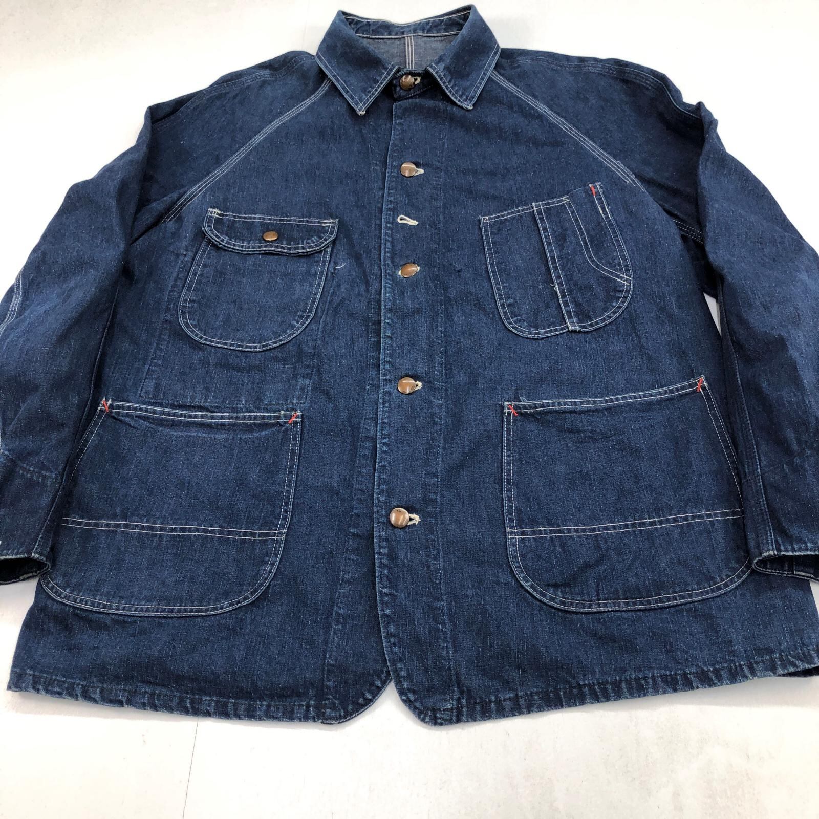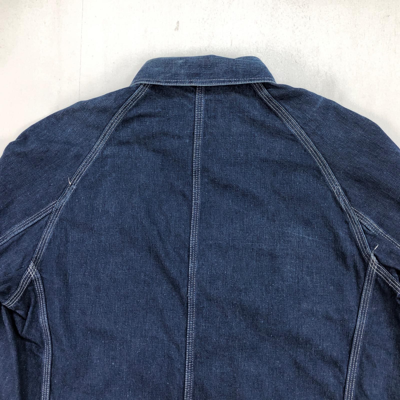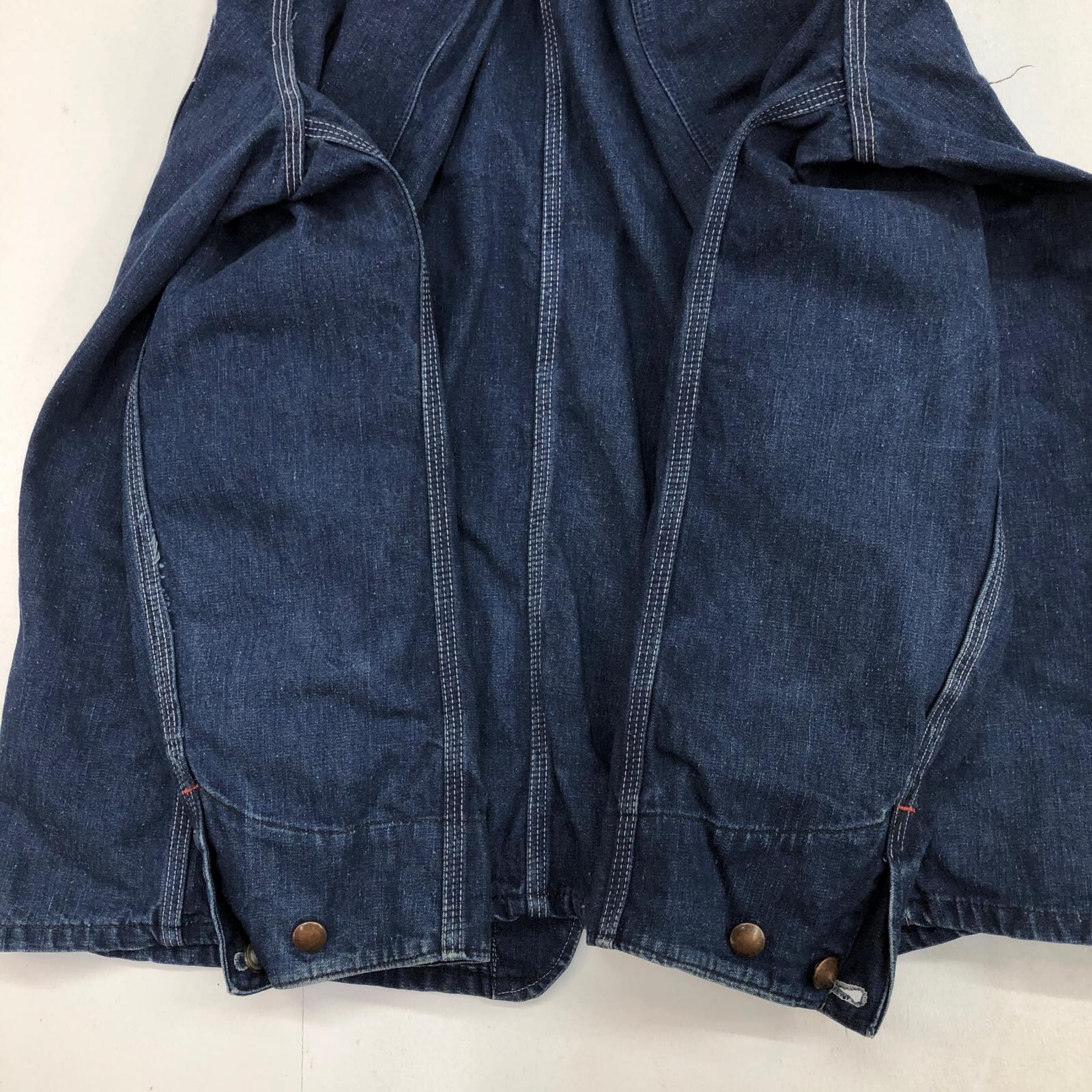 UNKNOWN ストア系 ブランド 50- 60年代あたり デニムカバーオール ワーク ジャケット チョアジャケット 襟コーデュロイ ユニオンチケット付き 濃紺 メンズ XXL 位