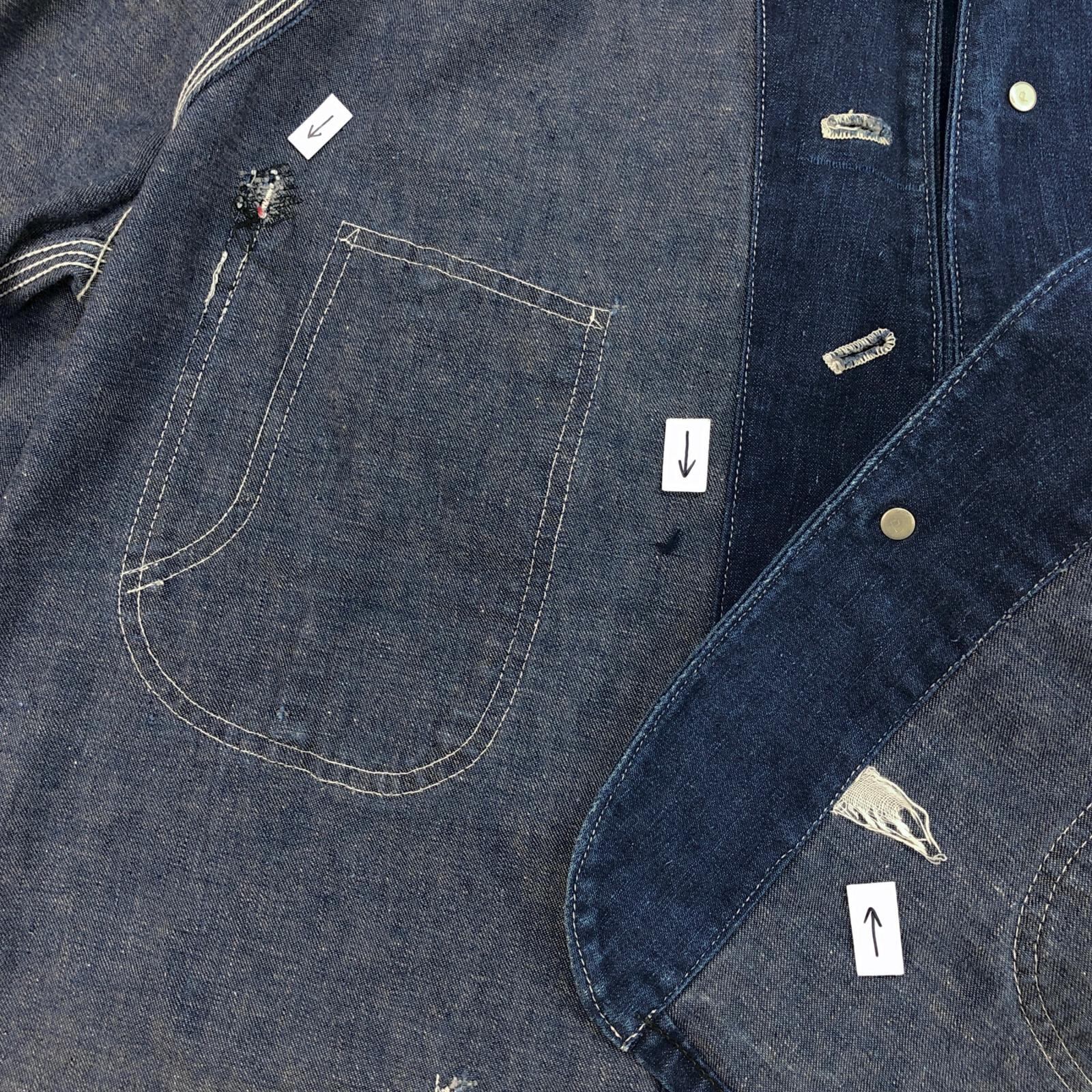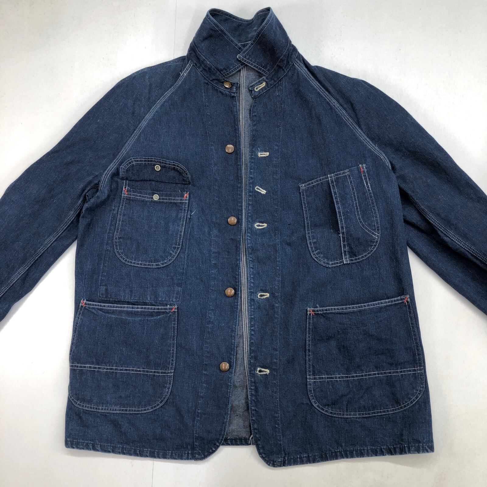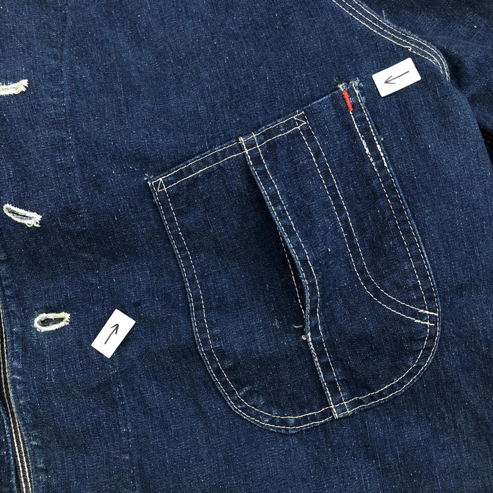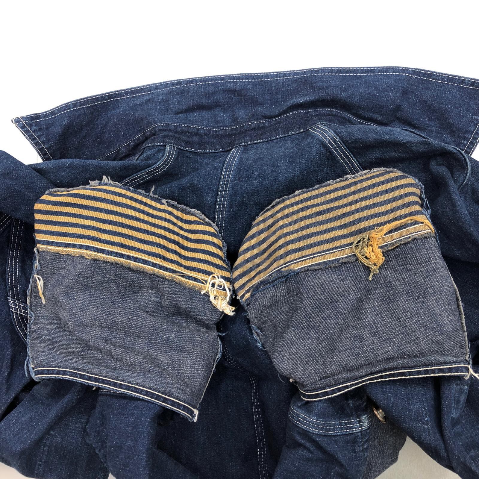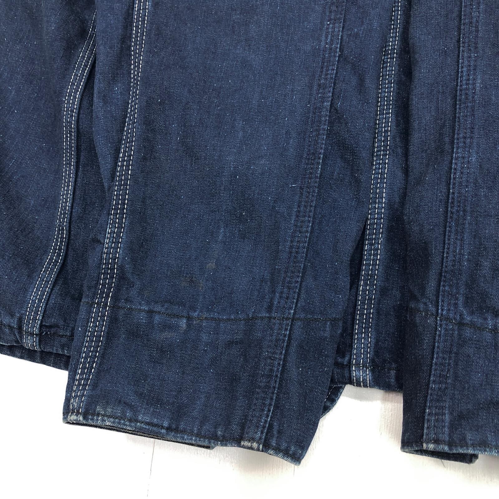 UNKNOWN ストア系 ブランド 50- 60年代あたり デニムカバーオール ワーク ジャケット チョアジャケット 襟コーデュロイ ユニオンチケット付き 濃紺 メンズ XXL 位