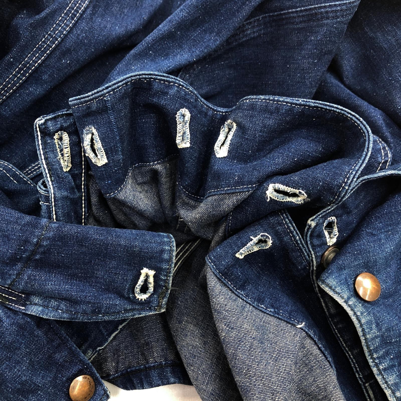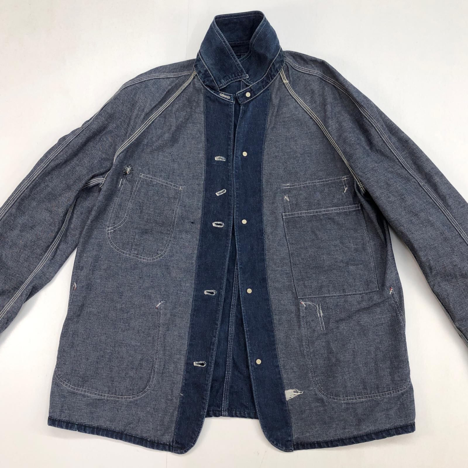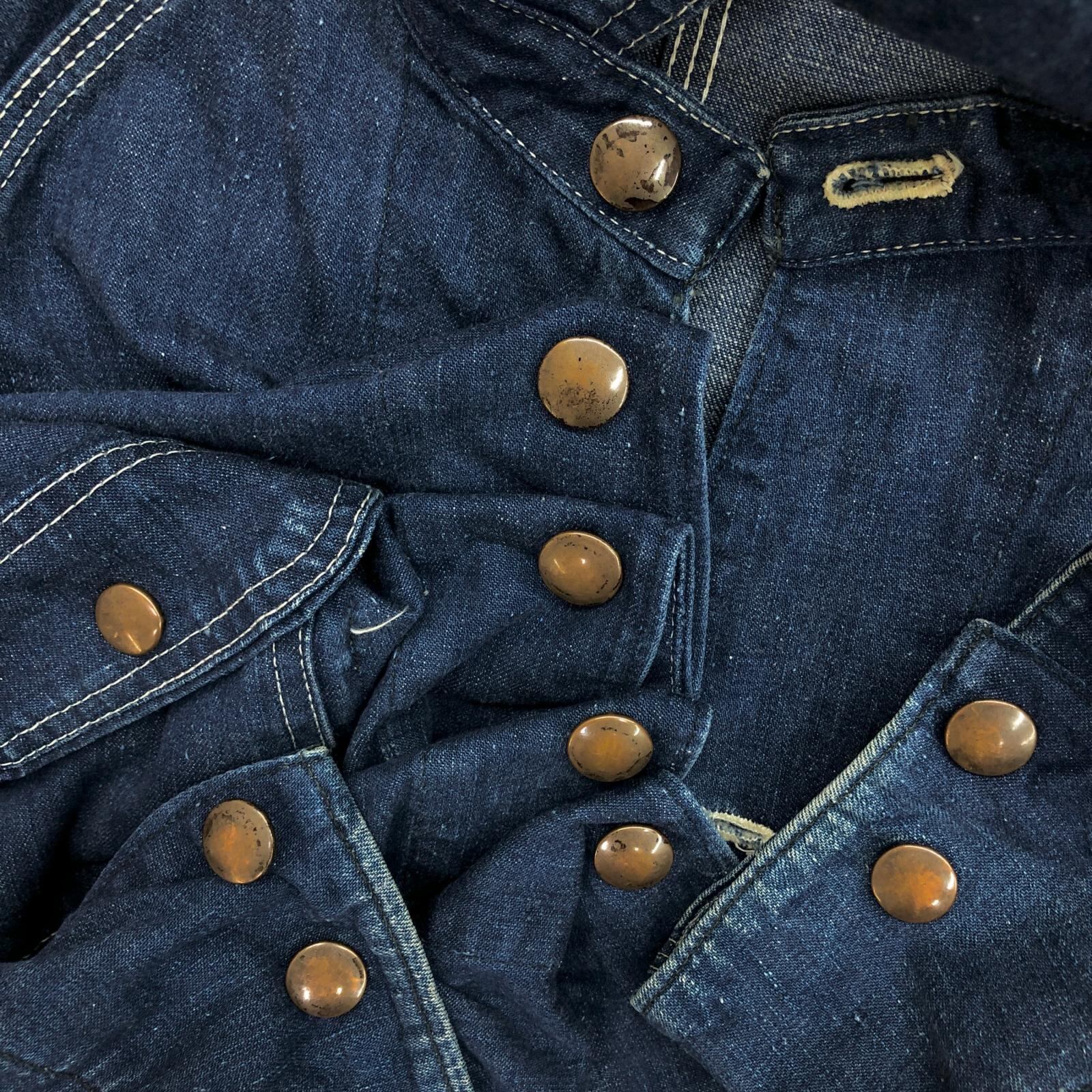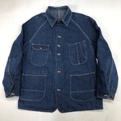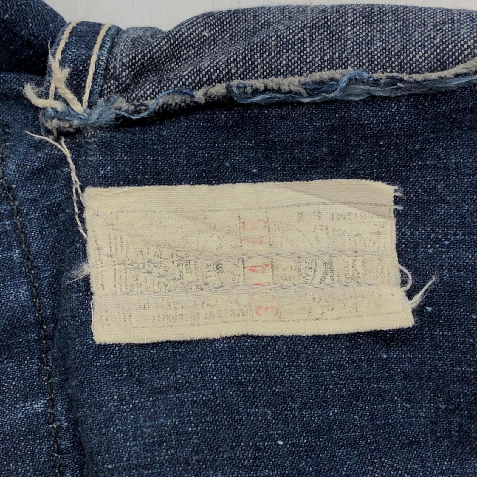 UNKNOWN ストア系 ブランド 50- 60年代あたり デニムカバーオール ワーク ジャケット チョアジャケット 襟コーデュロイ ユニオンチケット付き 濃紺 メンズ XXL 位