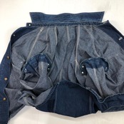 左脇、左下のトリプルステッチの生地の巻き込みが甘く