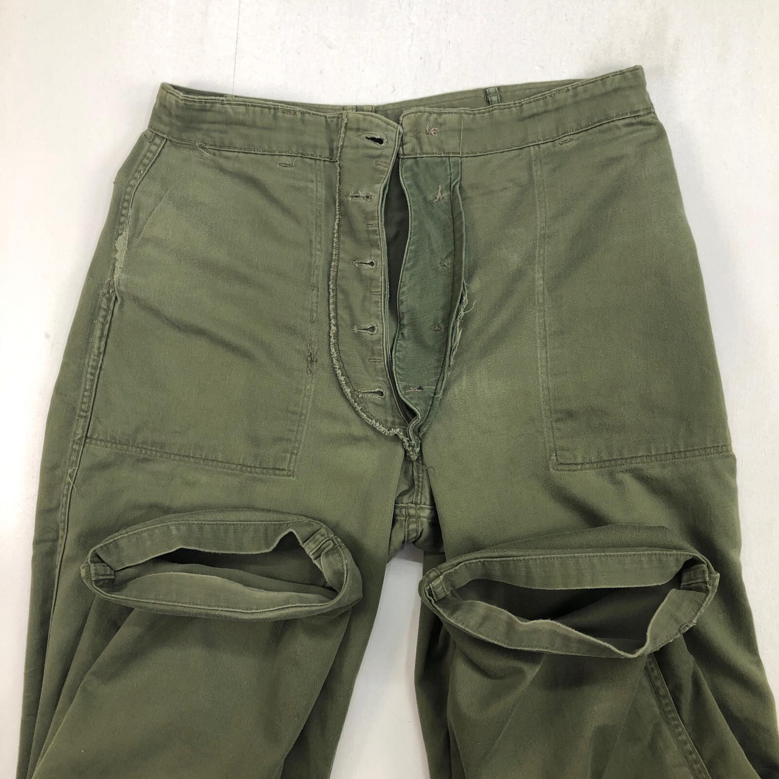 U.S.ARMY 60年代 USA製 OG-107 ミリタリー ベイカーパンツ ファティーグパンツ ダブルステッチ TROUSERS, MEN'S COTTON W33 L30 位