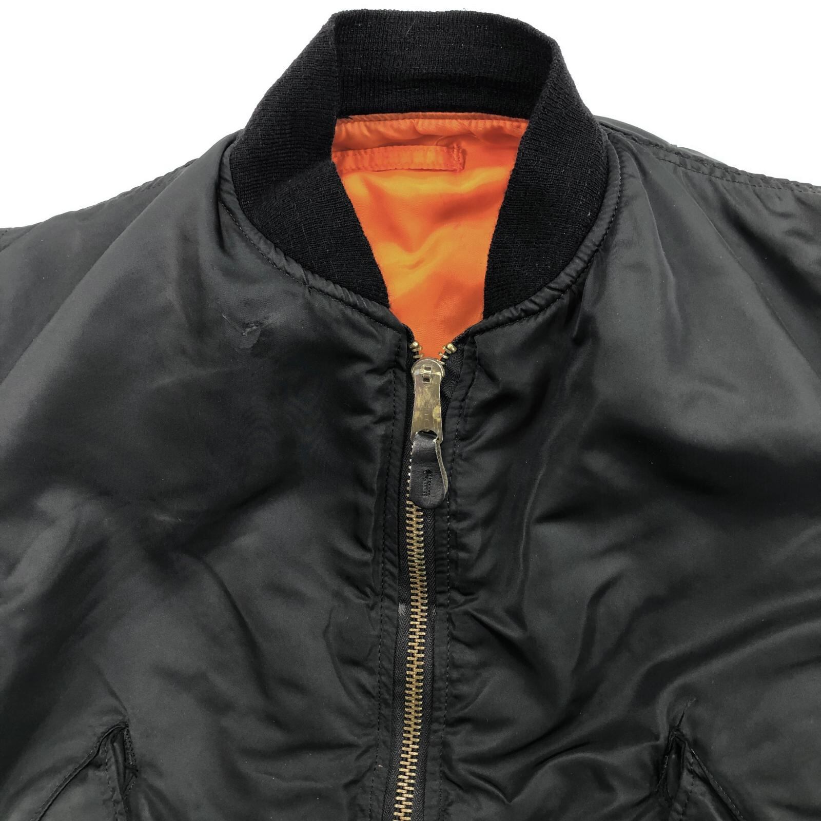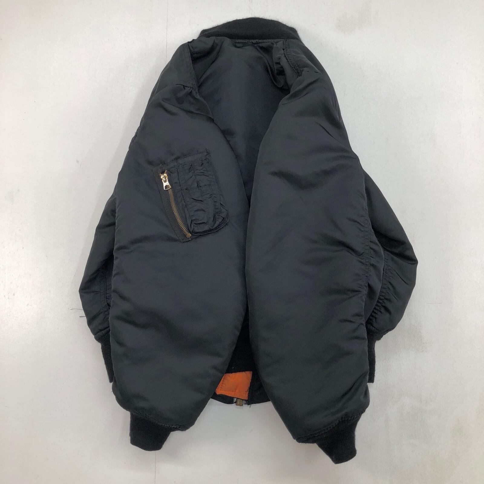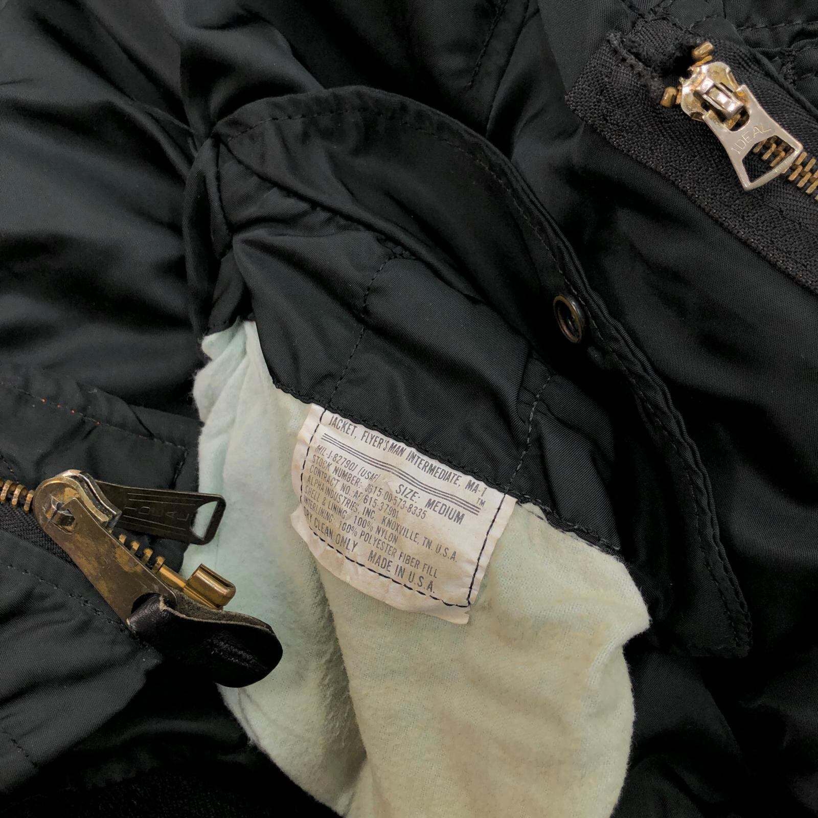 ALPHA アルファ 90- 00年代 USA製 MA-1 民間品 ミリタリー フライト ジャケット JACKET. FLYER'S MAN INTERMEDIATE, MA-1 MIL-J-82790J ブラック MEDIUM 表記