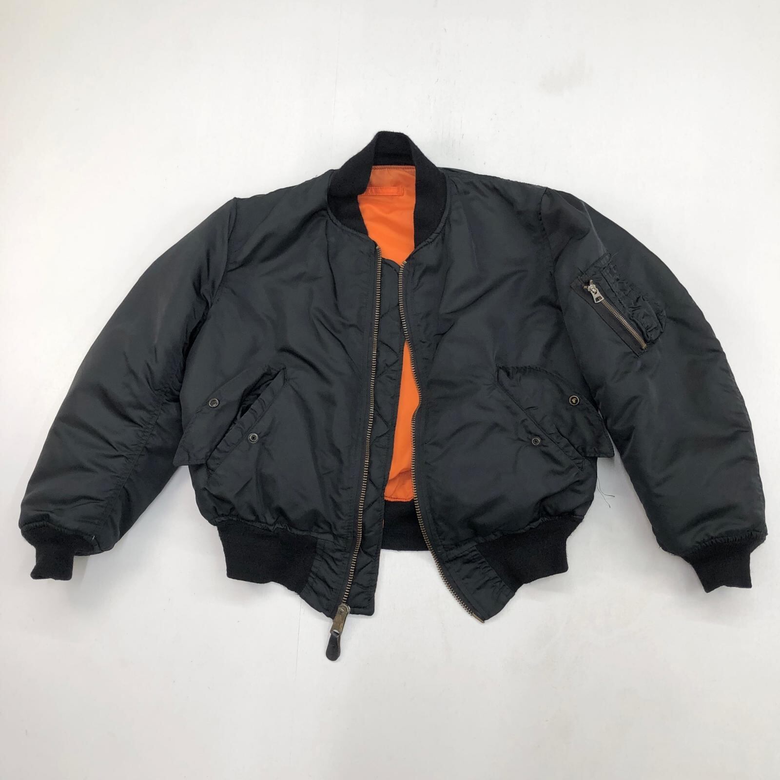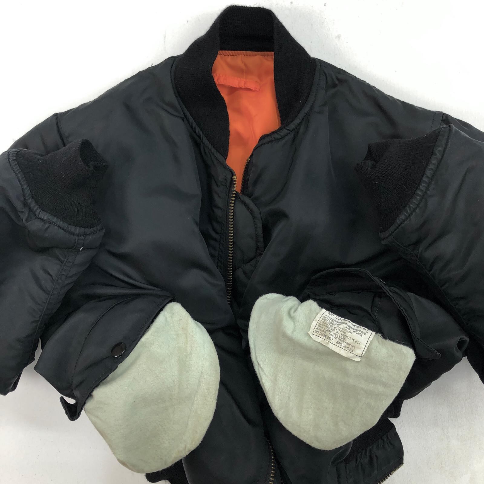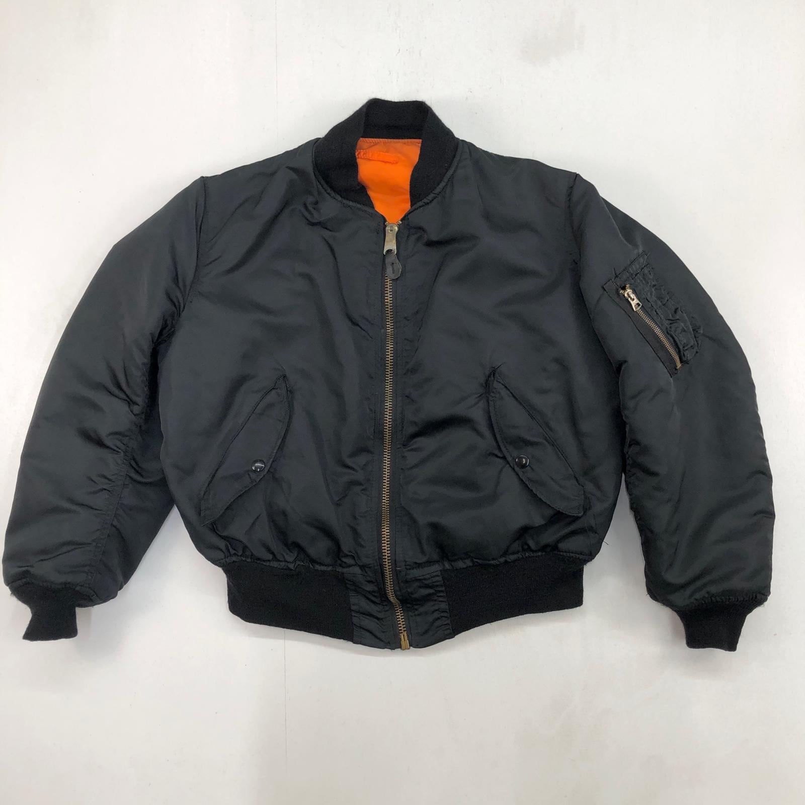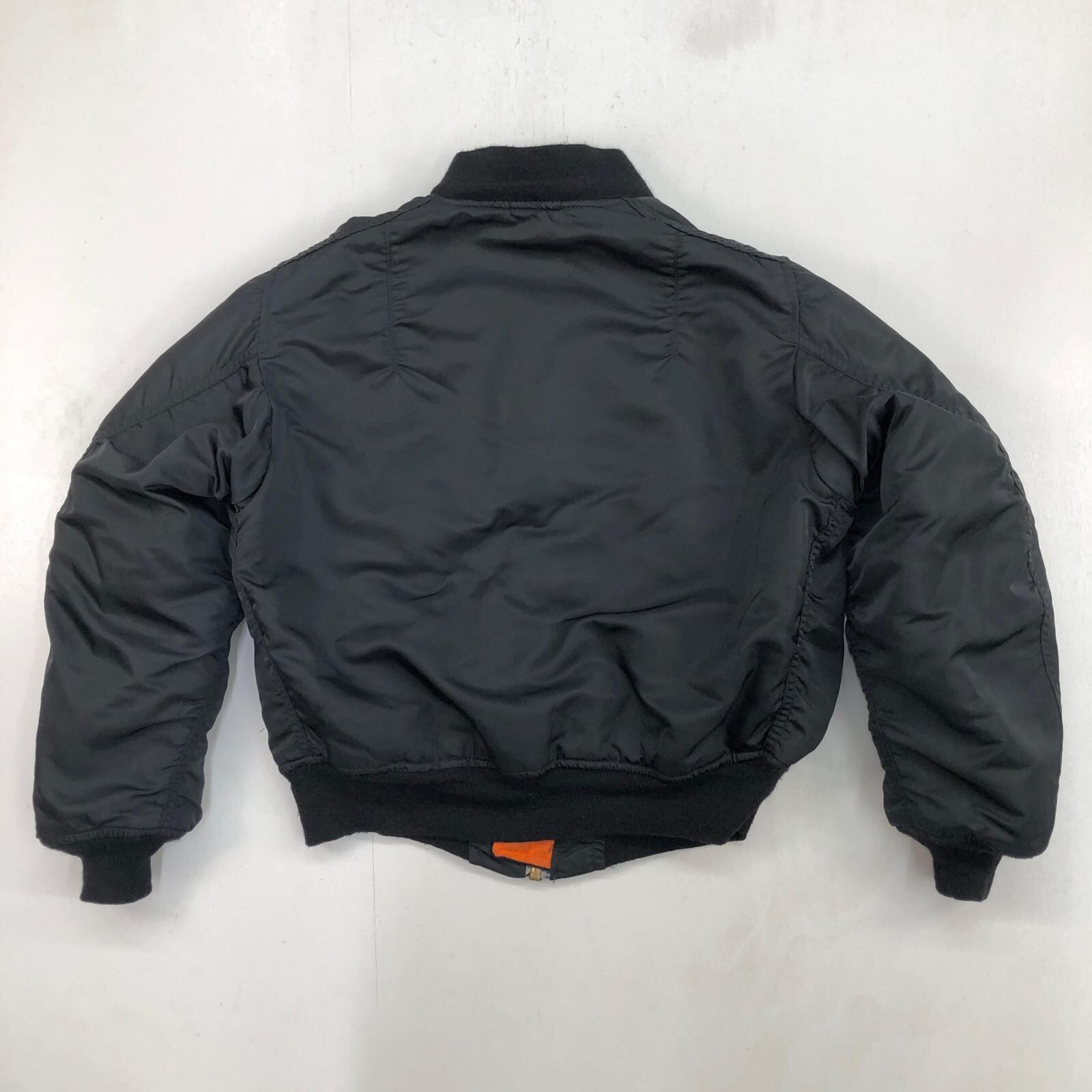 ALPHA アルファ 90- 00年代 USA製 MA-1 民間品 ミリタリー フライト ジャケット JACKET. FLYER'S MAN INTERMEDIATE, MA-1 MIL-J-82790J ブラック MEDIUM 表記