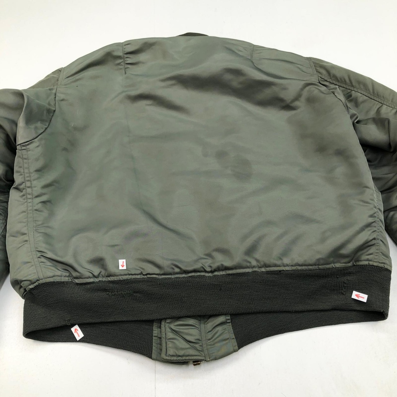 裏側裾の赤矢印はリペア縫いが施されています
