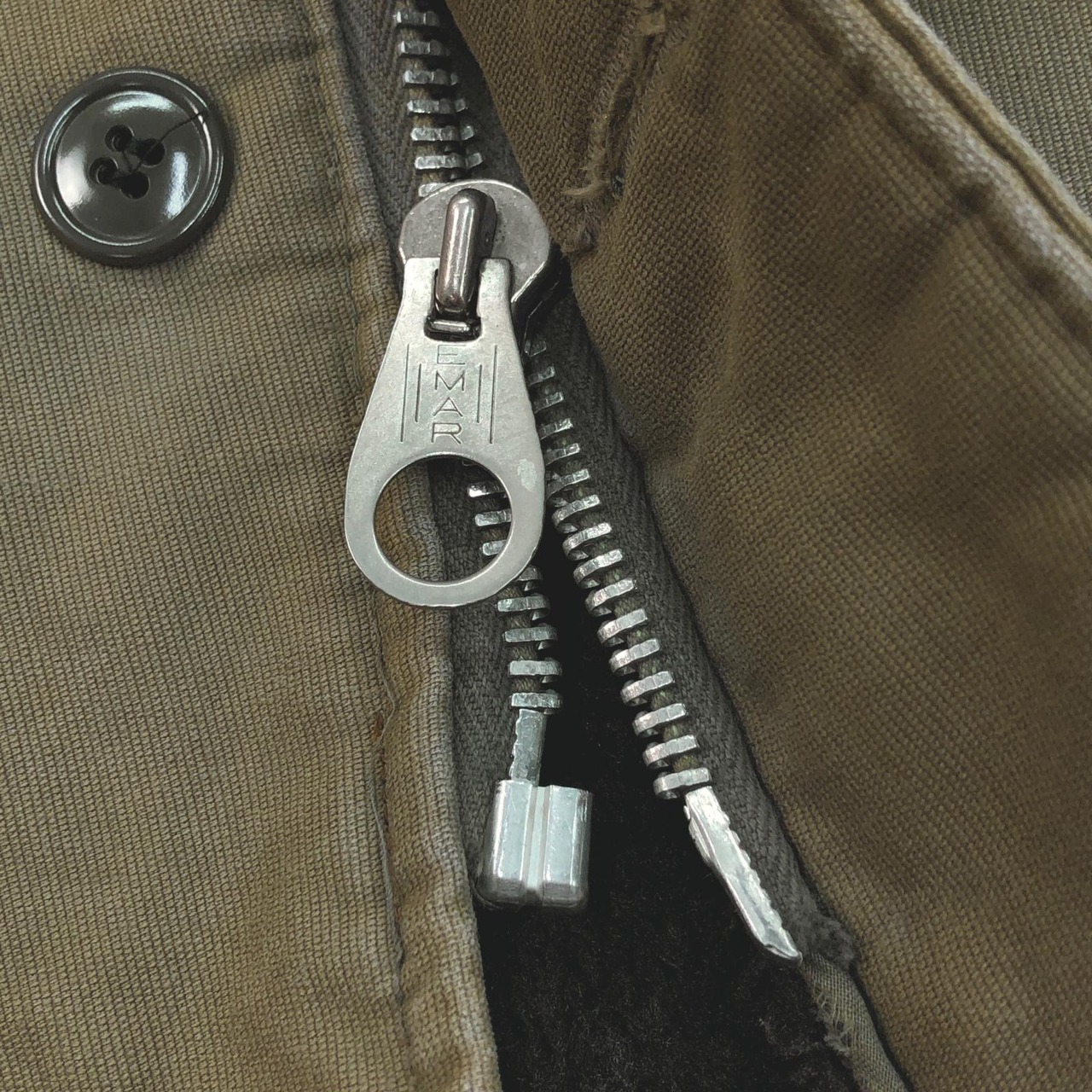 左襟裏のチンストを留めるボタンは1つの為