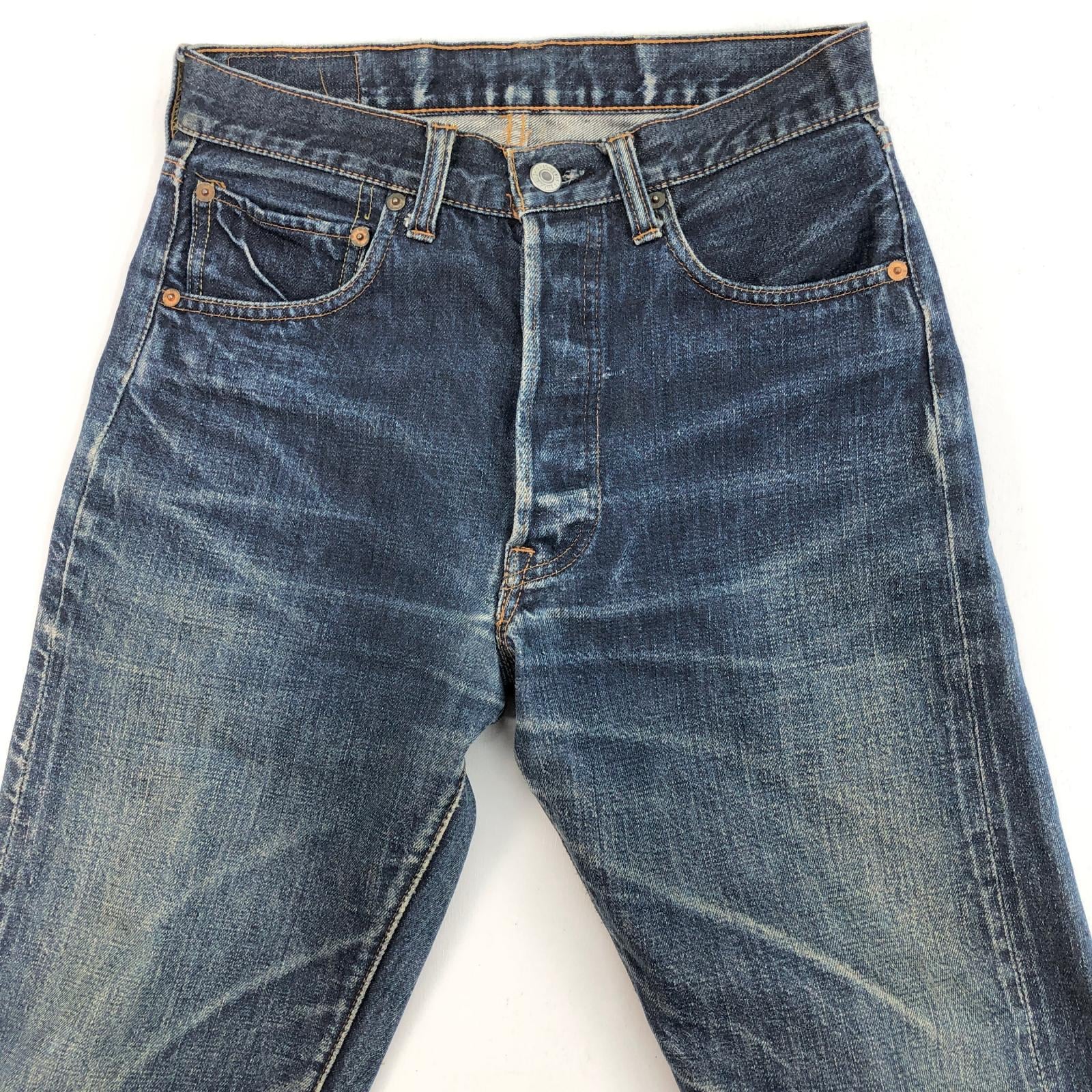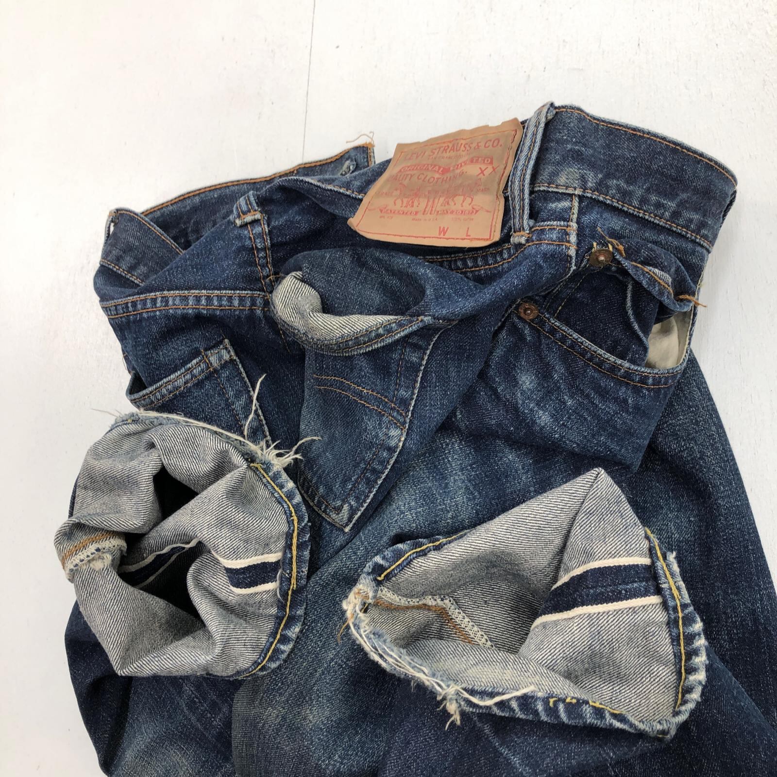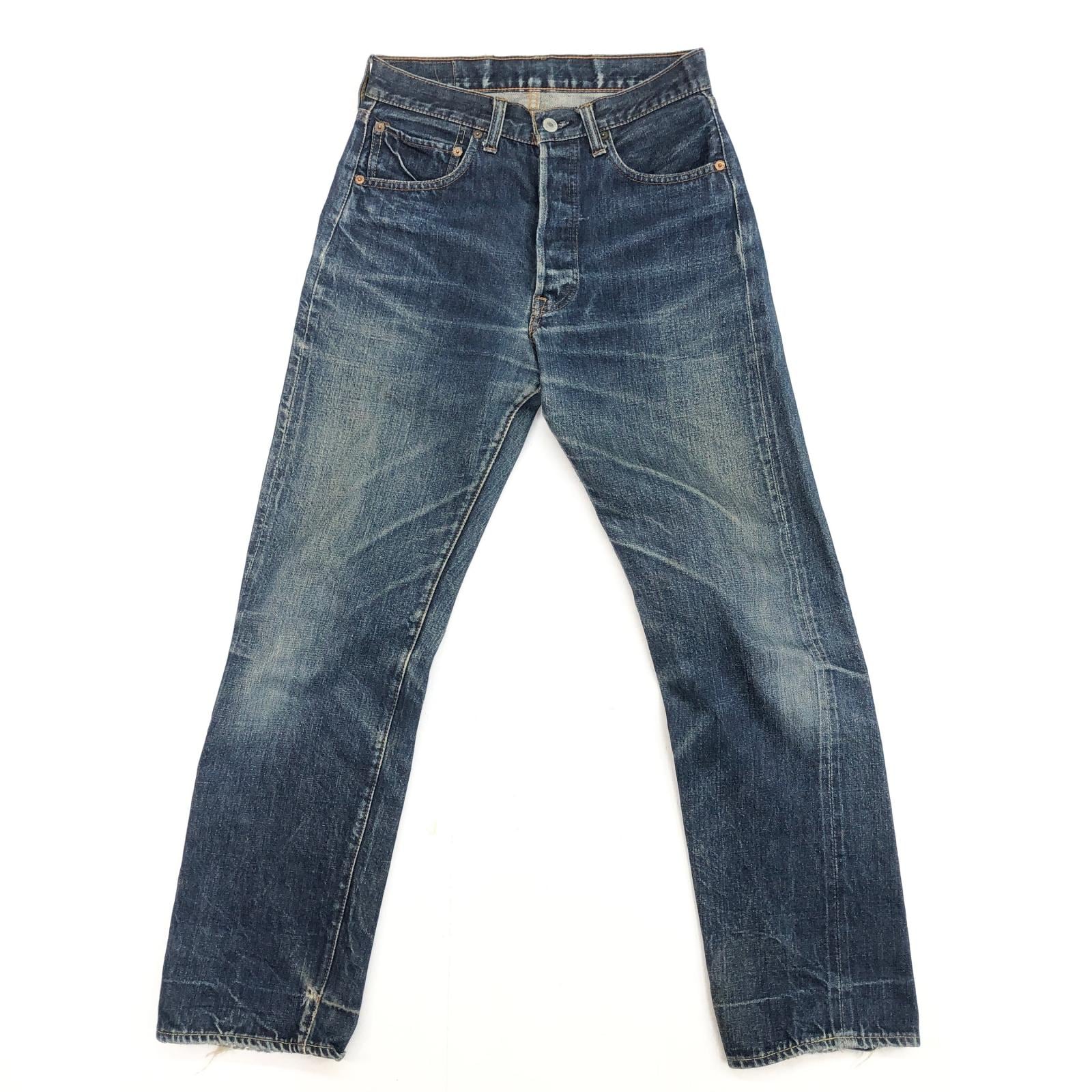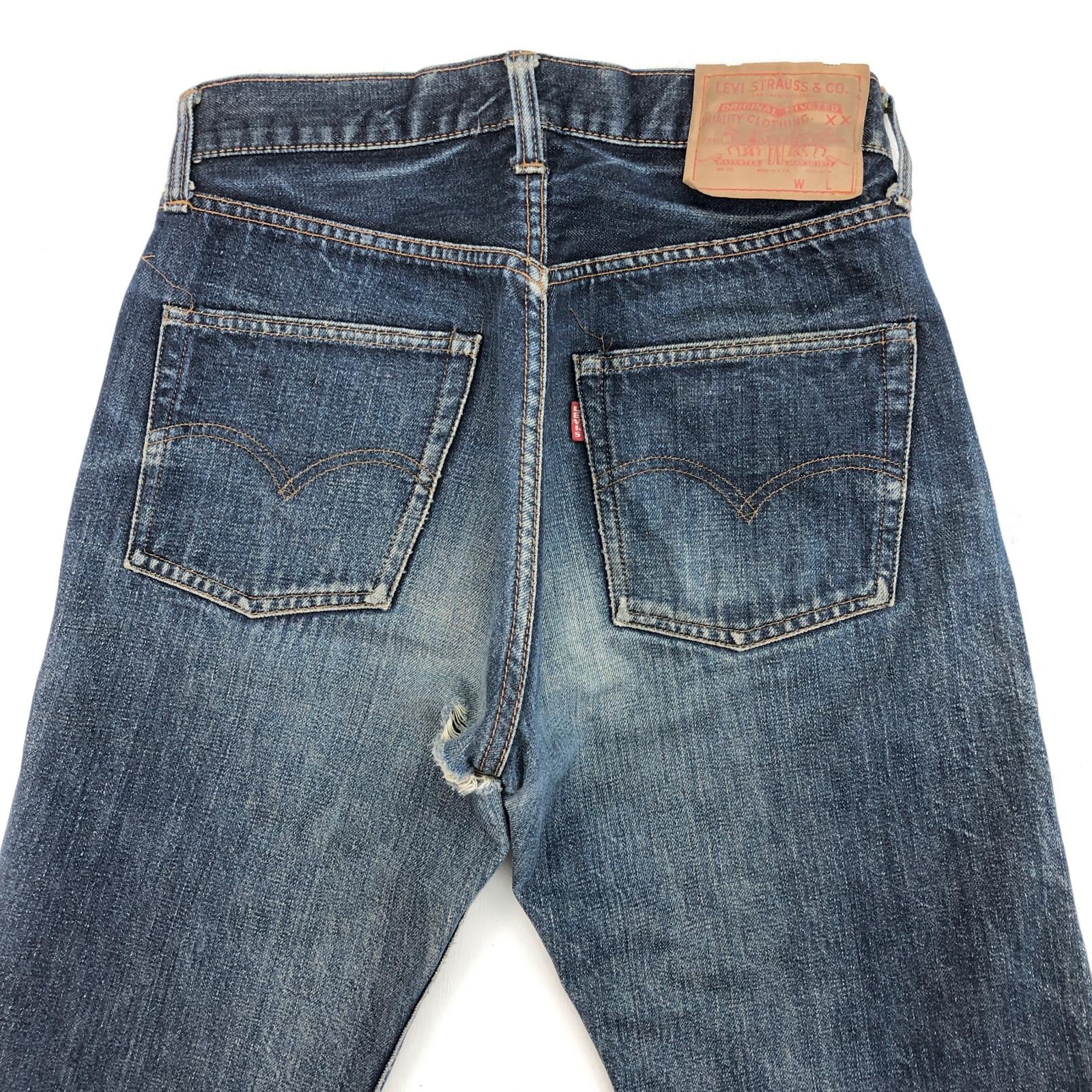 LEVI'S リーバイス 60 -70年代 USA製 501 最終 BIG E 後期 バックポケット 裏シングル 刻印 6 赤耳 セルヴィッジ 実寸 W28 L29 位 表記 タグ なし