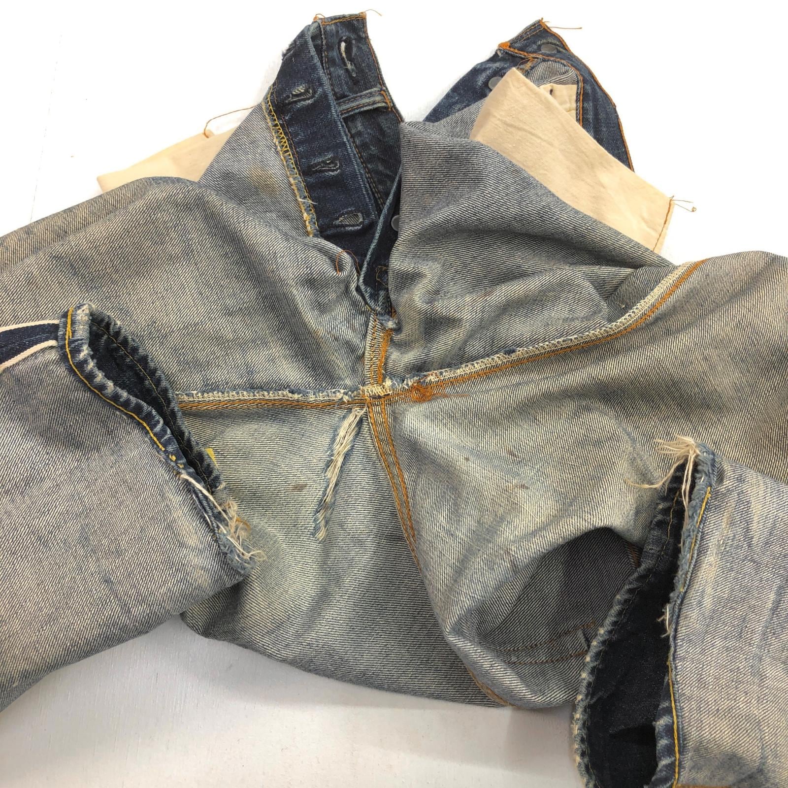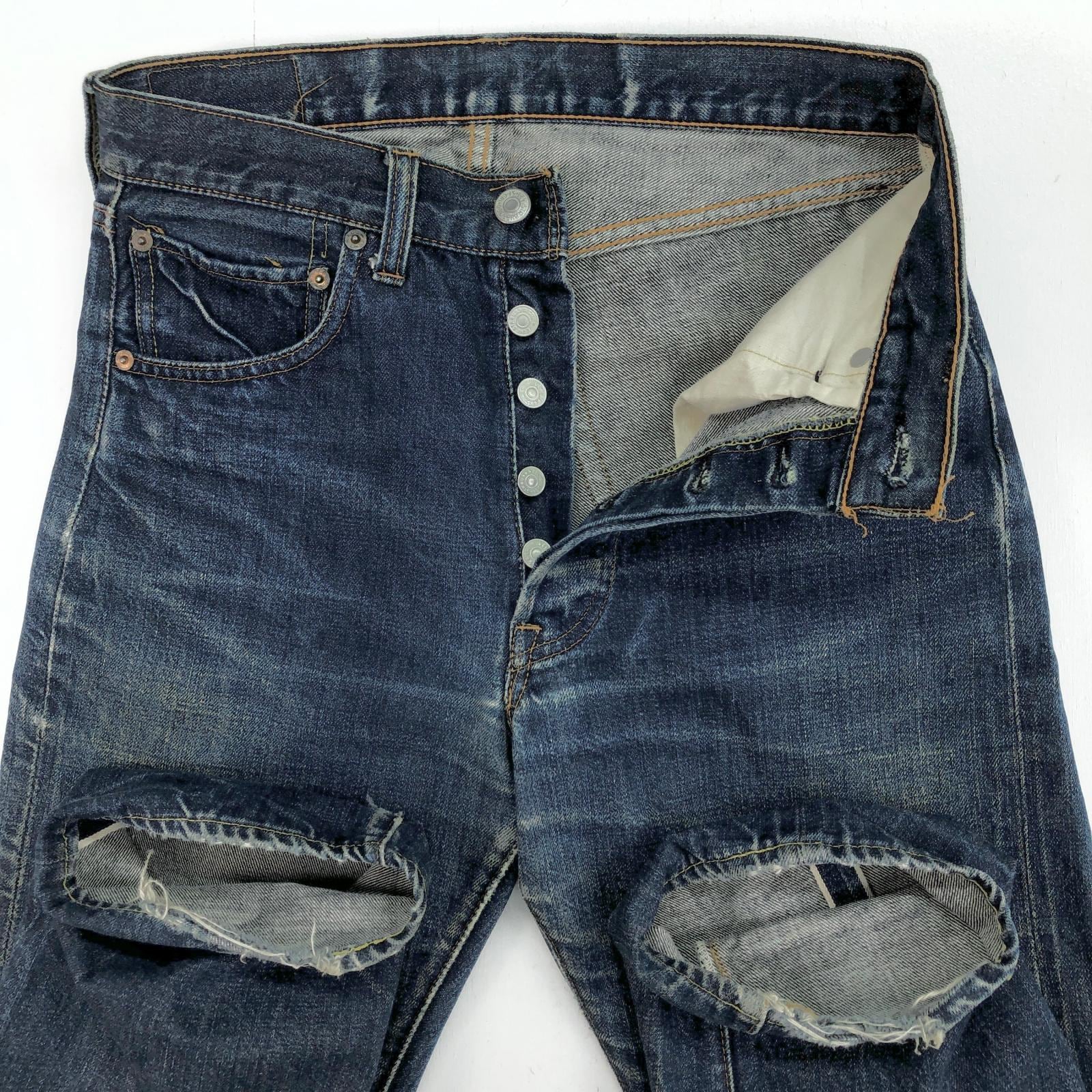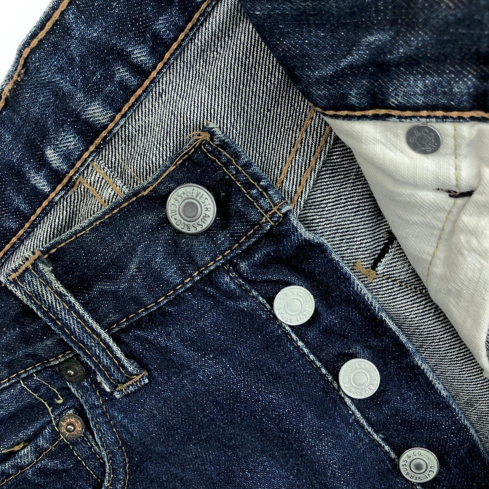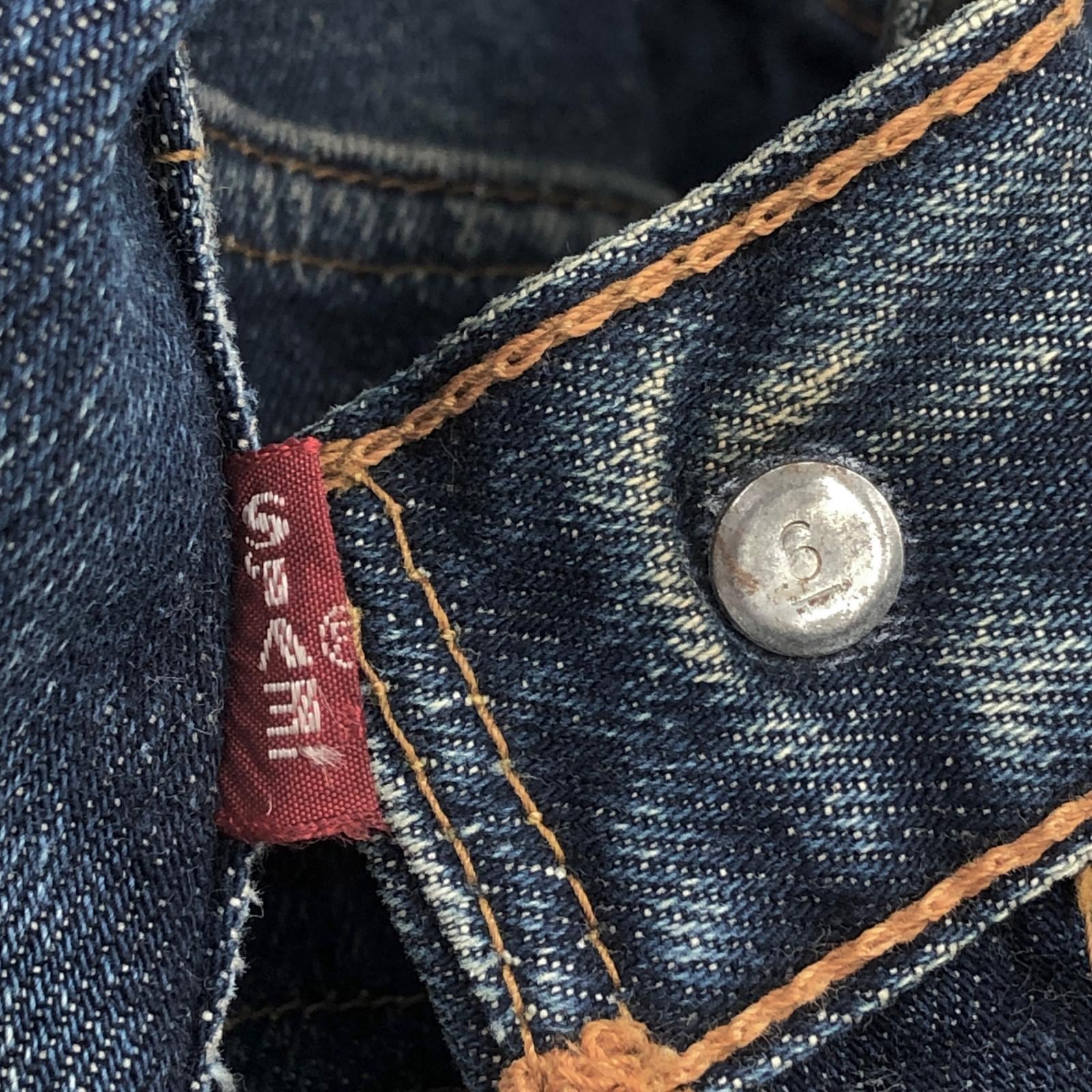 LEVI'S リーバイス 60 -70年代 USA製 501 最終 BIG E 後期 バックポケット 裏シングル 刻印 6 赤耳 セルヴィッジ 実寸 W28 L29 位 表記 タグ なし