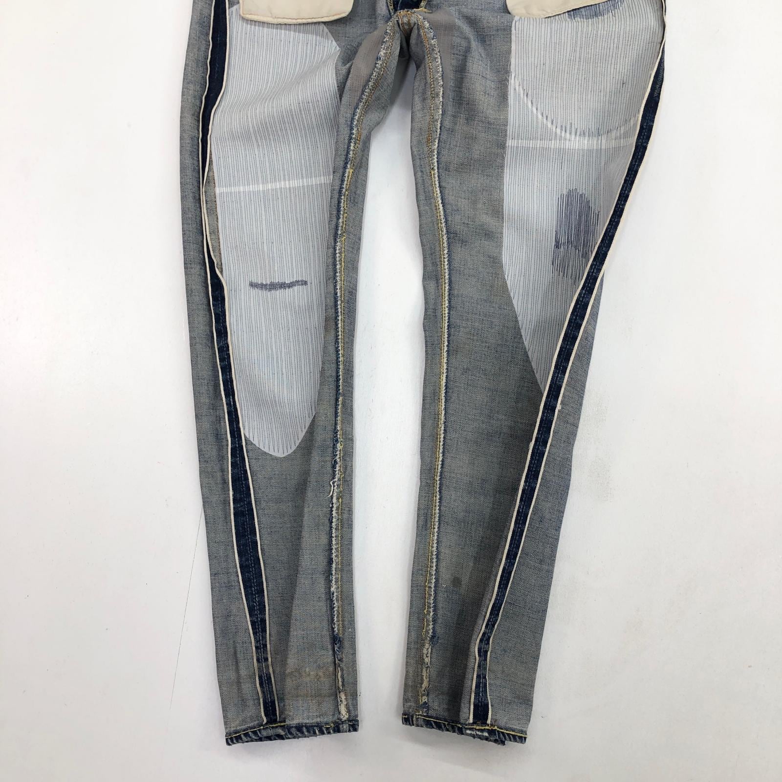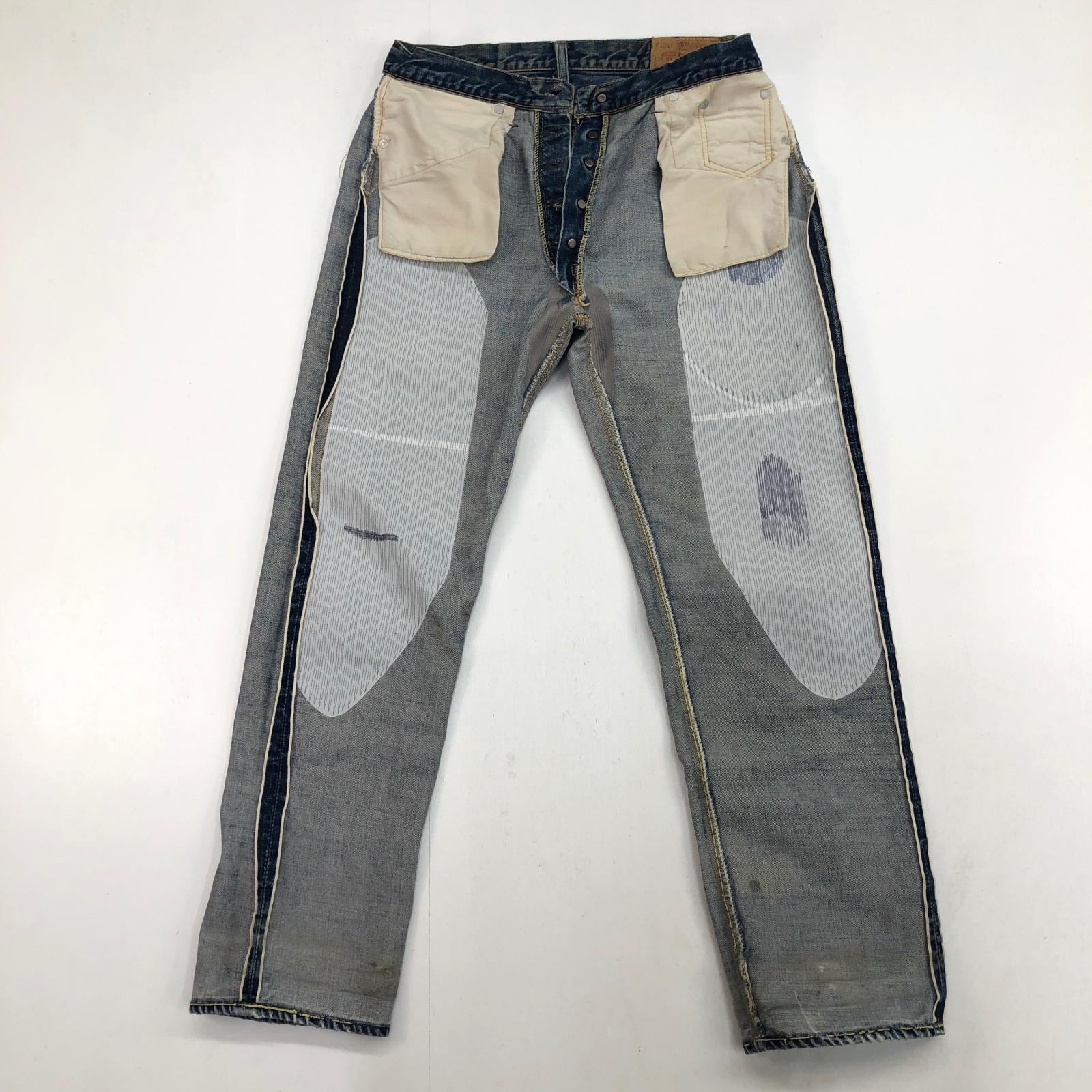 もも、膝、右ヒップ 右もも〜腰、股、当て布貼り付けタタキリペアあり