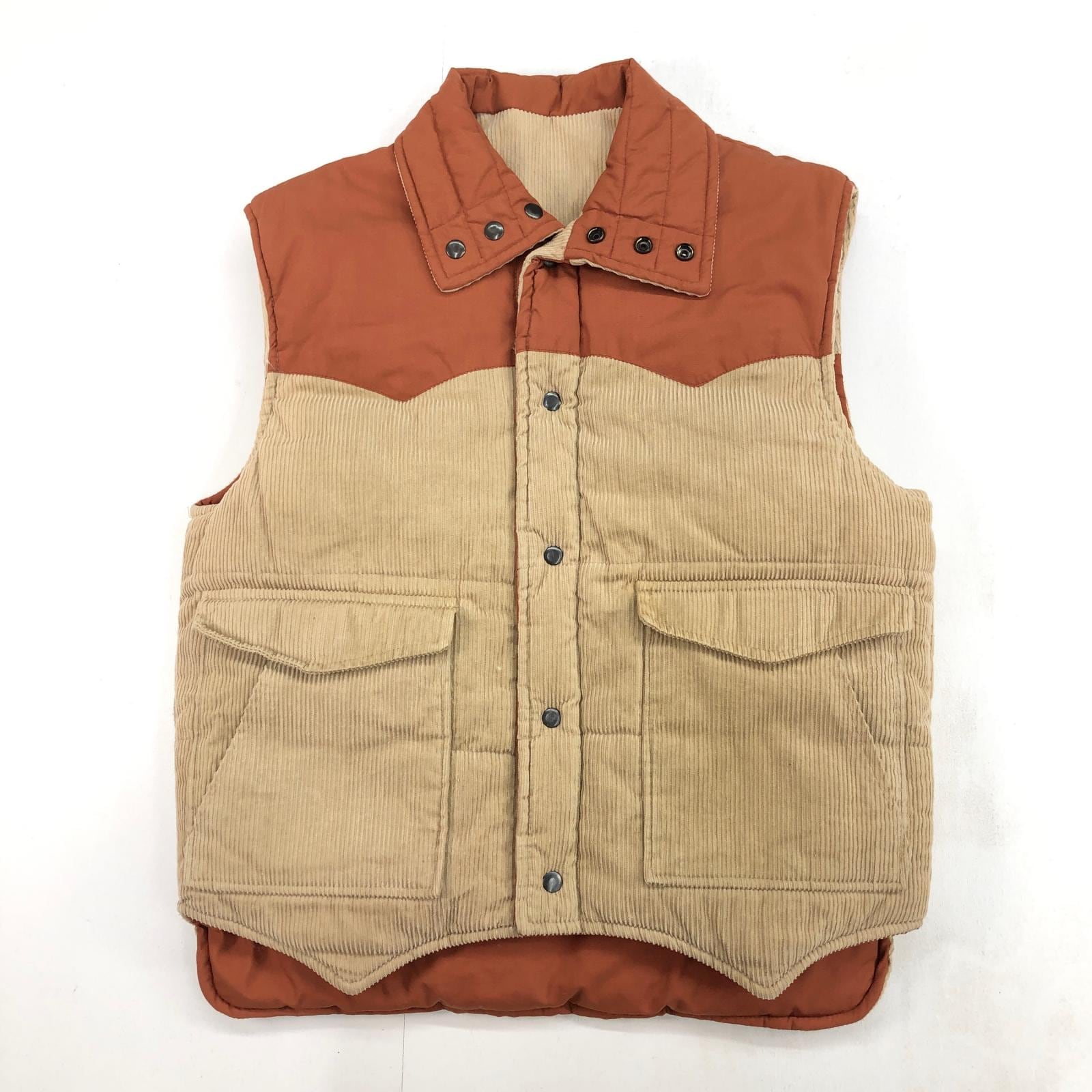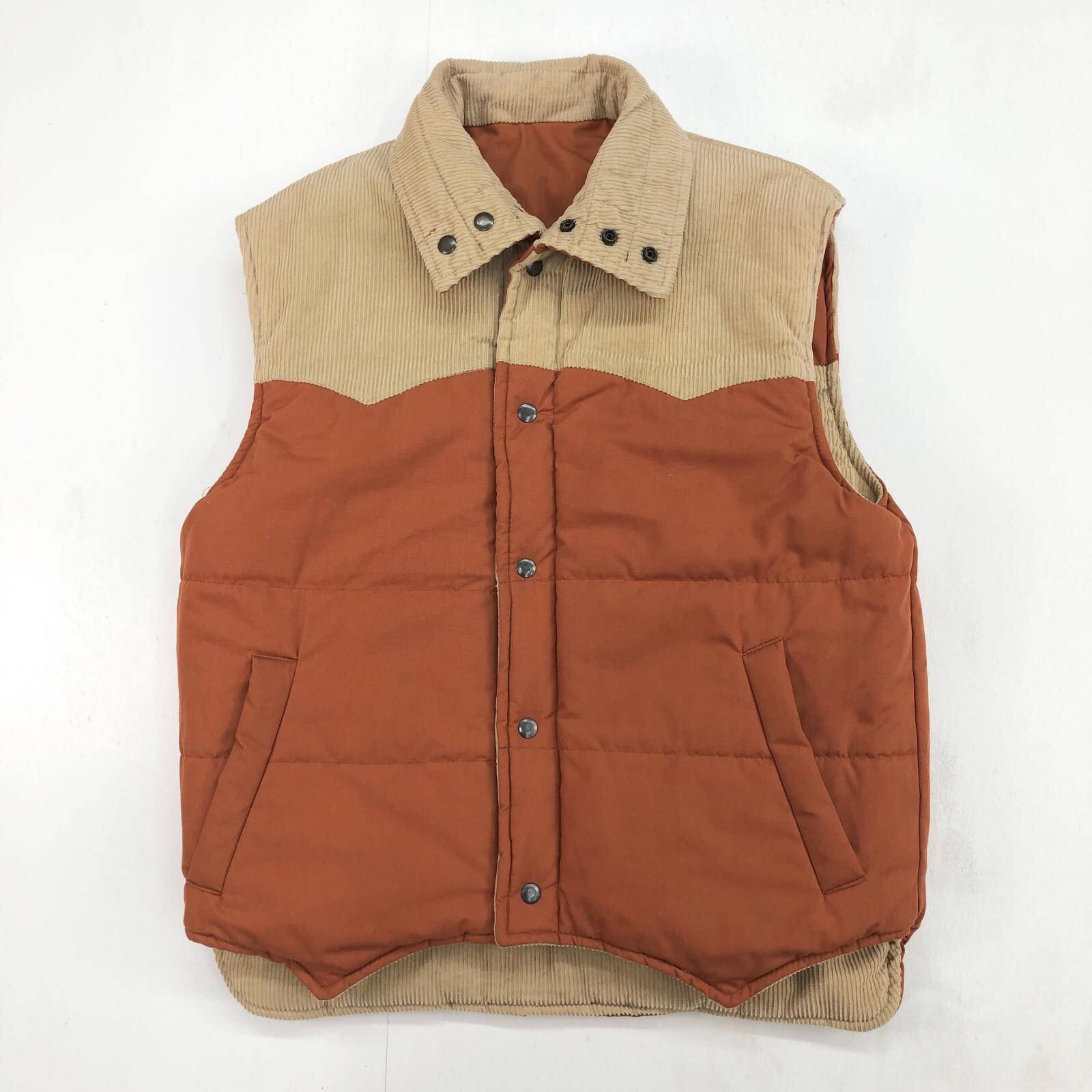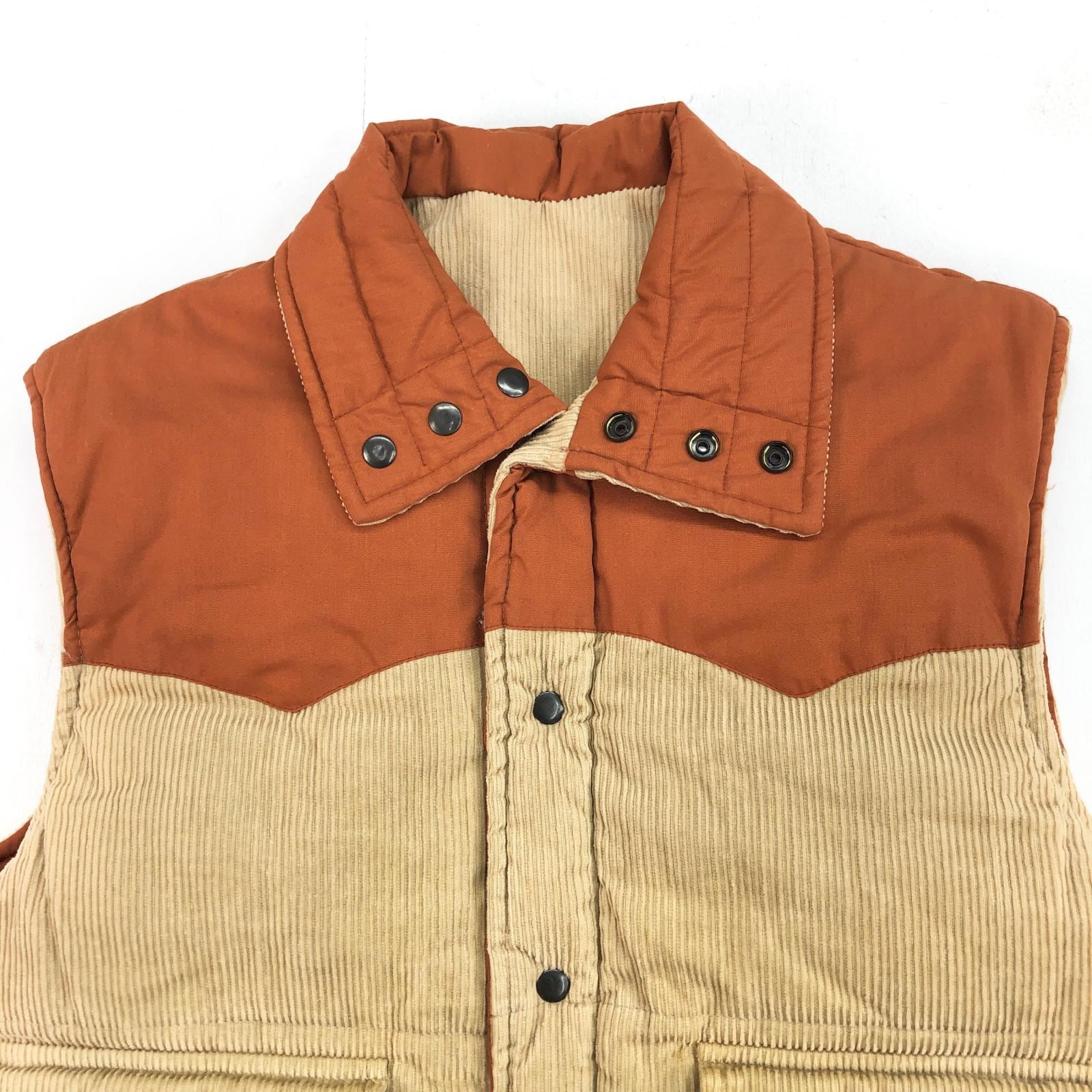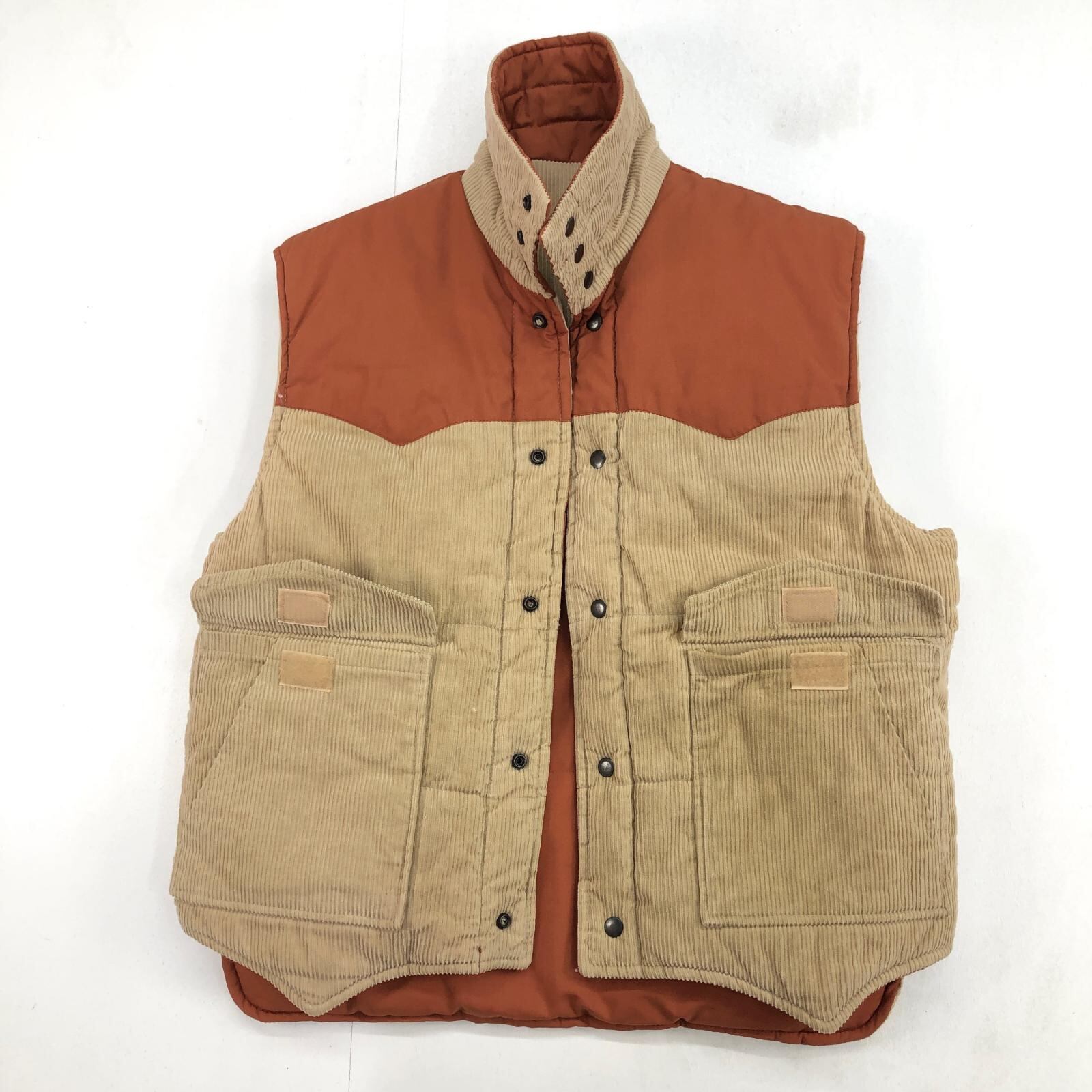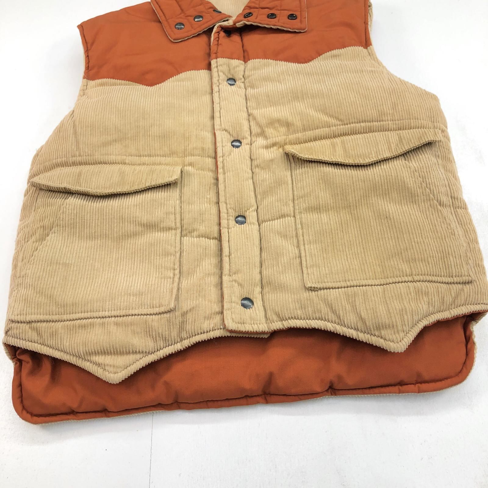 MADISON マジソン 70- 80年代 リバーシブル 中綿 ベスト コーデュロイ ナイロン ヨーク切り替え ブリックカラー ベージュ タグ L 表記