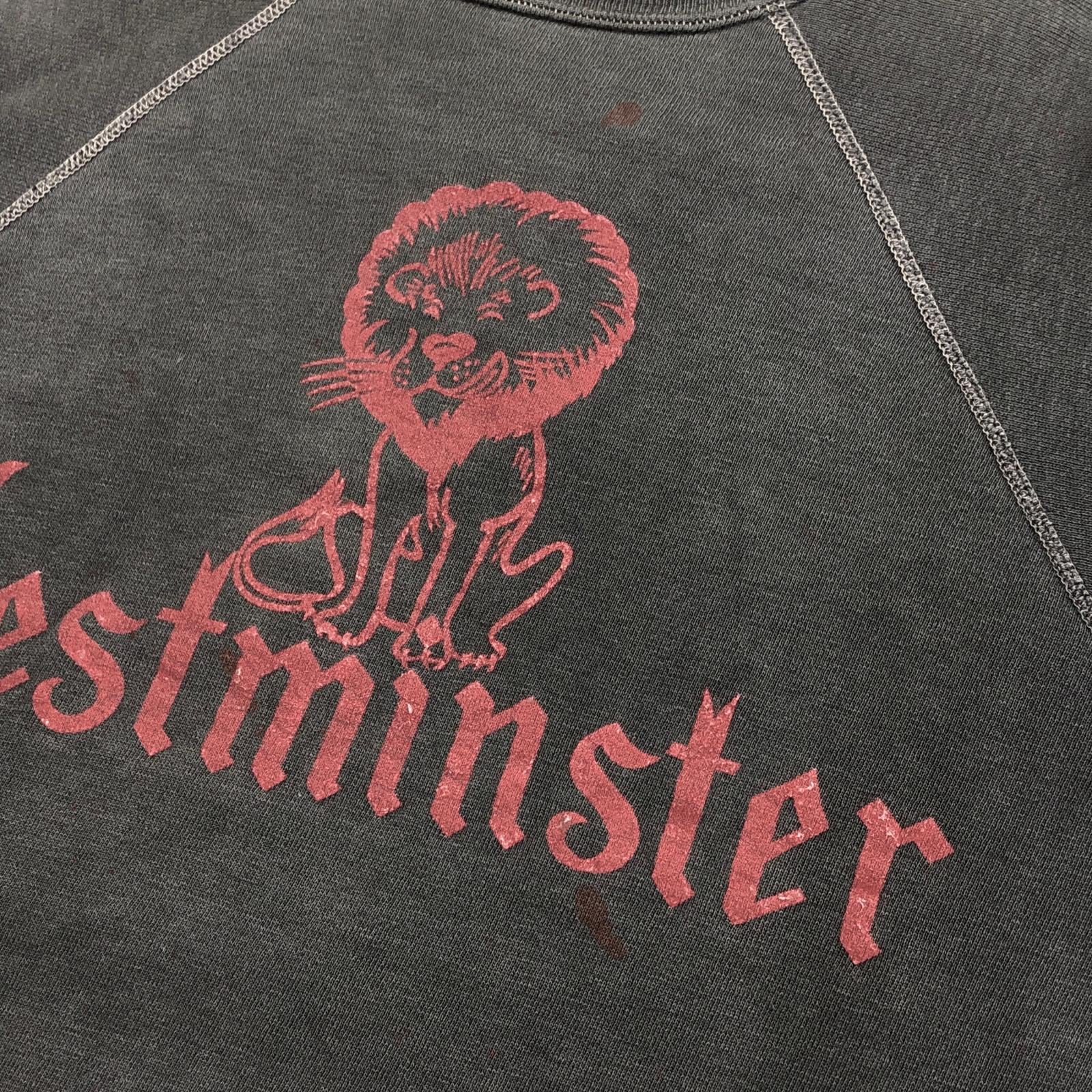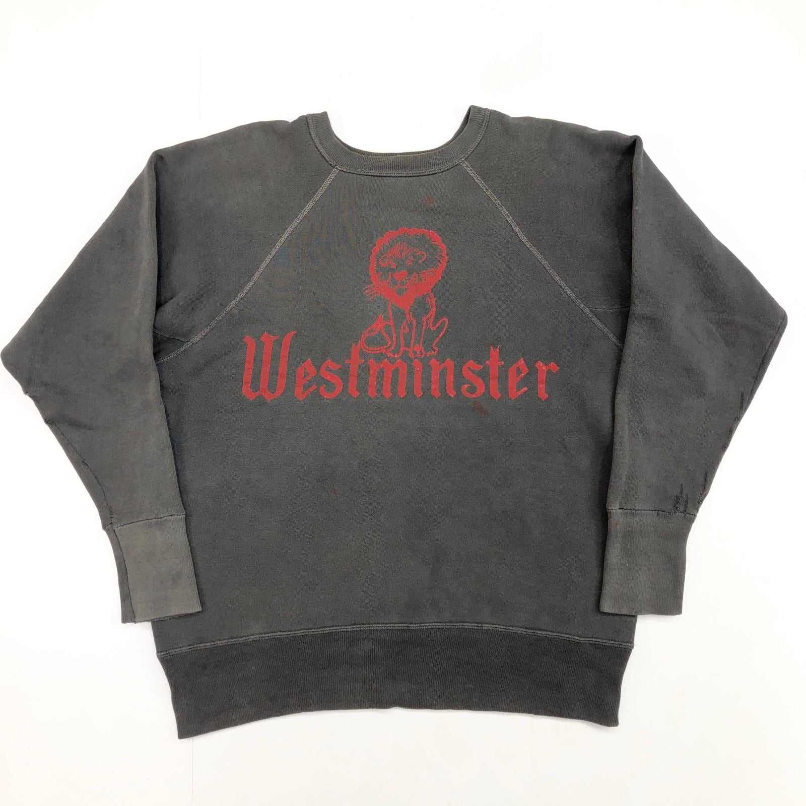 UNKNOWN 60年代 ラグランスウェット WESTMINSTER LION フロッキープリント 脇下ガゼット グレー フェードブラック メンズ ML 位 タグなし