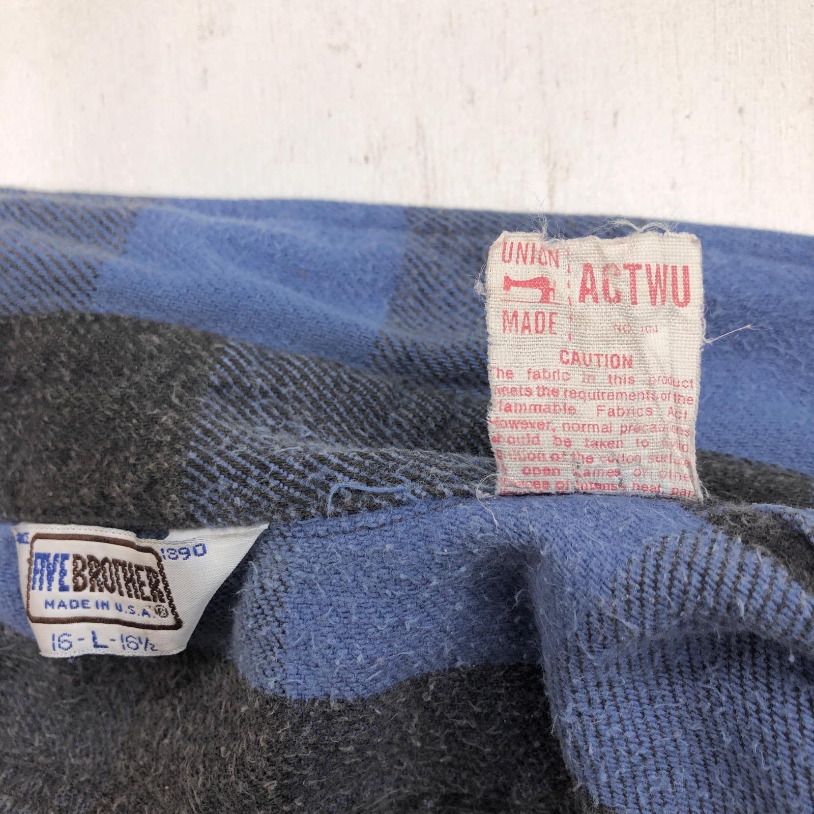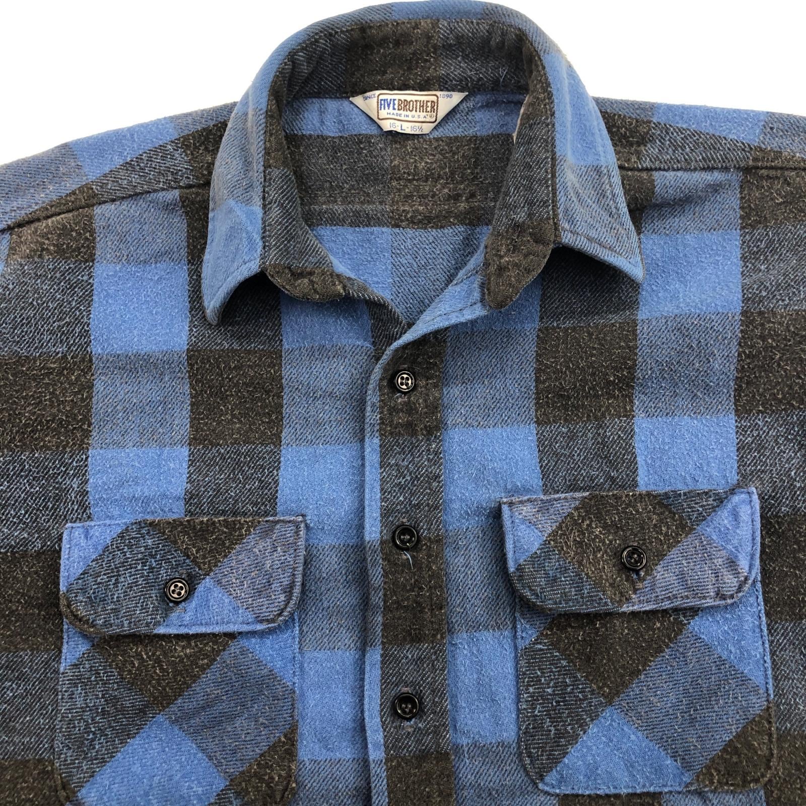 FIVE BROTHER ファイブブラザー 70- 80年代 USA製 ヘビーネル ヘビー フランネル シャツ バッファローチェック ワークシャツ ブルー タグ 表記 L