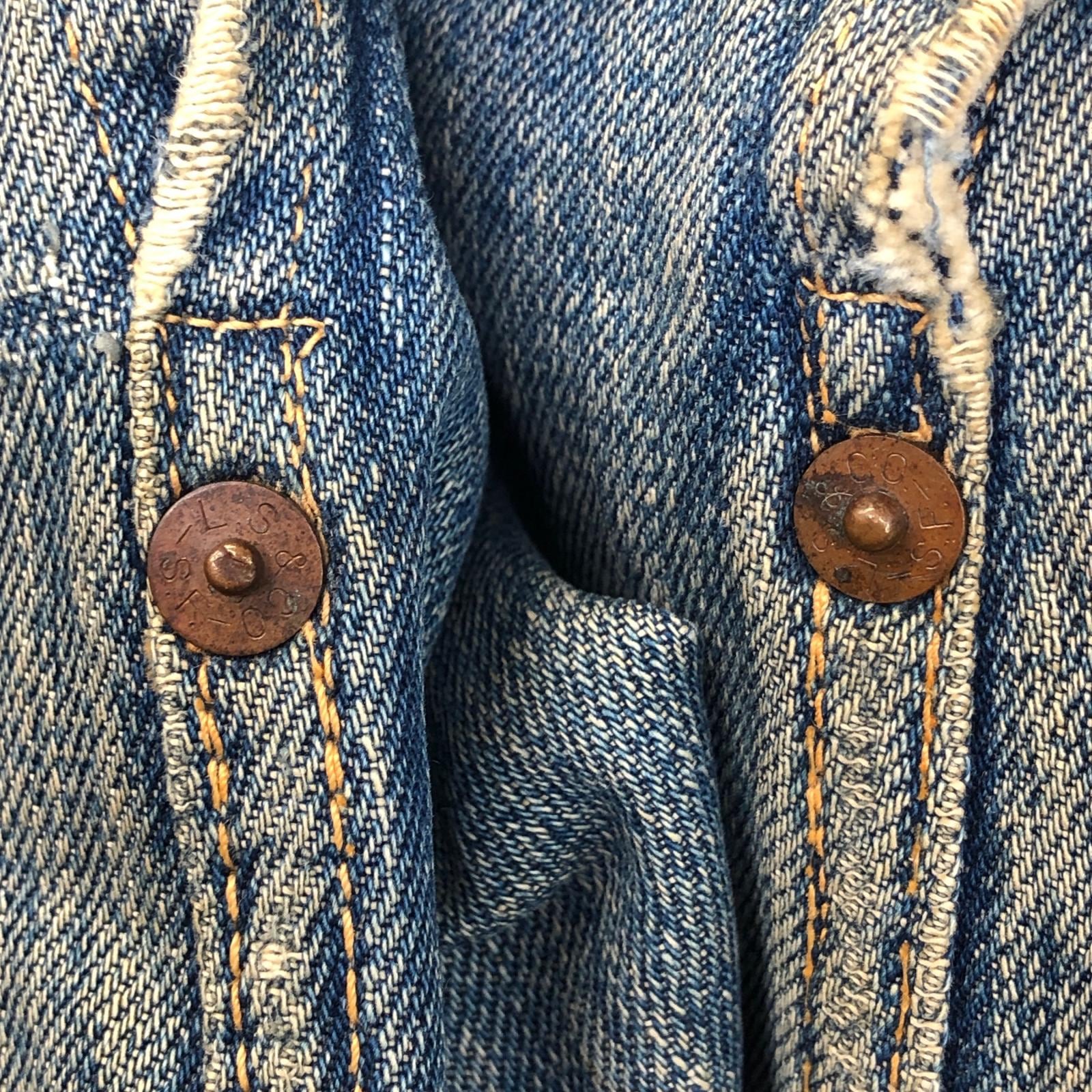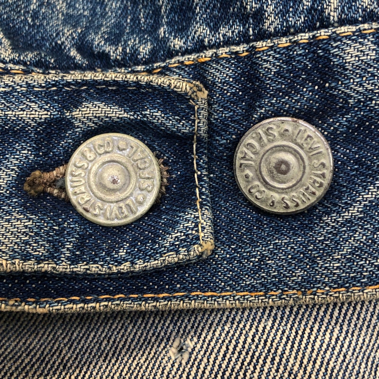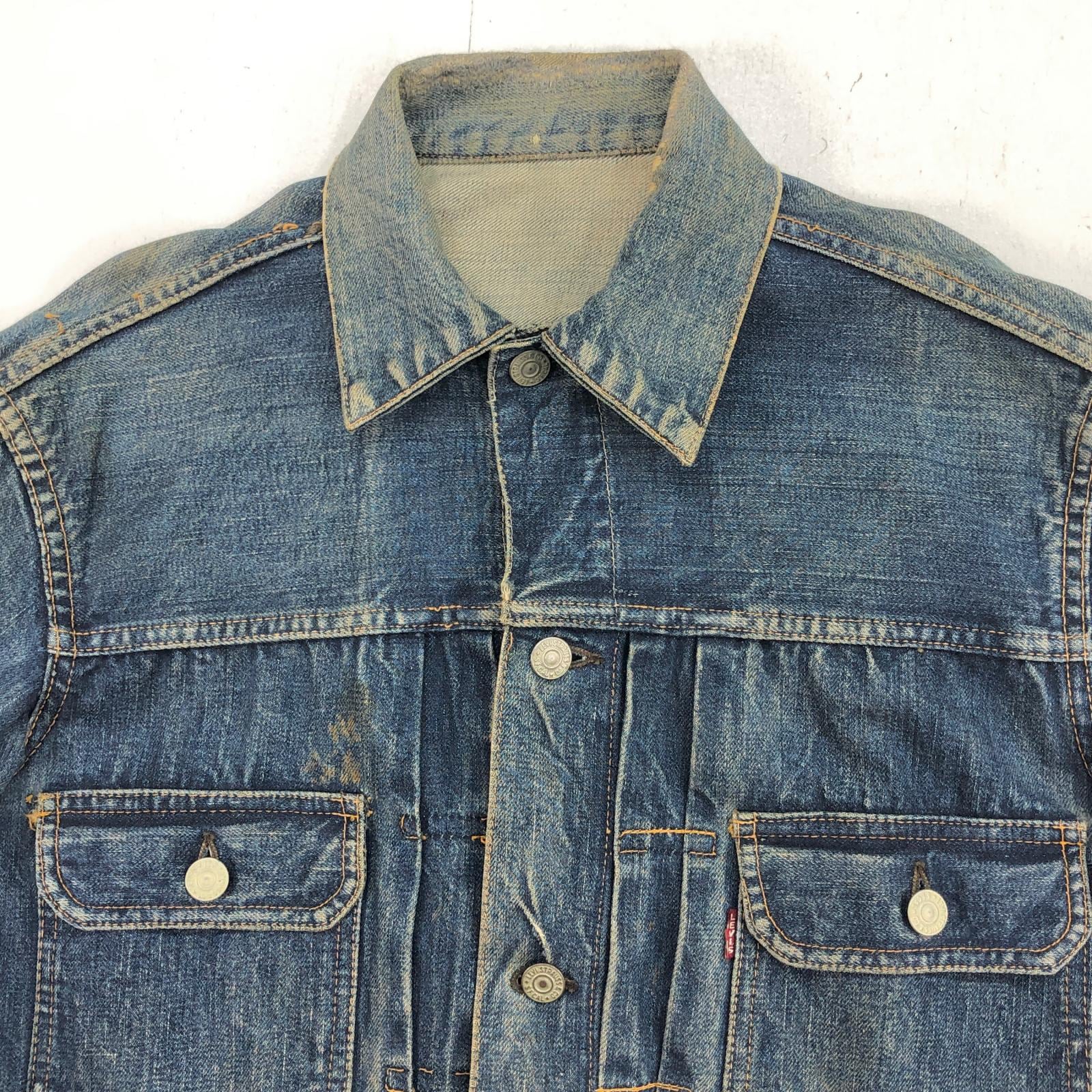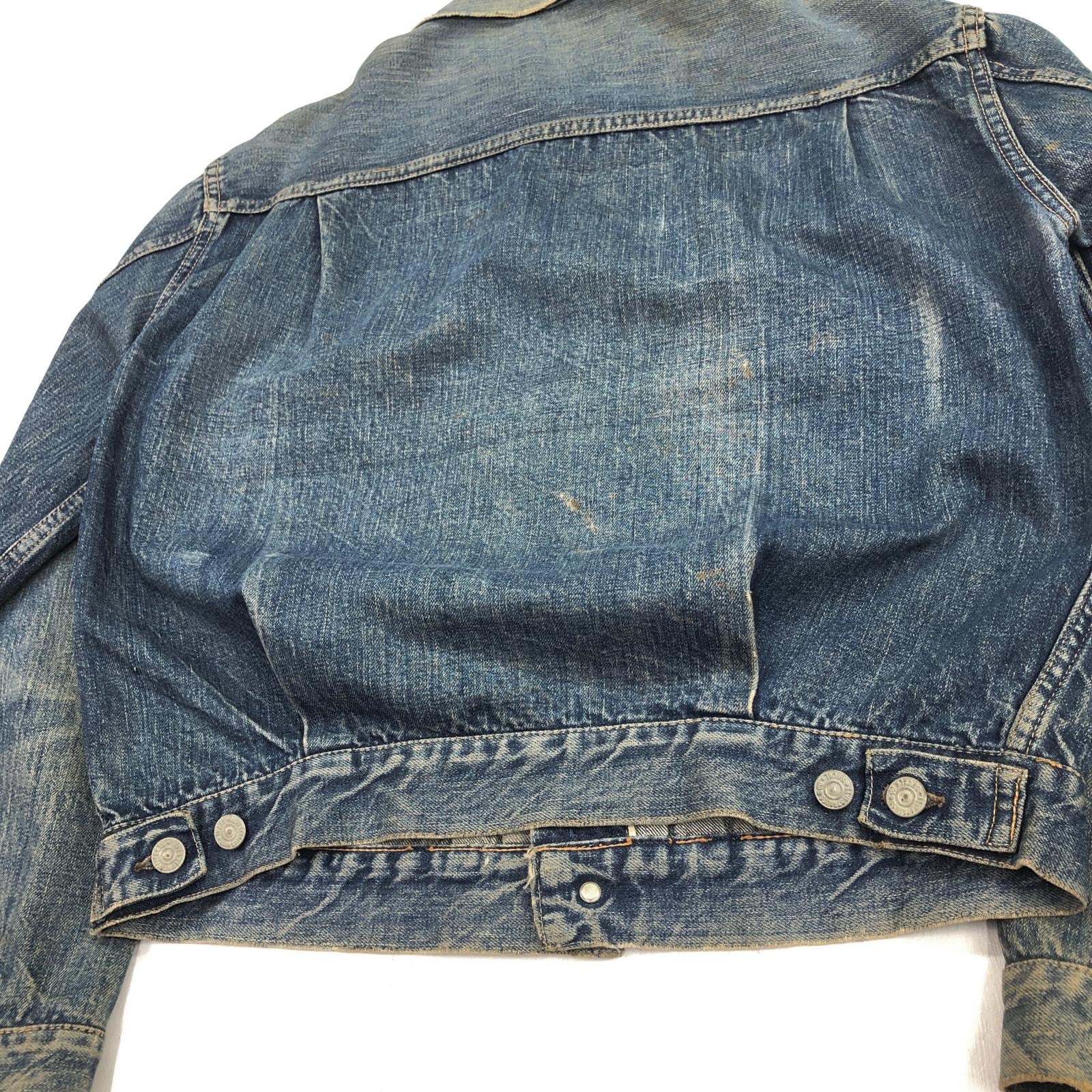 LEVI'S リーバイス 507XX 50年代 デニムジャケット 2nd トラッカージャケット 両面タブ おそらく革パッチ最終期 鉄製リベット L字ステッチ ドット刻印 サイドハギなし ブルー 40 位 長袖