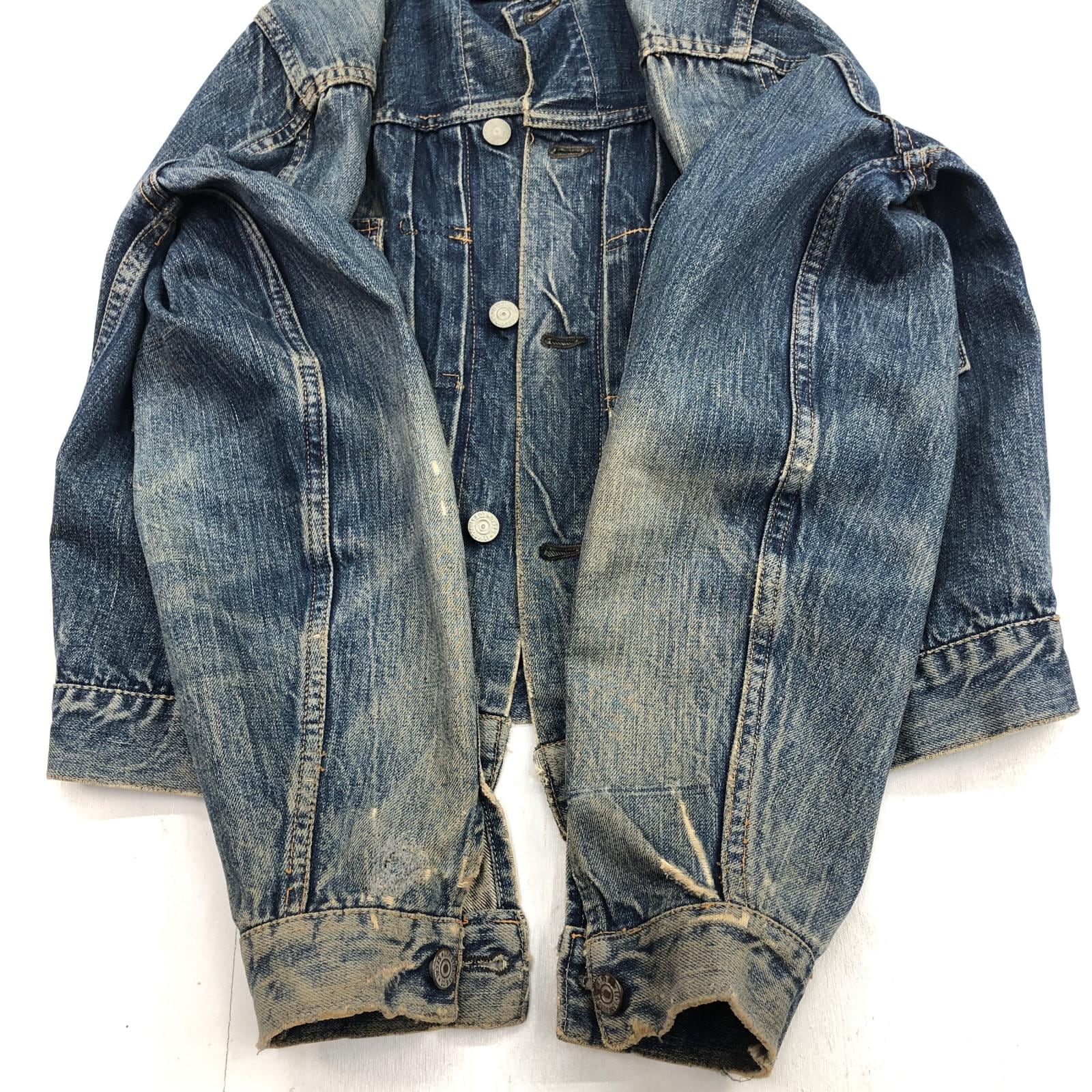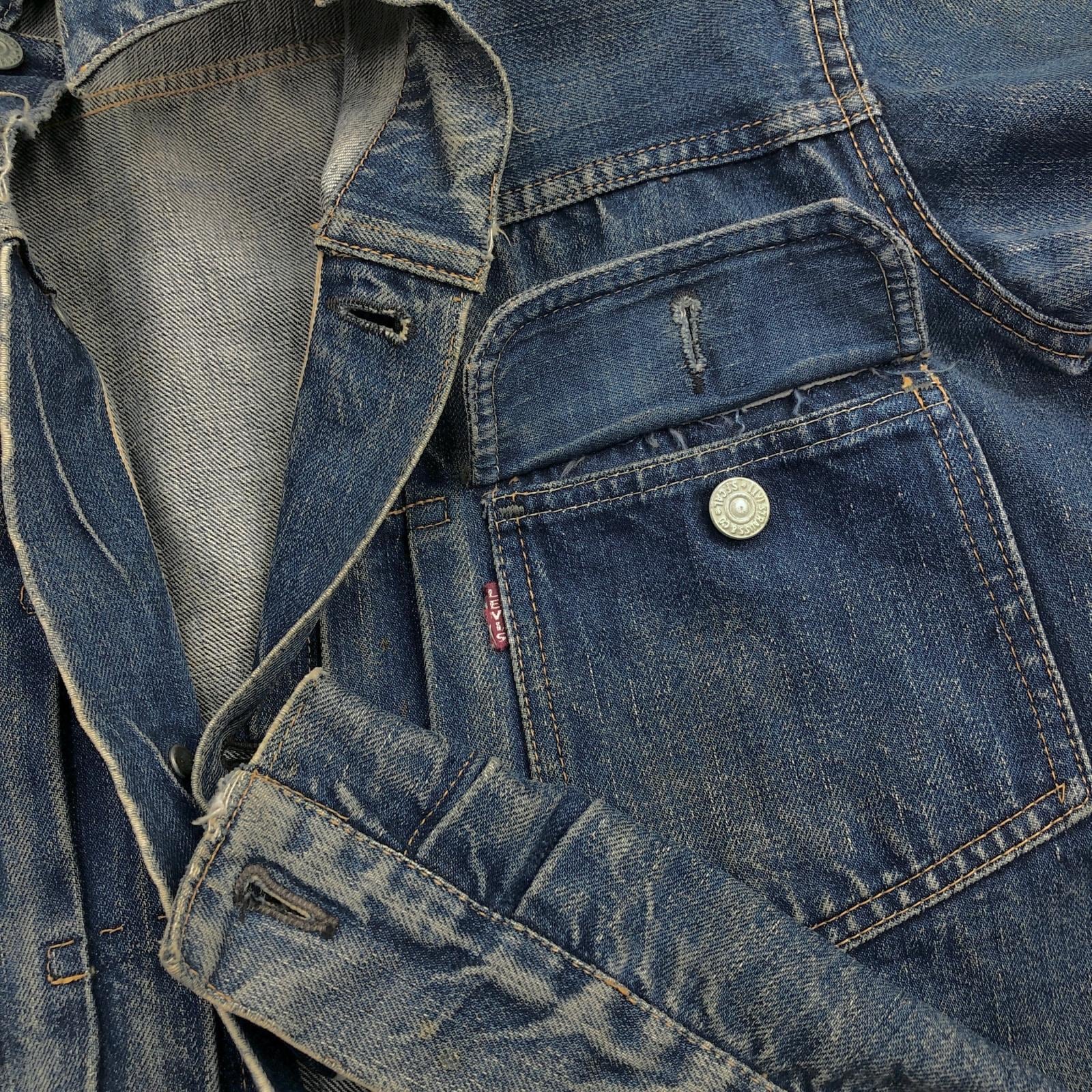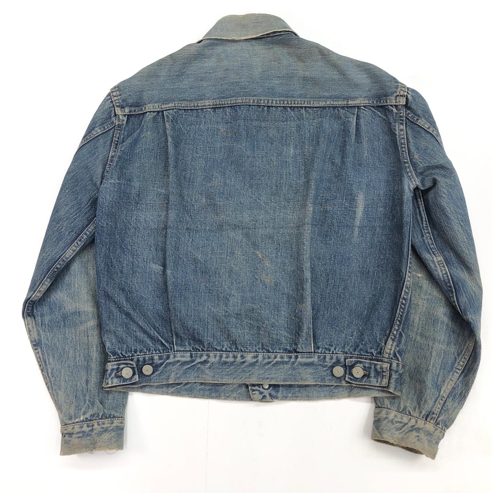 LEVI'S リーバイス 507XX 50年代 デニムジャケット 2nd トラッカージャケット 両面タブ おそらく革パッチ最終期 鉄製リベット L字ステッチ ドット刻印 サイドハギなし ブルー 40 位 長袖