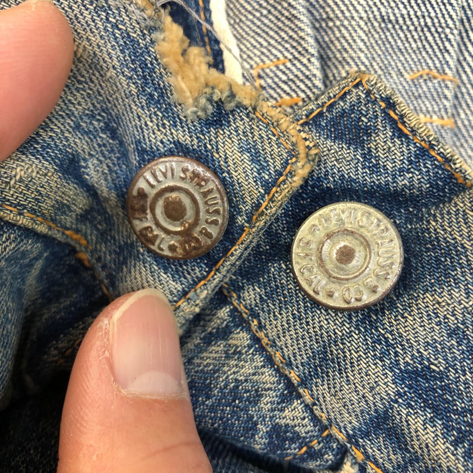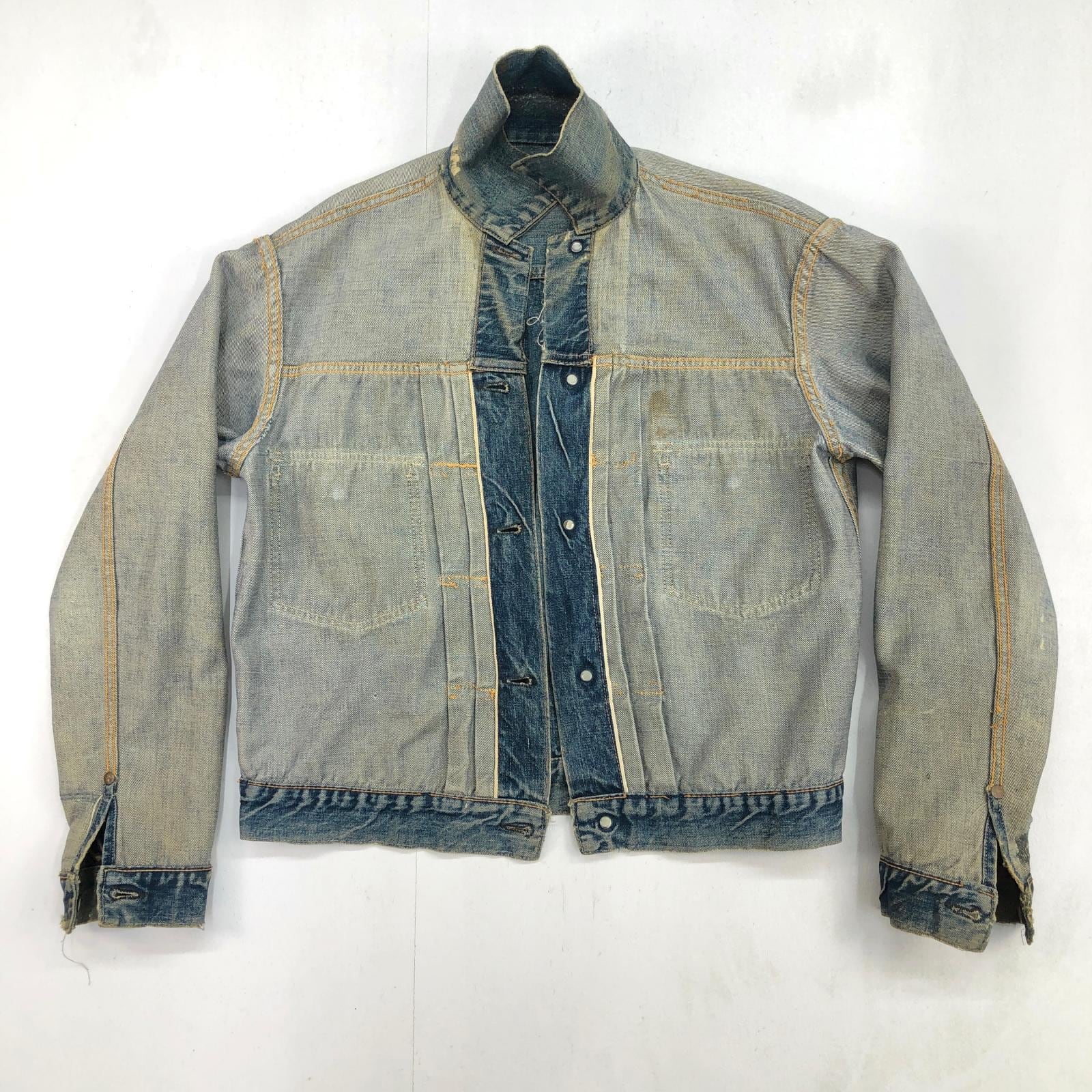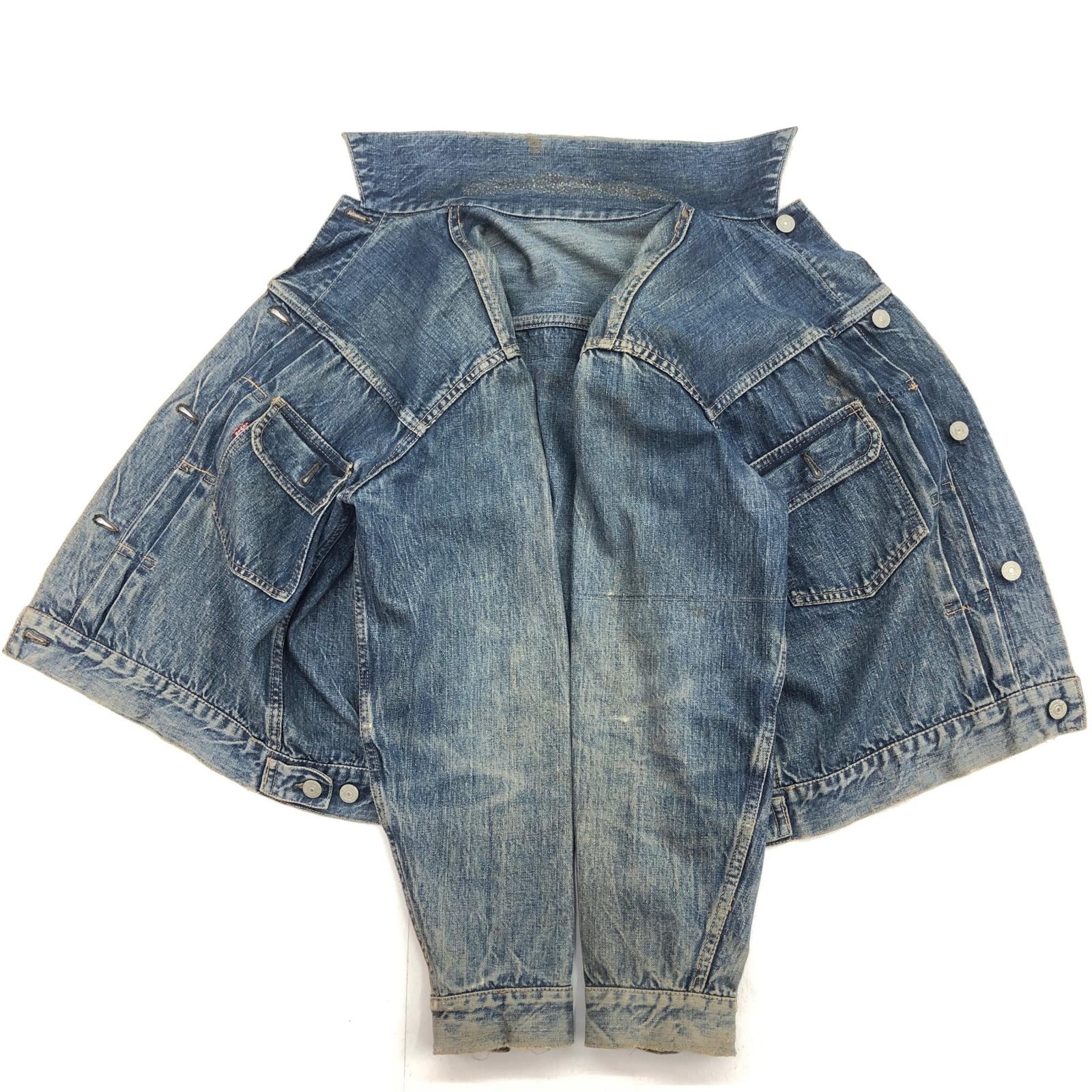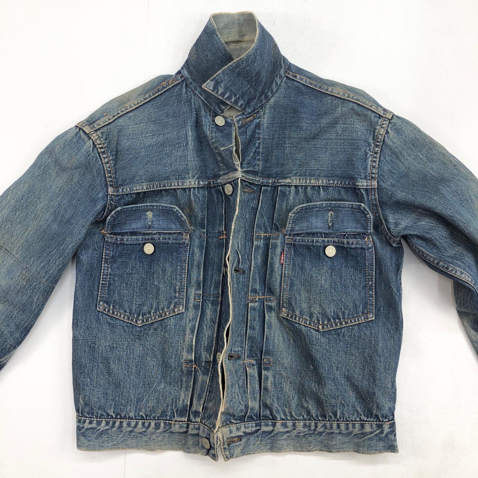 LEVI'S リーバイス 507XX 50年代 デニムジャケット 2nd トラッカージャケット 両面タブ おそらく革パッチ最終期 鉄製リベット L字ステッチ ドット刻印 サイドハギなし ブルー 40 位 長袖