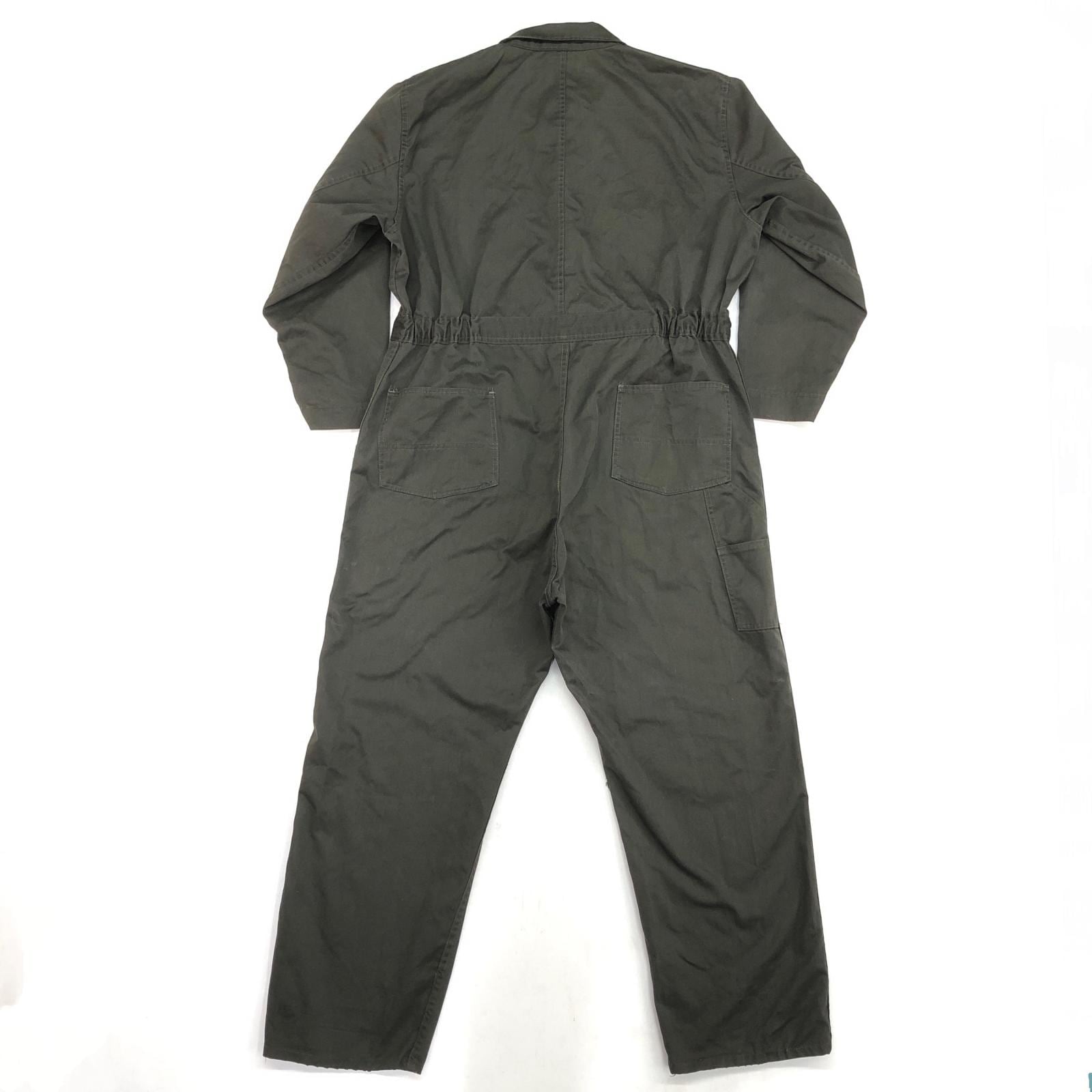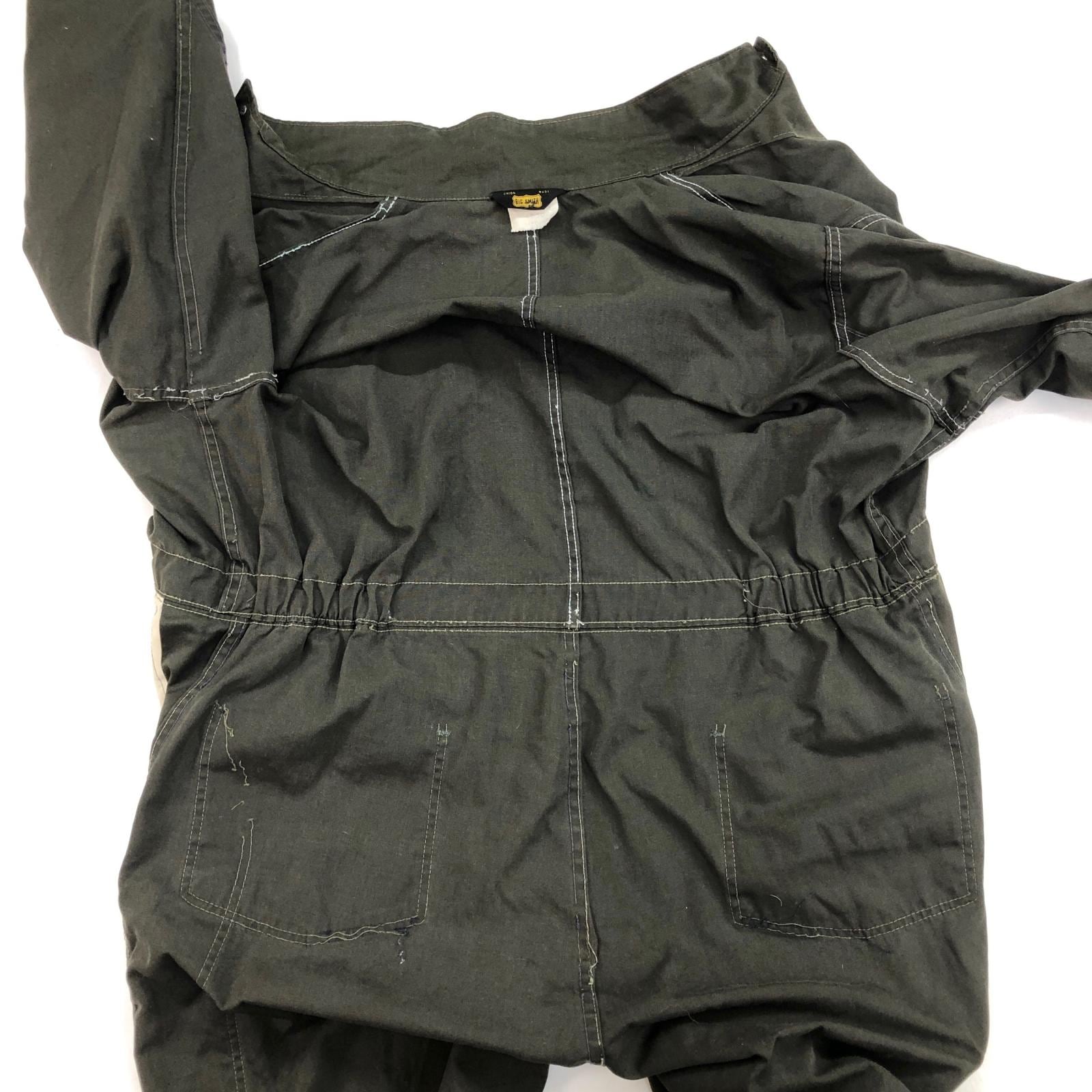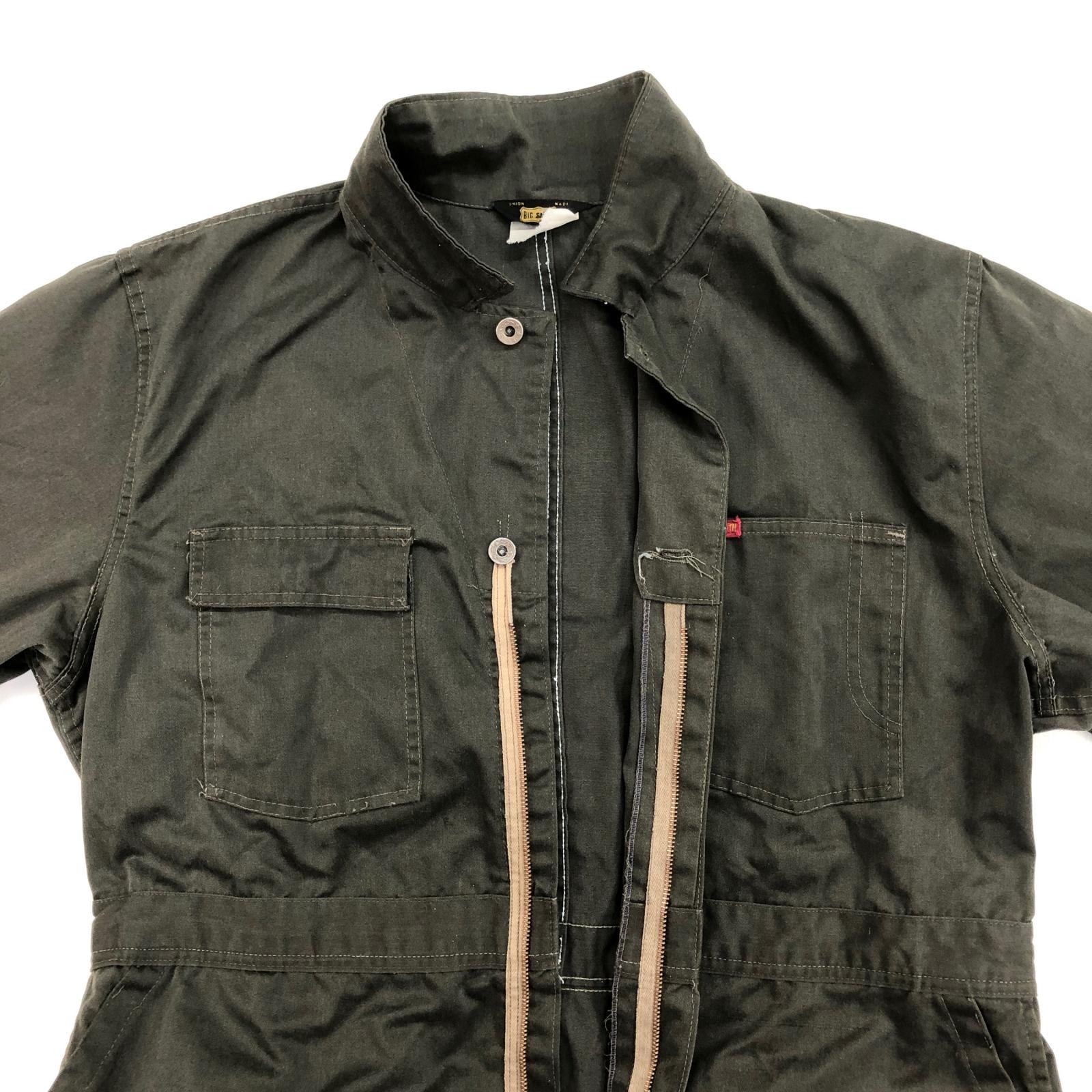 BIG SMITH ビッグスミス 70年代 USA製 黒タグ 三角タグ 月桂樹ボタン つなぎ オールインワン ダークオリーブ タグ 表記 48 -50 MEDIUM 実寸 W42 L29 -30 位 | 古着屋 EAGLEBASE