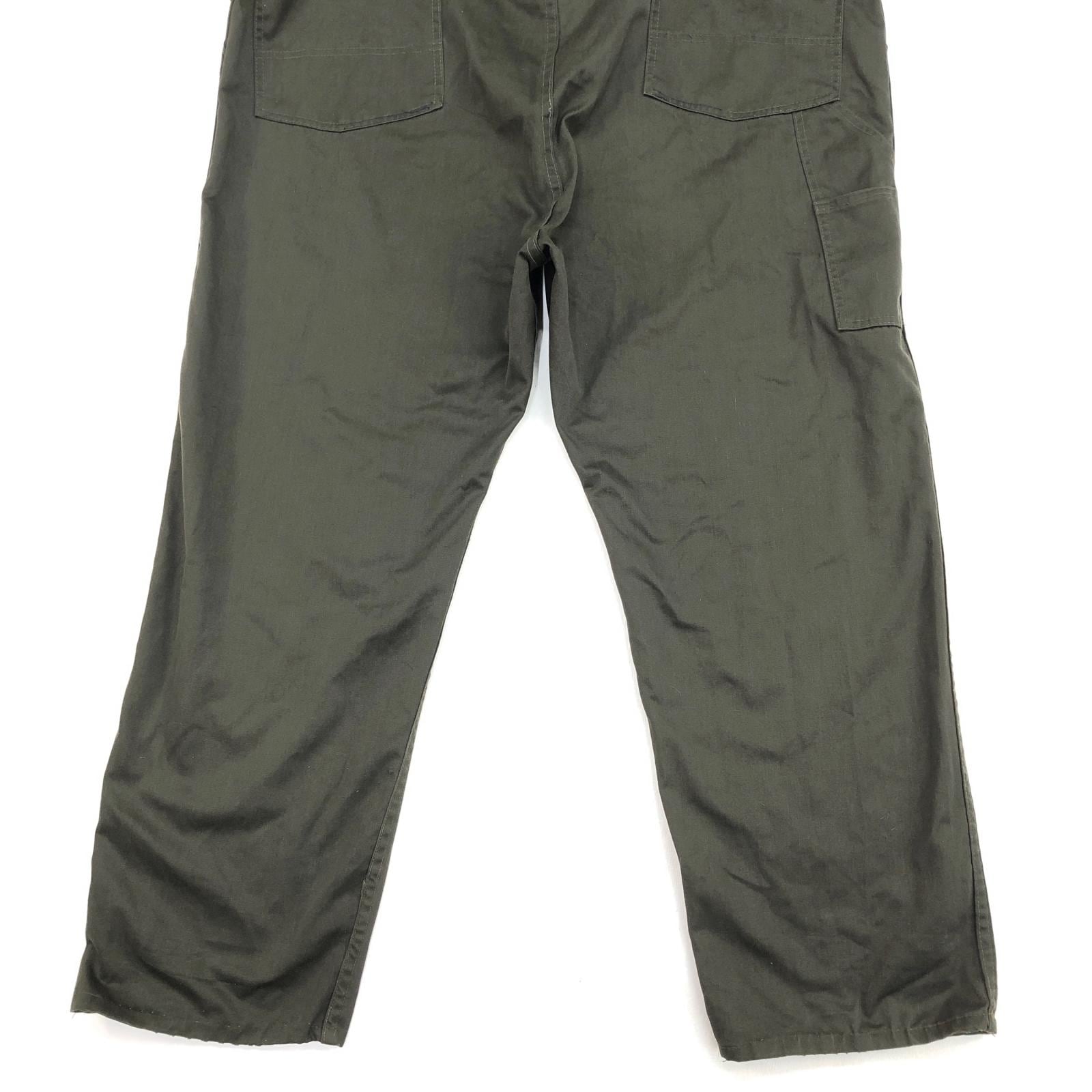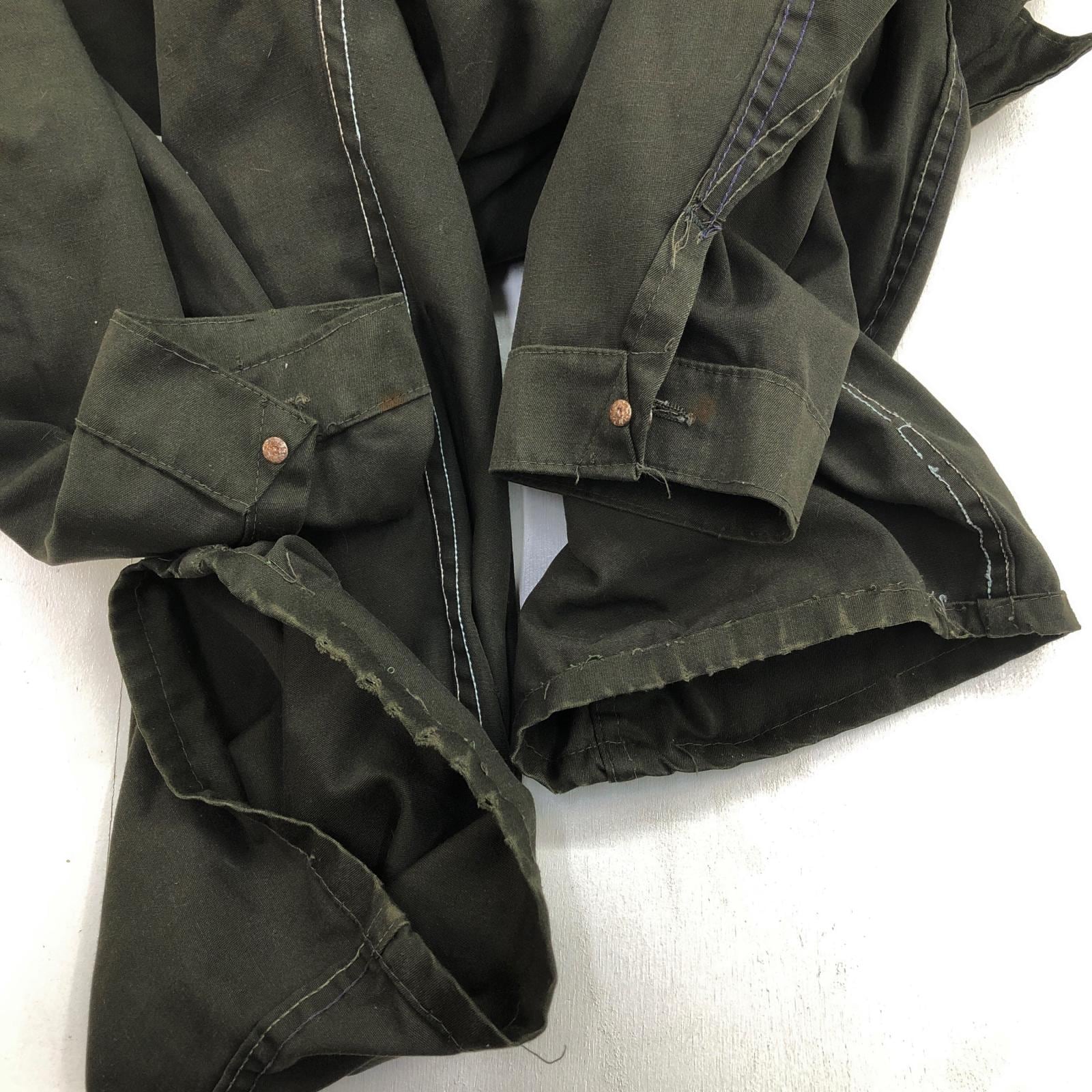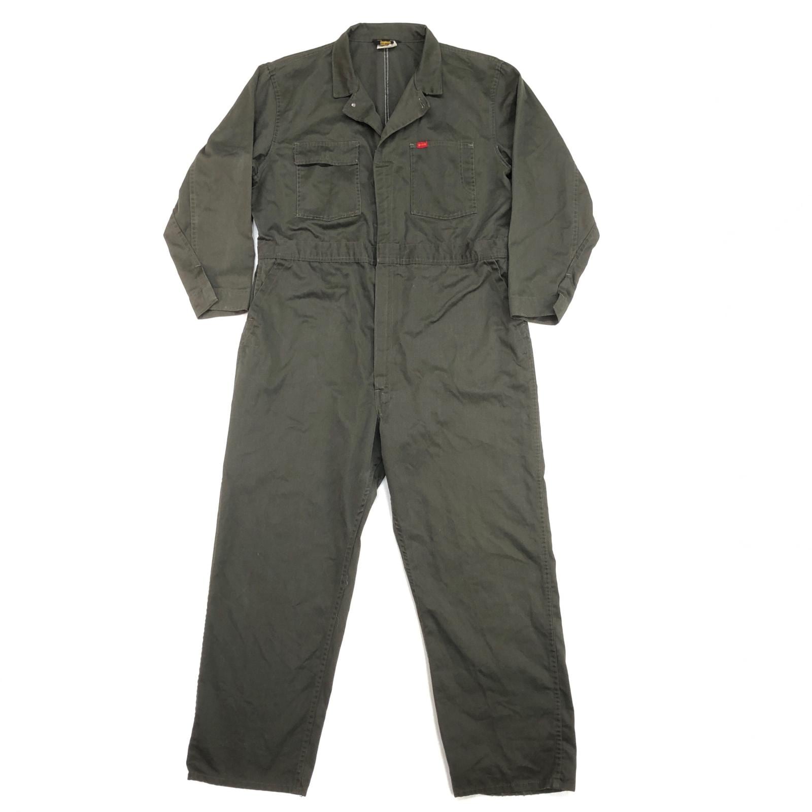 BIG SMITH ビッグスミス 70年代 USA製 黒タグ 三角タグ 月桂樹ボタン つなぎ オールインワン ダークオリーブ タグ 表記 48 -50 MEDIUM 実寸 W42 L29 -30 位 | 古着屋 EAGLEBASE