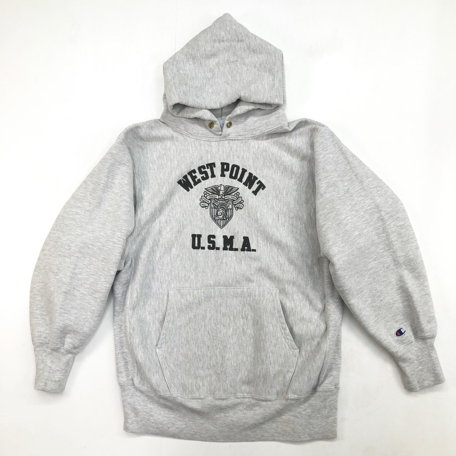 CHAMPION チャンピオン 90年代 USA製 刺繍タグ リバースウィーブ スウェットパーカー フーディー WEST POINT U.S.M.A アメリカ陸軍士官学校 3段プリント タグ 表記 X- LARAGE