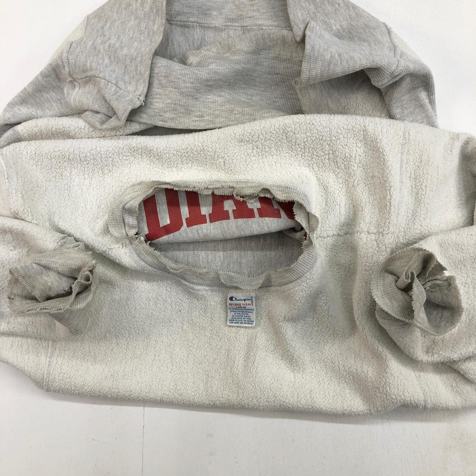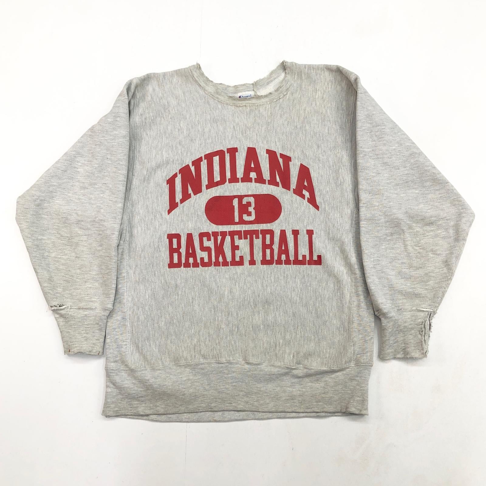CHAMPION チャンピオン 90年代 USA製 刺繍タグ 目無し リバースウィーブ スウェット 3段 カプセル INDIANA BASKETBALL スポーツ チーム プリント ライトアッシュグレー タグ 表記 LARGE | 古着屋 EAGLEBASE