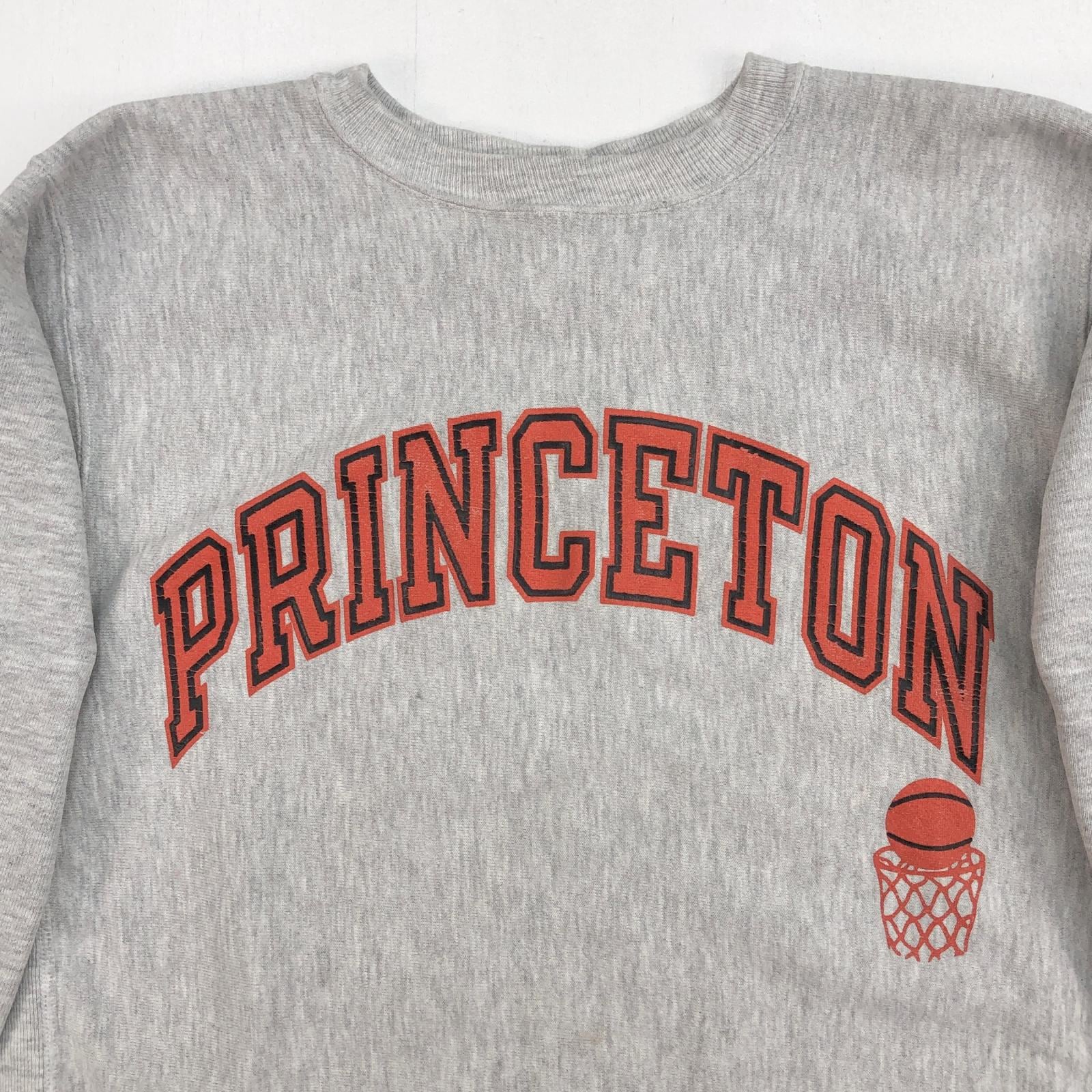 CHAMPION チャンピオン 90年代 刺繍タグ 袖目あり リバースウィーブ アーチプリント PRINCETON TIGERS MEN'S BASKETBALL カレッジプリント バスケットボール チームプリント ライトアッシュグレー タグ 表記 LARGE | 古着屋 EAGLEBASE