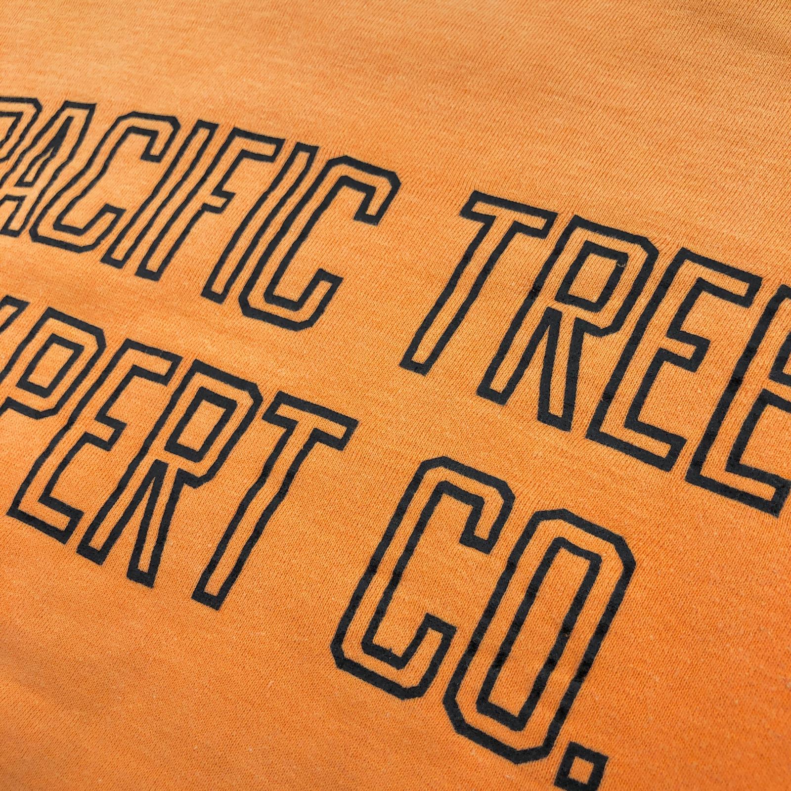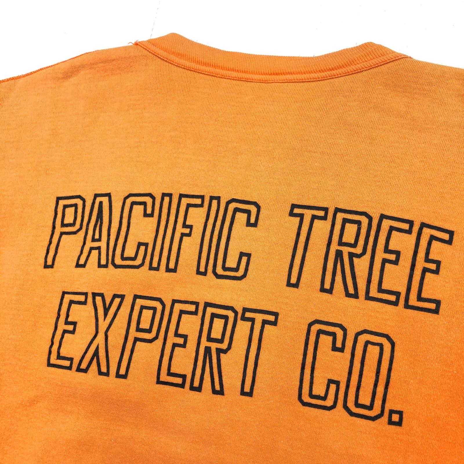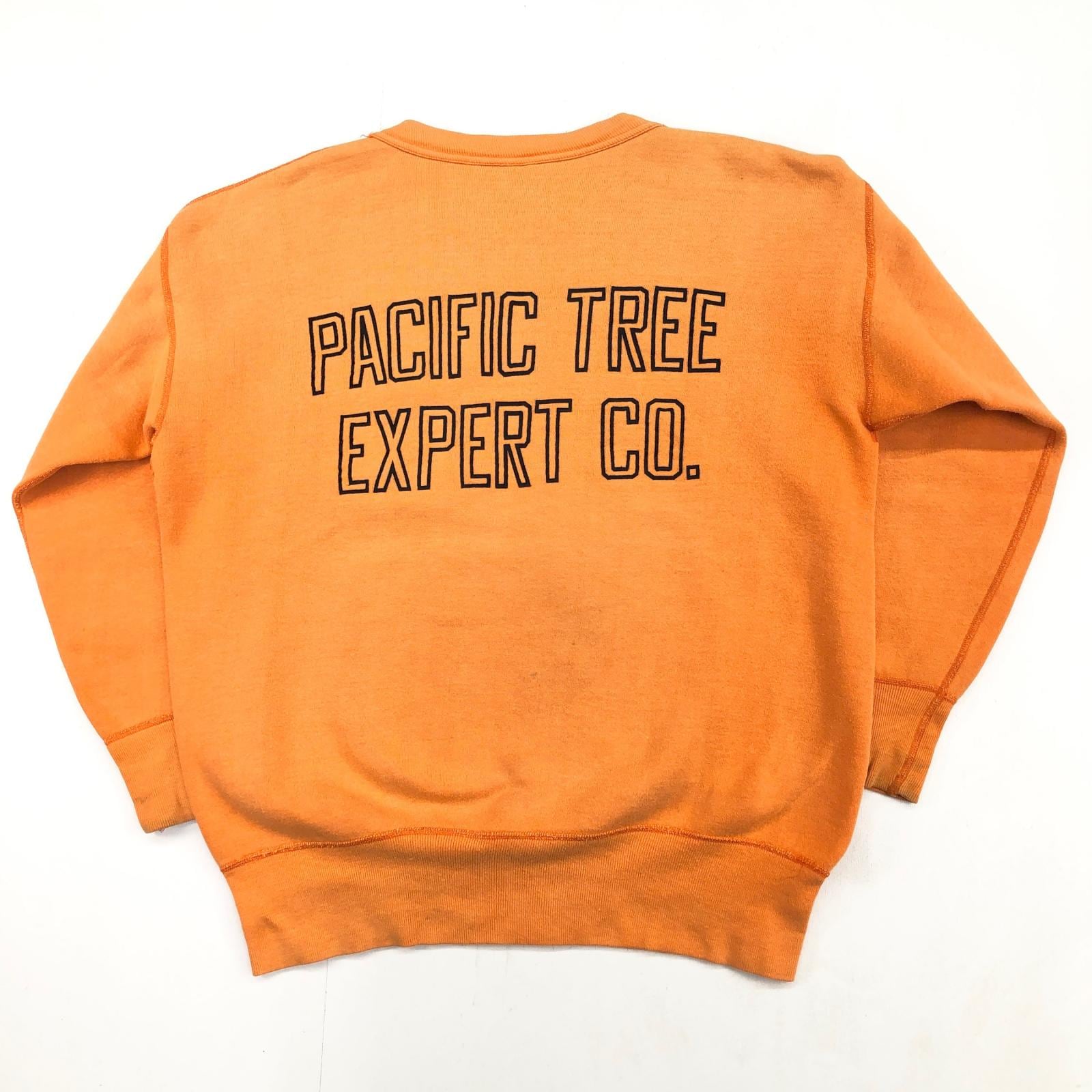 RUSSELL ATHLETIC 60 -70 年代 USA製 貼り付け 前V サイズタグ 後期 スウェット セットインスリーブ 貼り付け パッチポケット PACIFIC TREE EXPERT CO 企業 プリント バックプリント 長リブ フェードオレンジ タグ 表記 XL