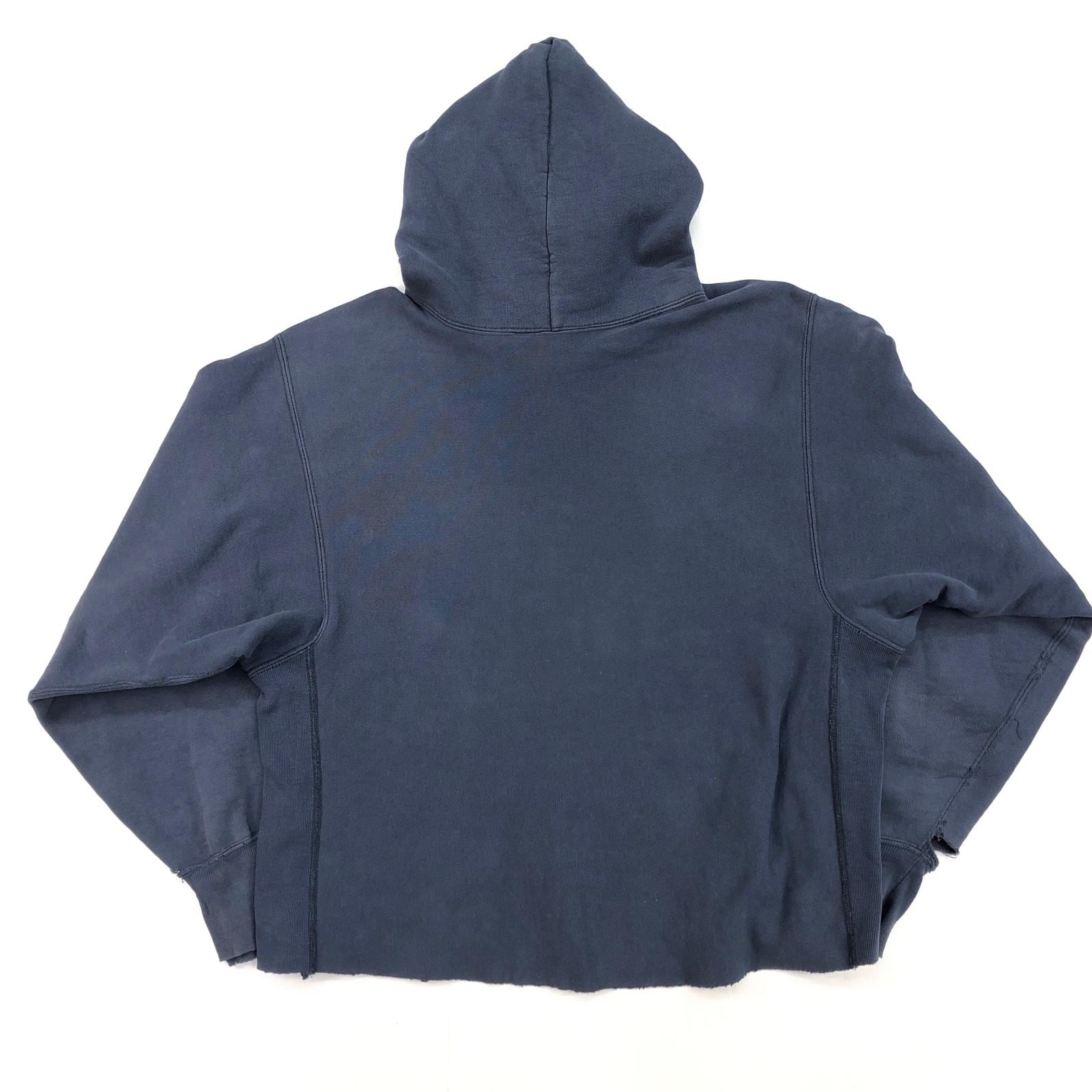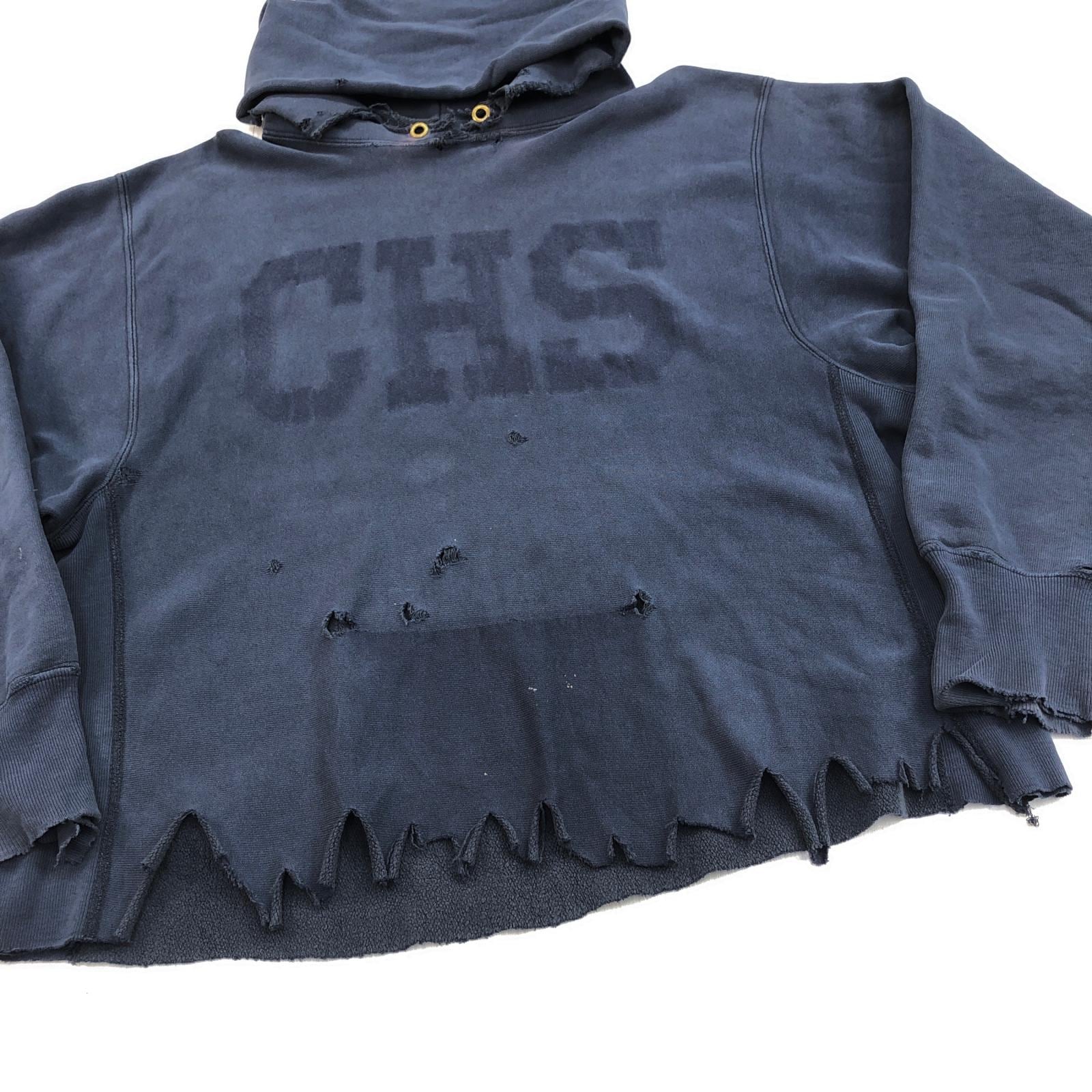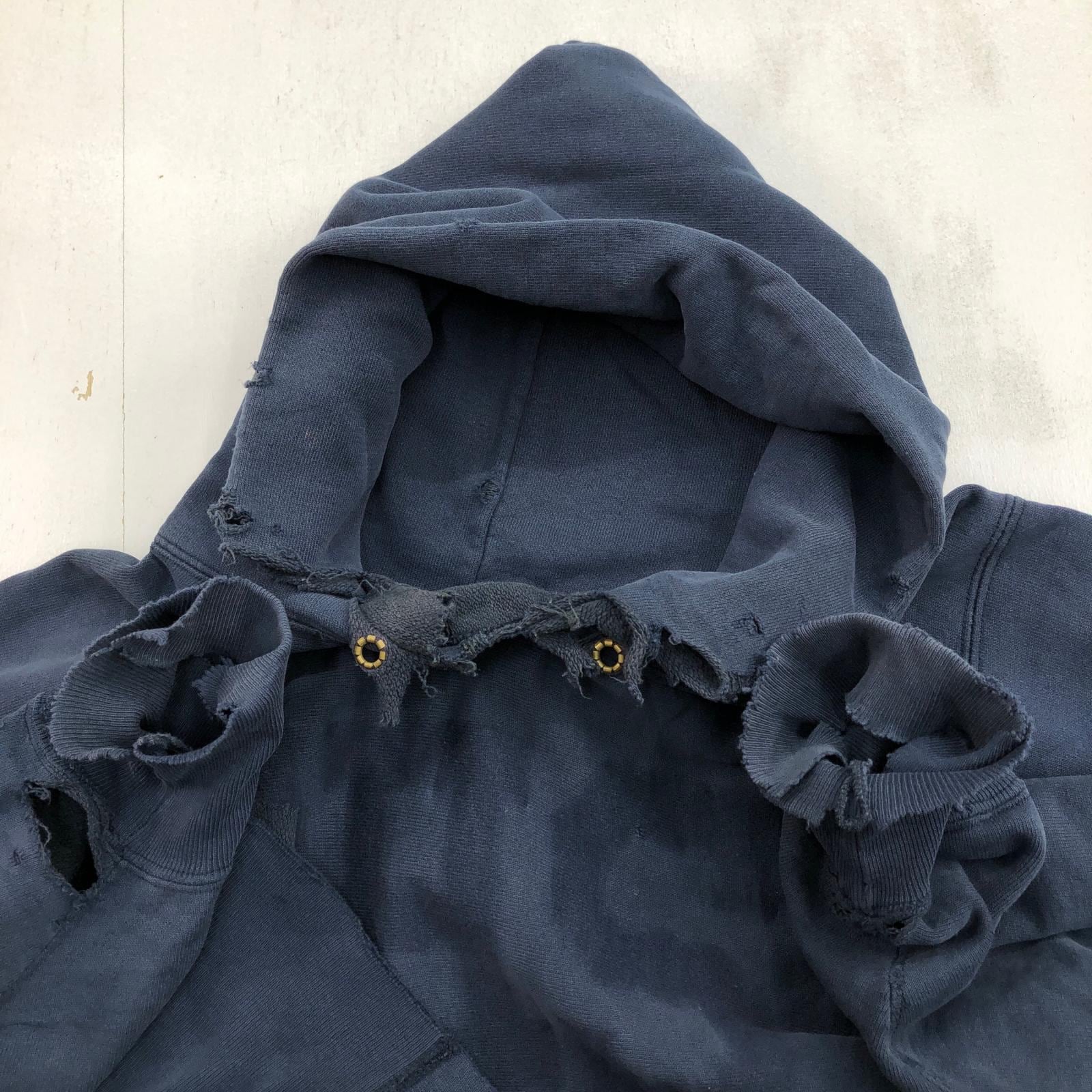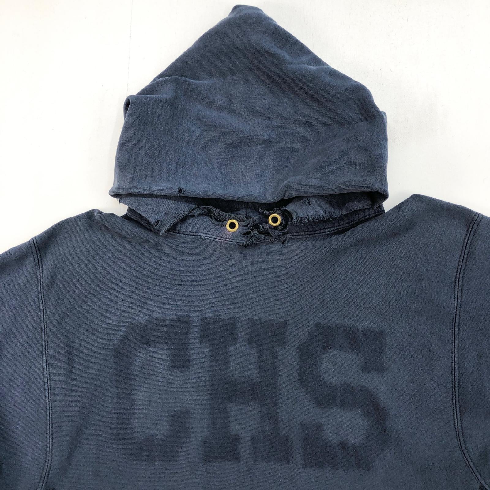 CHAMPION チャンピオン 80年代 USA製 トリコタグ 目なし リメイク ダメージ リバースウィーブ スウェットパーカー フーディー CHS カレッジ パッチアップリケ スウェット ネイビー タグ 表記 XX- LARGE