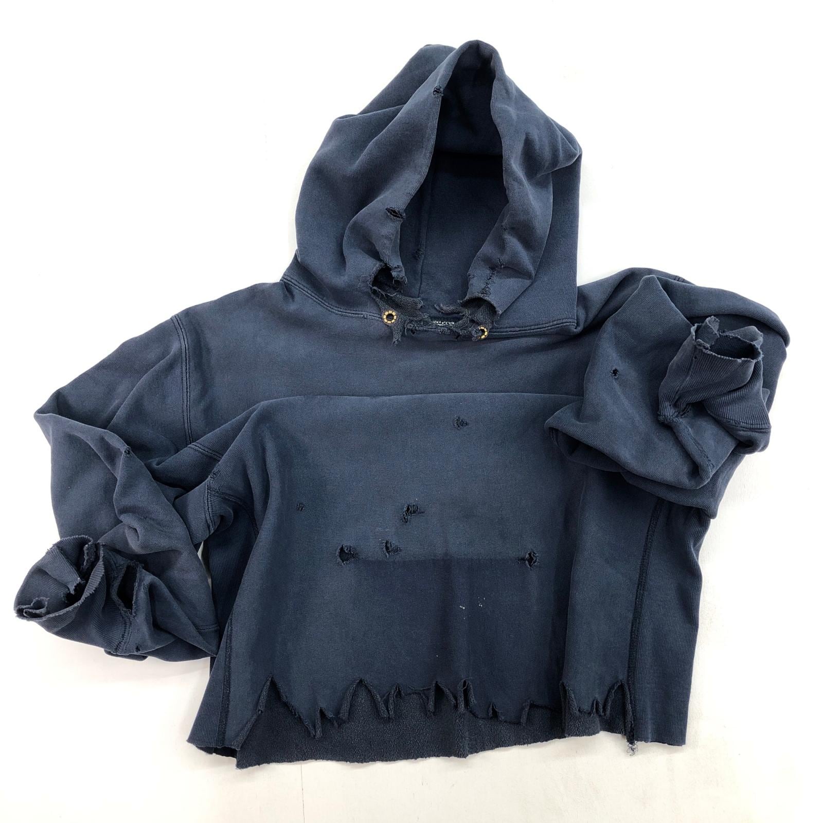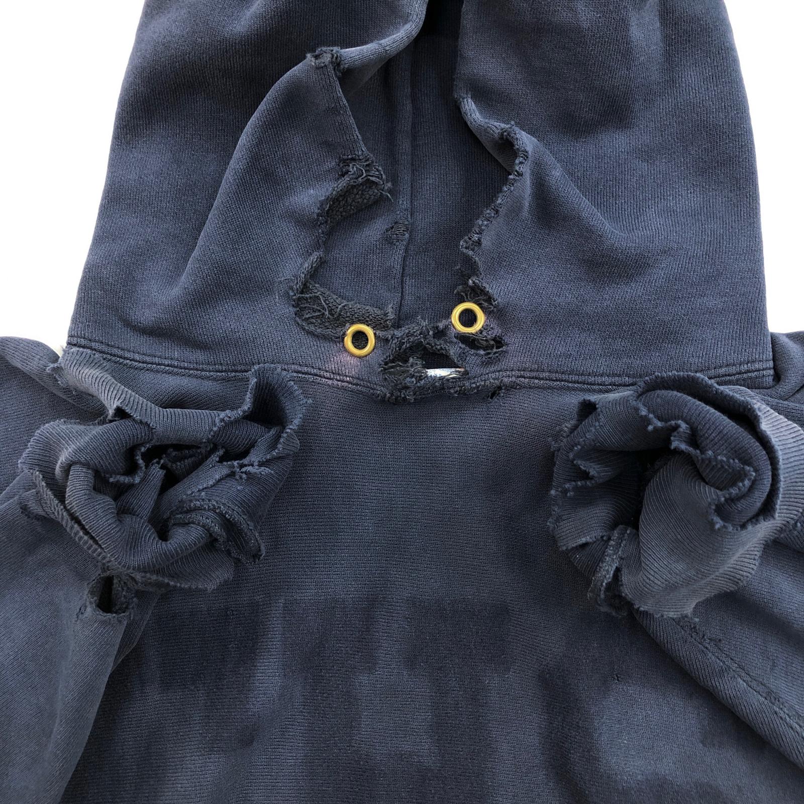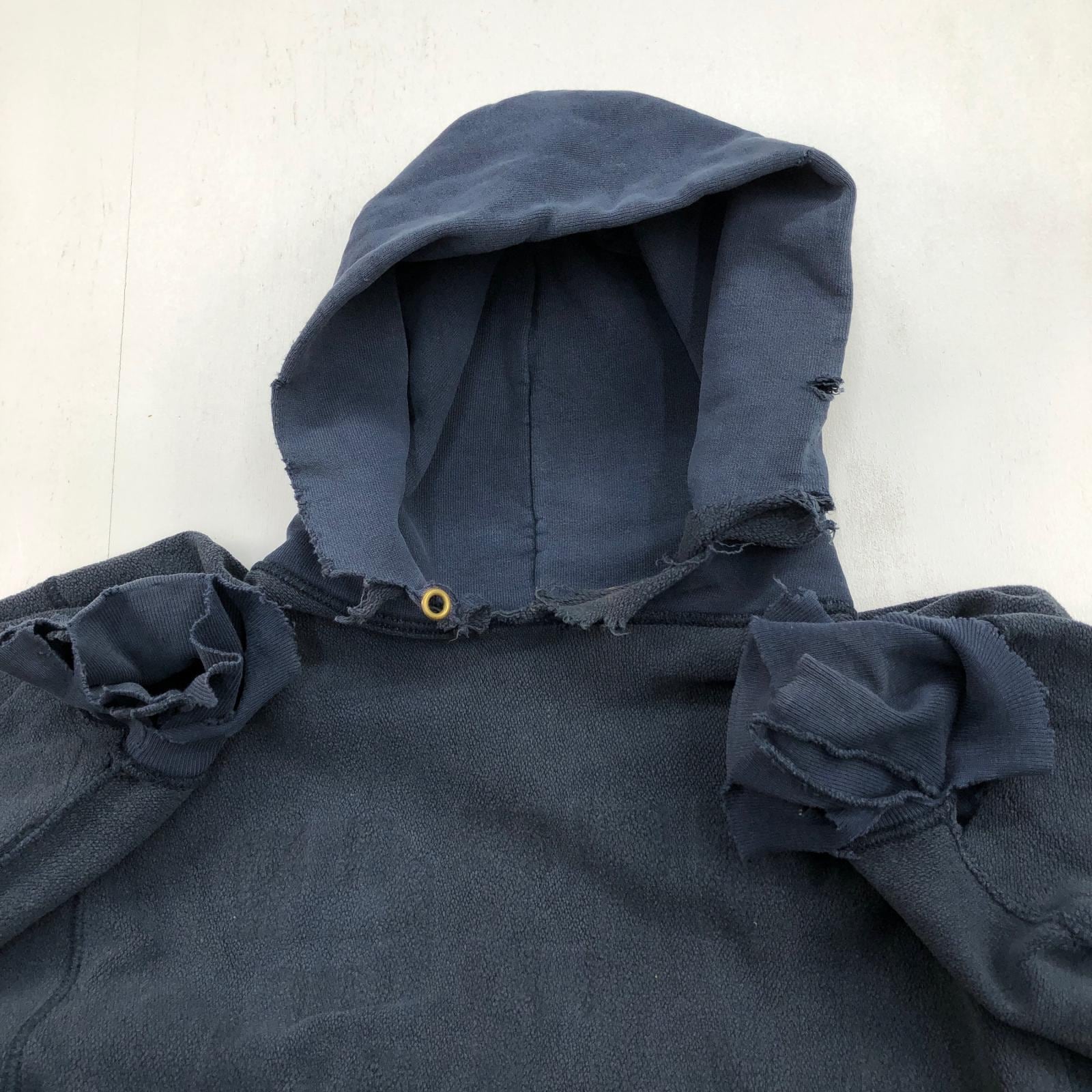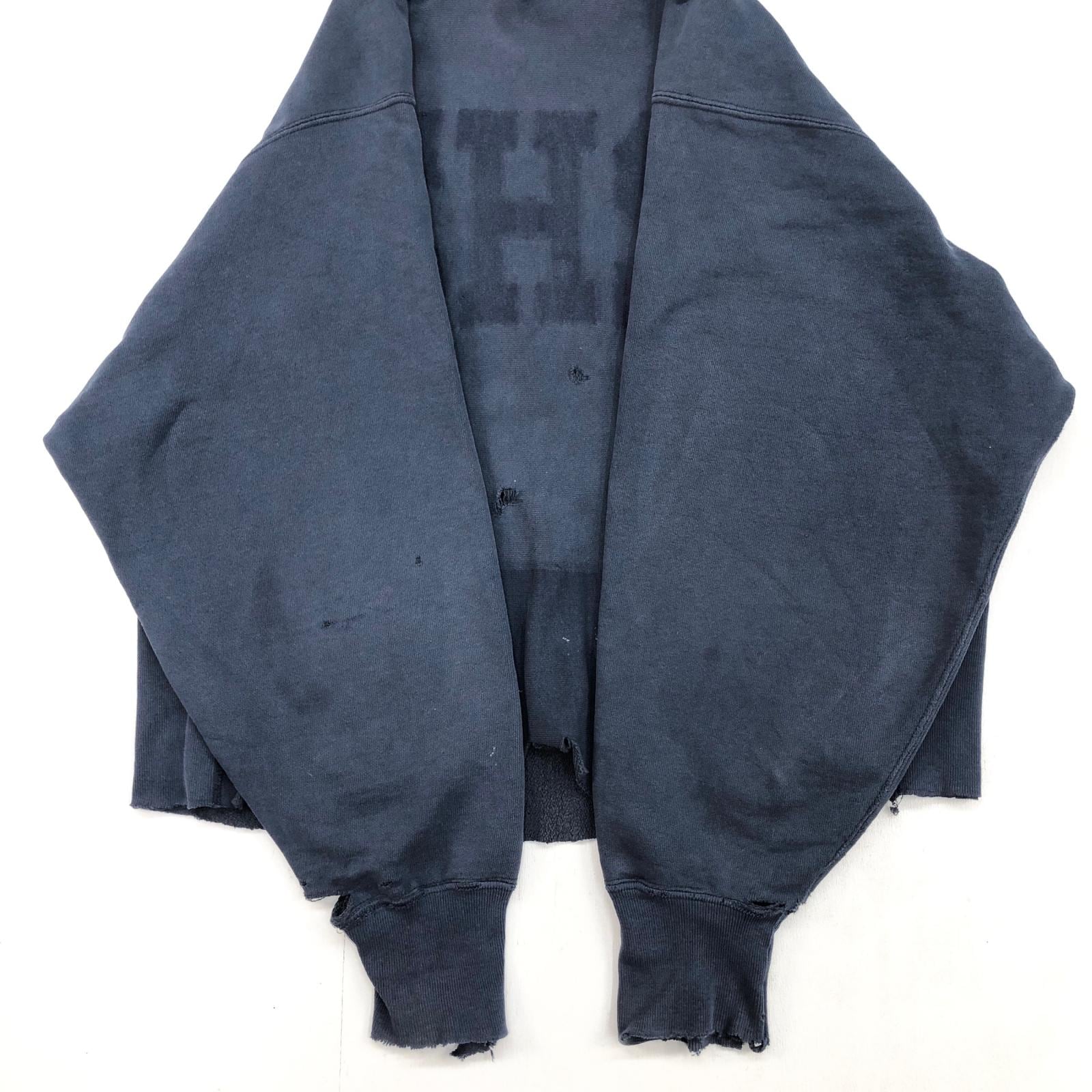 CHAMPION チャンピオン 80年代 USA製 トリコタグ 目なし リメイク ダメージ リバースウィーブ スウェットパーカー フーディー CHS カレッジ パッチアップリケ スウェット ネイビー タグ 表記 XX- LARGE