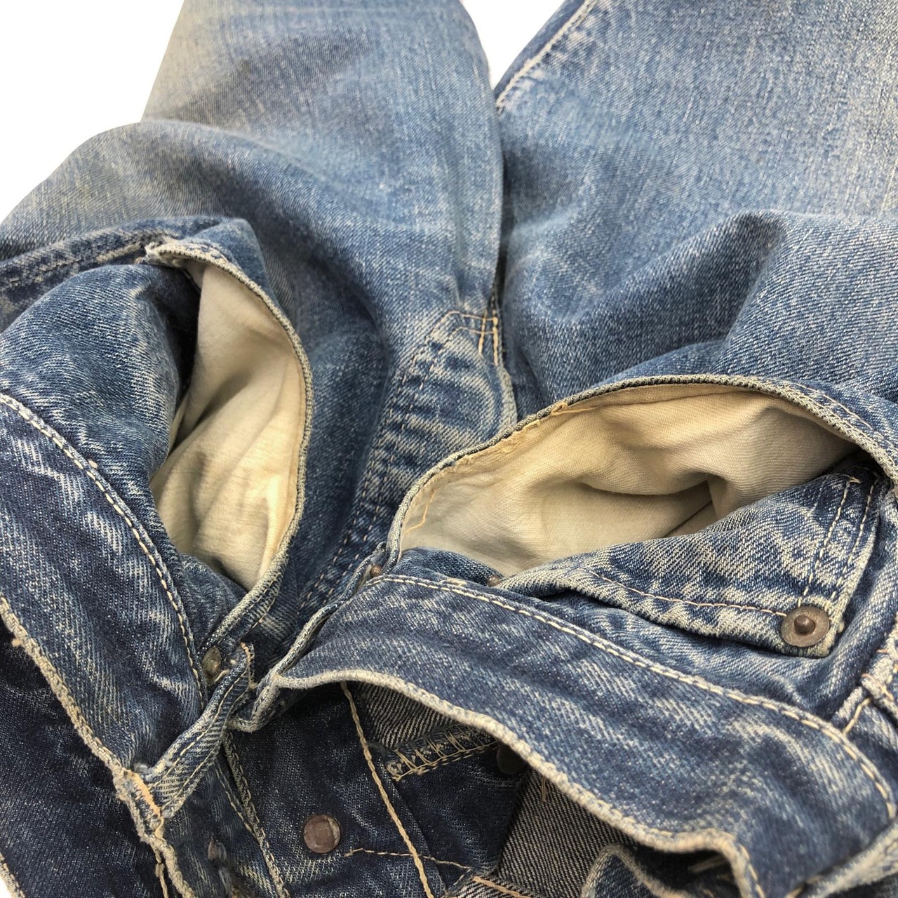 股裏側ステッチ飛びがあり、根元一部貫通してるところがあります
