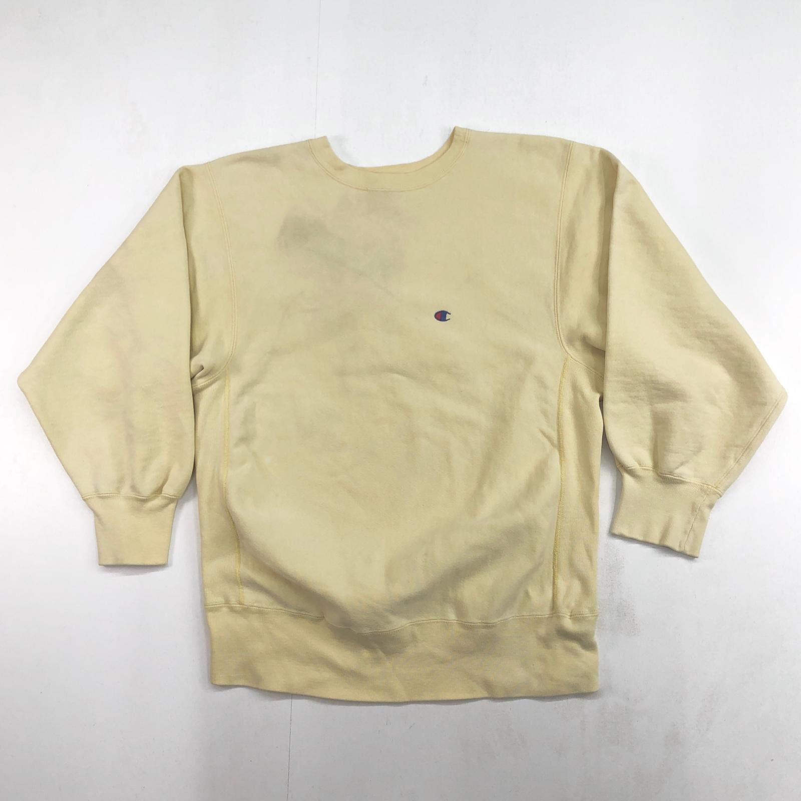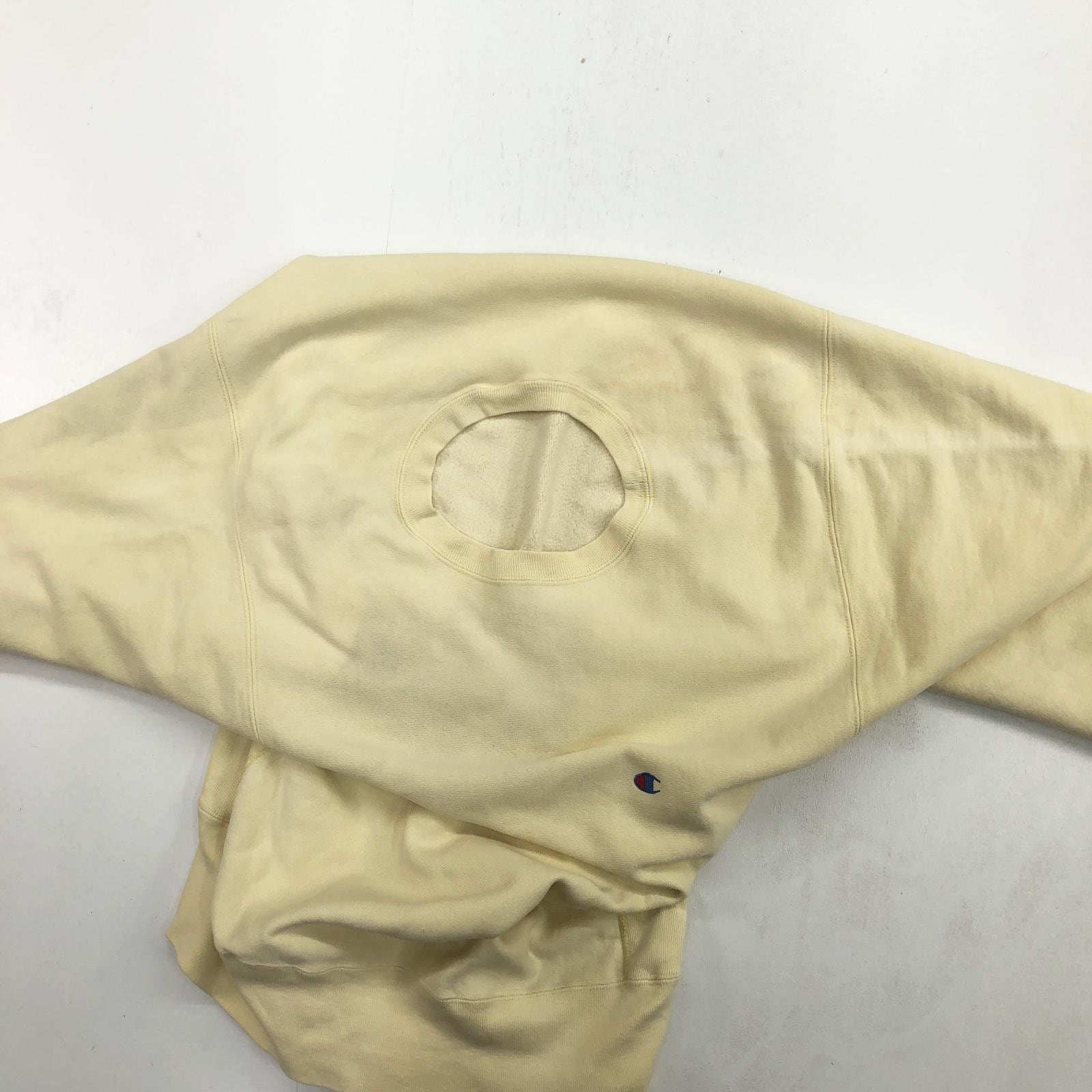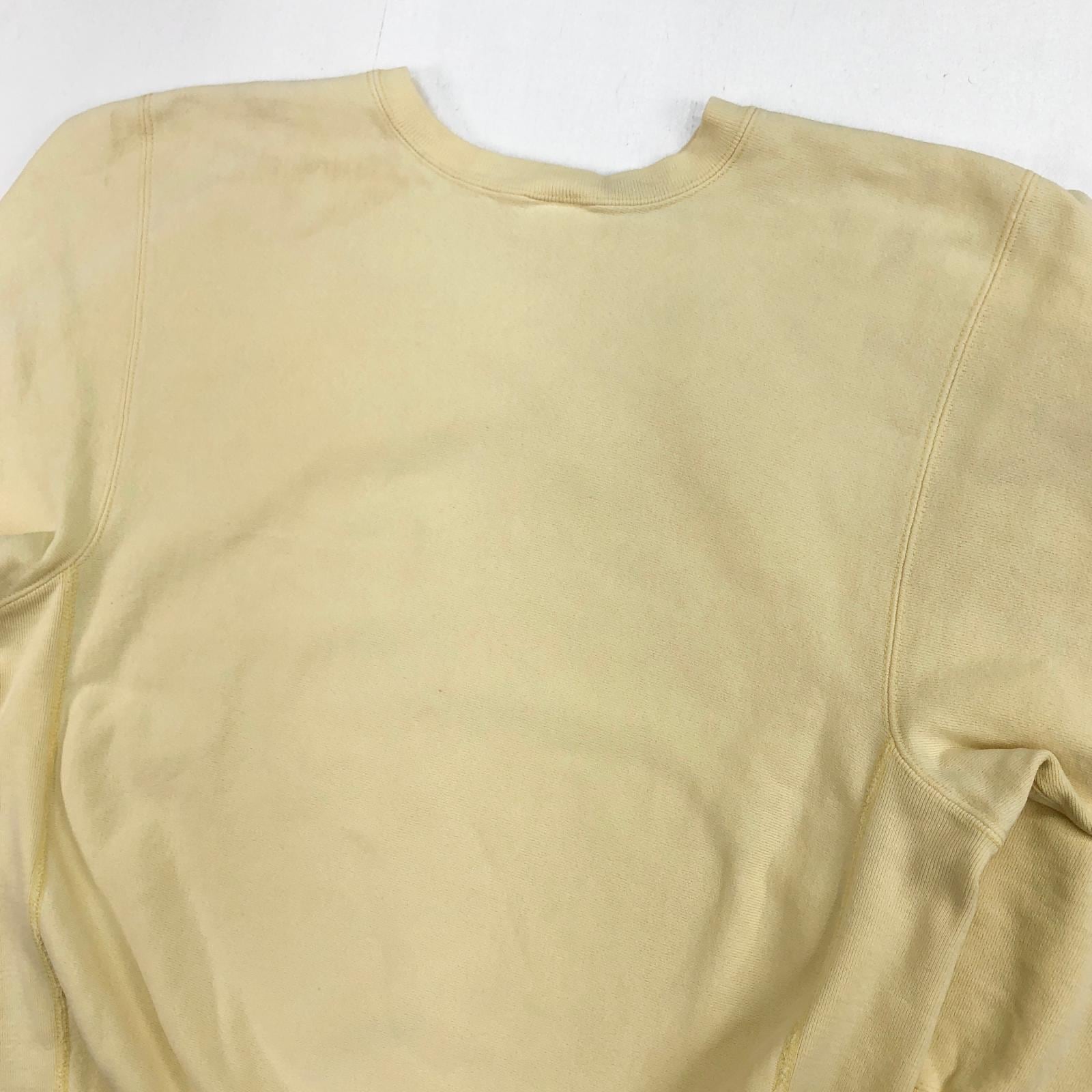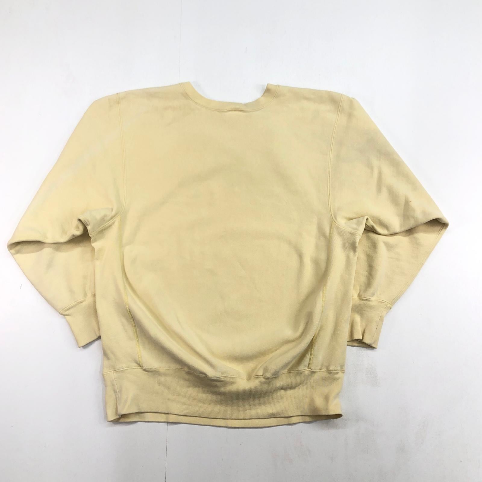 CHAMPION チャンピオン 80年代 USA製 トリコタグ 2枚タグ 胸目あり 袖目なし リバースウィーブ スウェット 無地 プレーン ライトクリームイエロー タグ 表記 X-LARGE