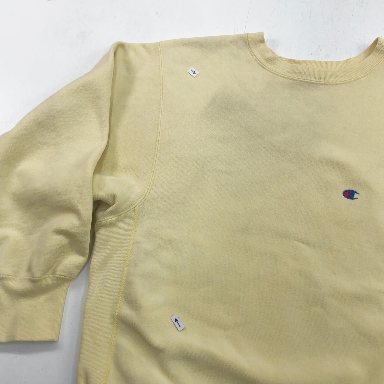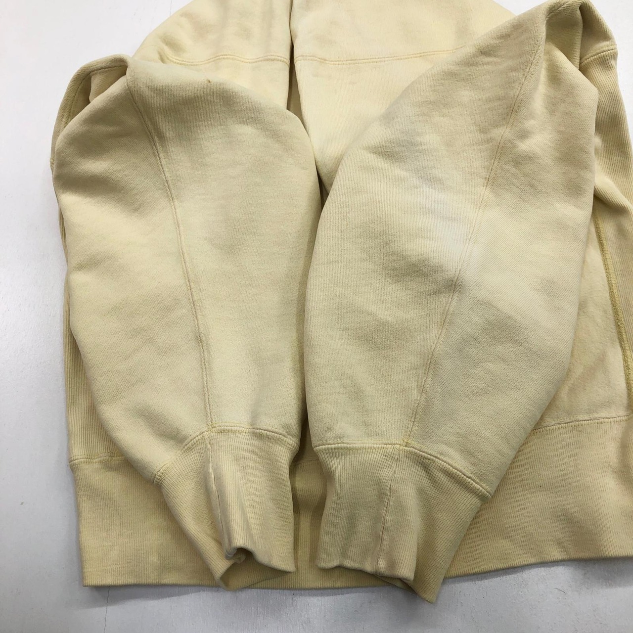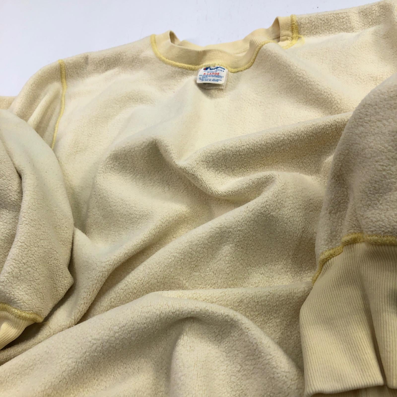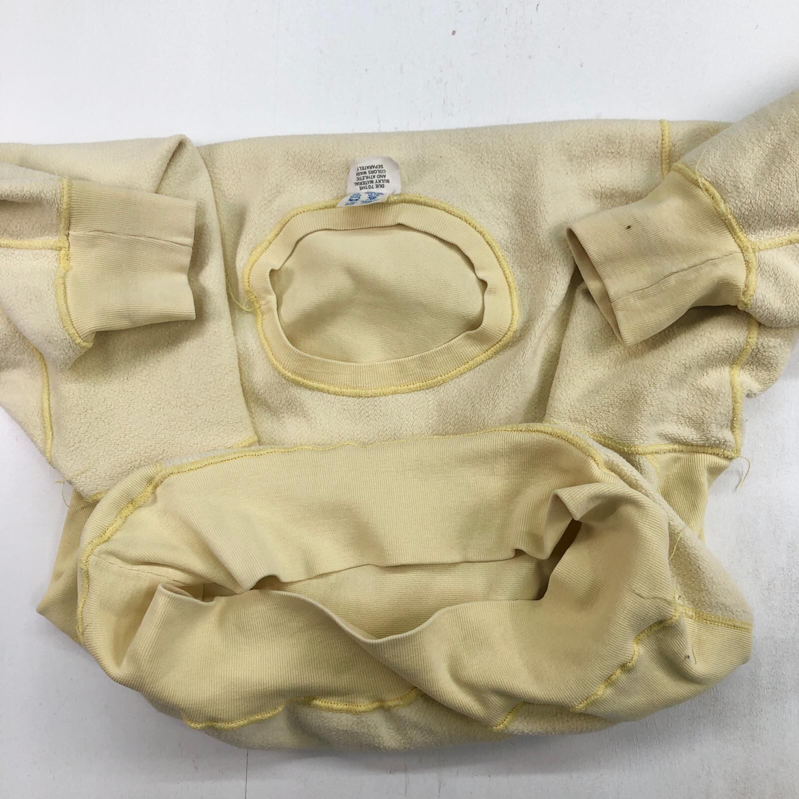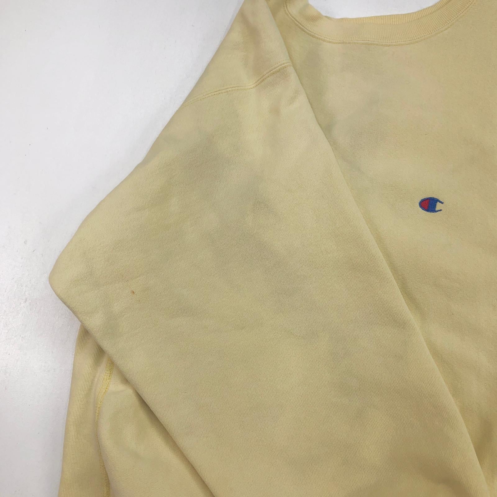 CHAMPION チャンピオン 80年代 USA製 トリコタグ 2枚タグ 胸目あり 袖目なし リバースウィーブ スウェット 無地 プレーン ライトクリームイエロー タグ 表記 X-LARGE