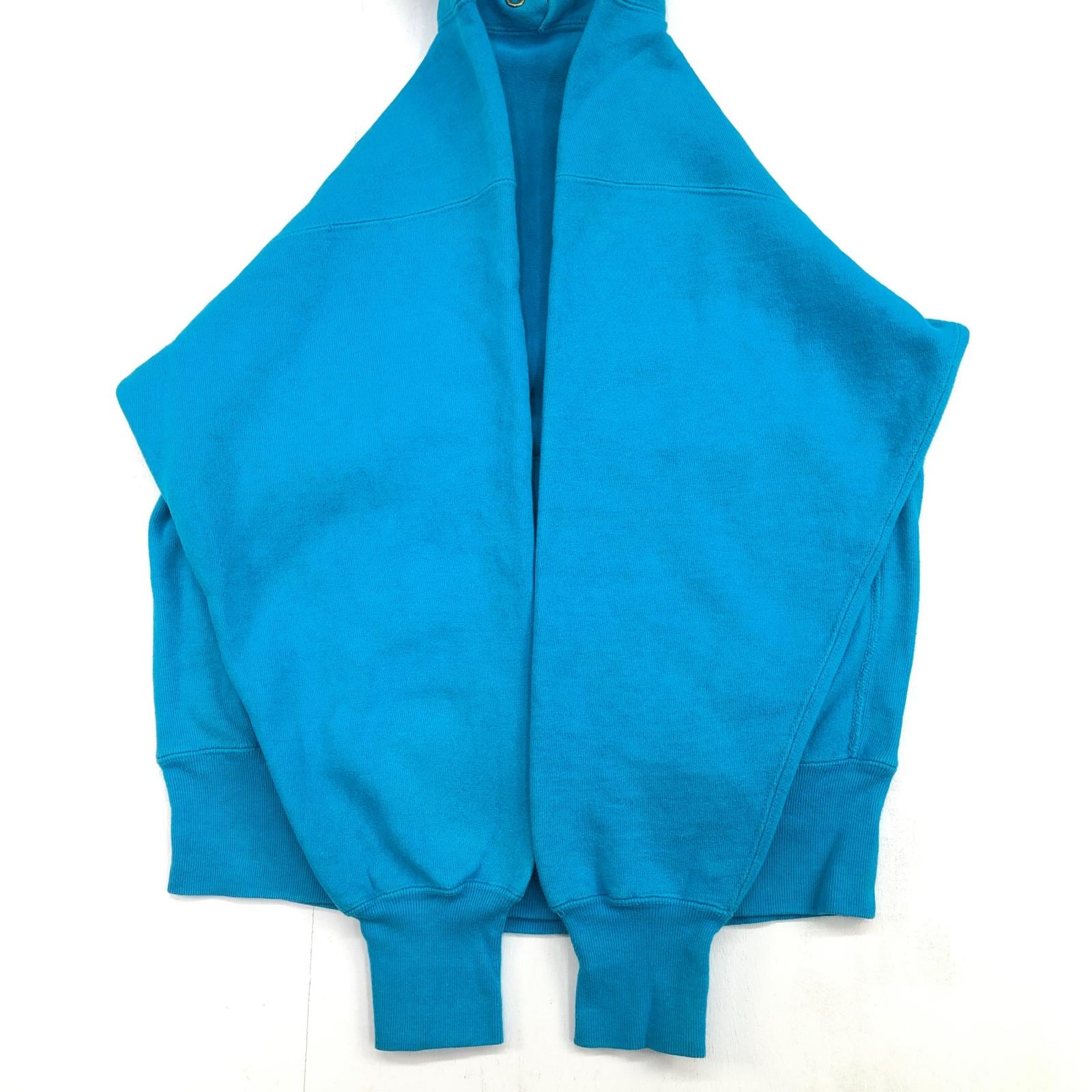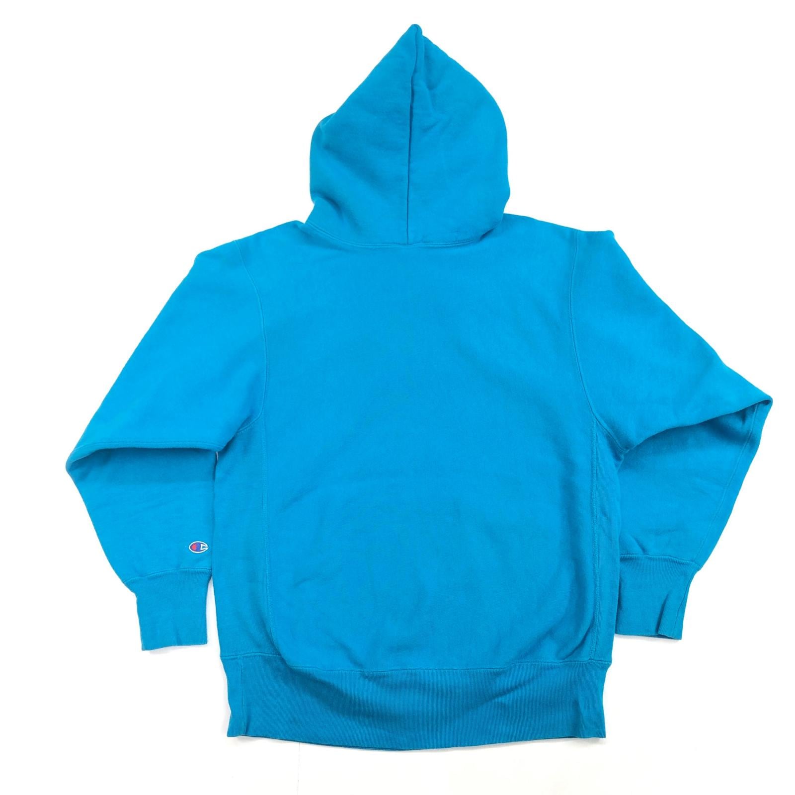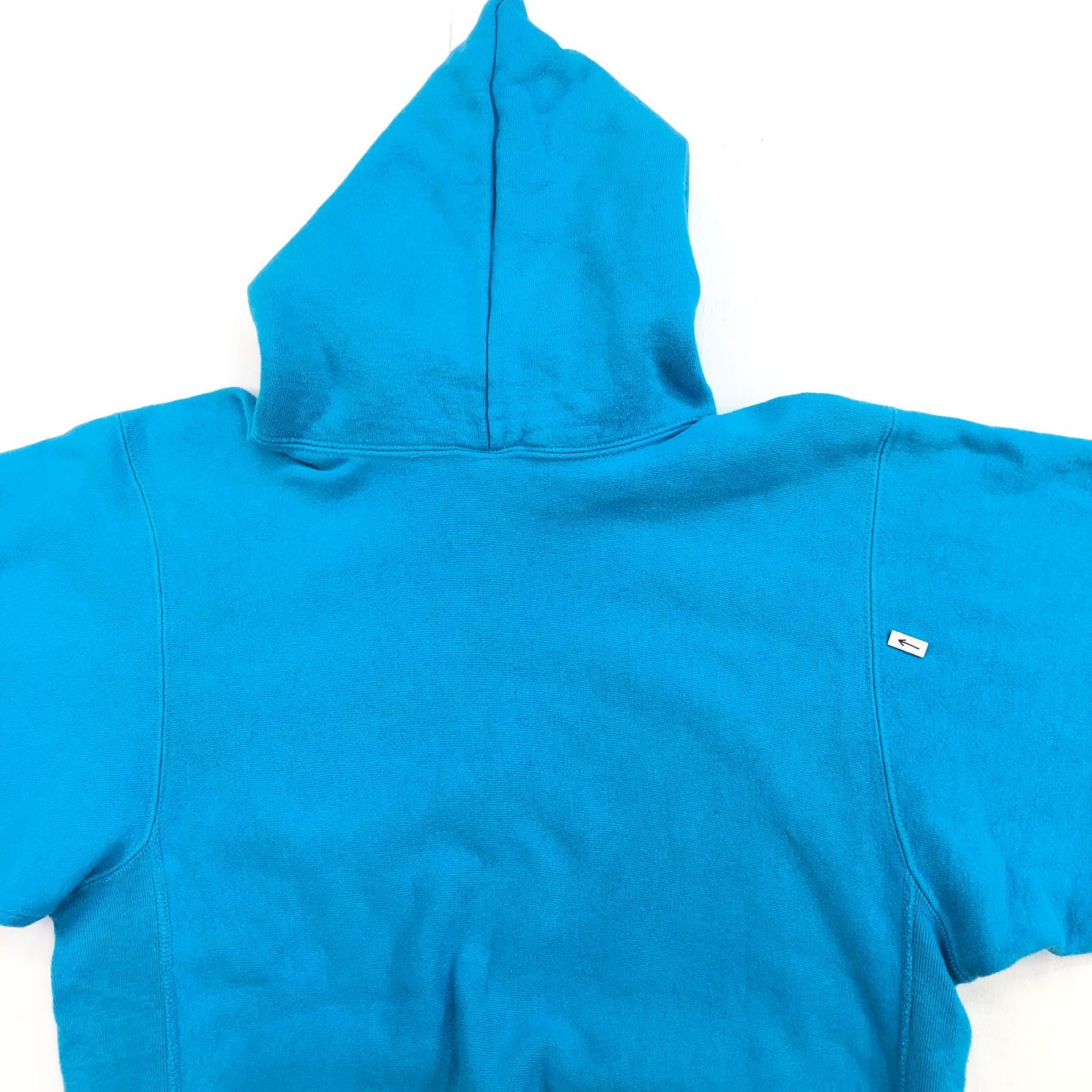 CHAMPION チャンピオン 90年代 USA製 刺繍タグ 胸袖目あり リバースウィーブ スウェットパーカー フーディー 無地 プレーン ターコイズブルー系 タグ 表記 LARGE